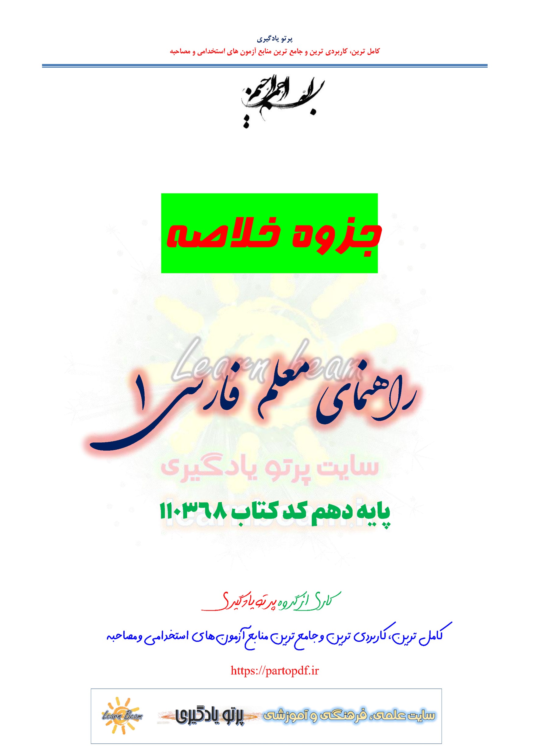 جزوه خلاصه راهنمای معلم فارسی 1 پایه دهم متوسطه