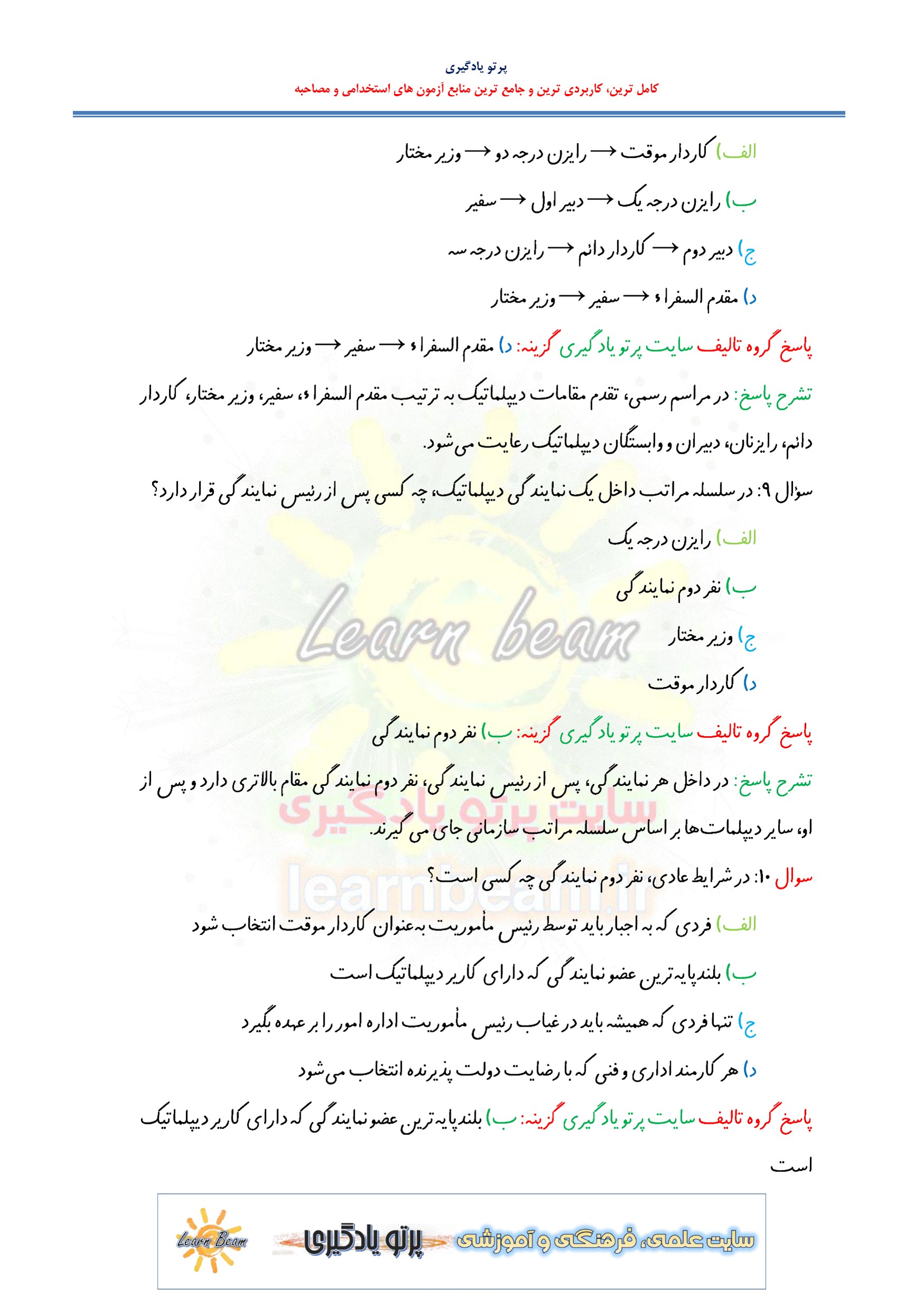 سوالات تستی آداب و آیین دیپلماتیک دانش امور و روابط بین الملل