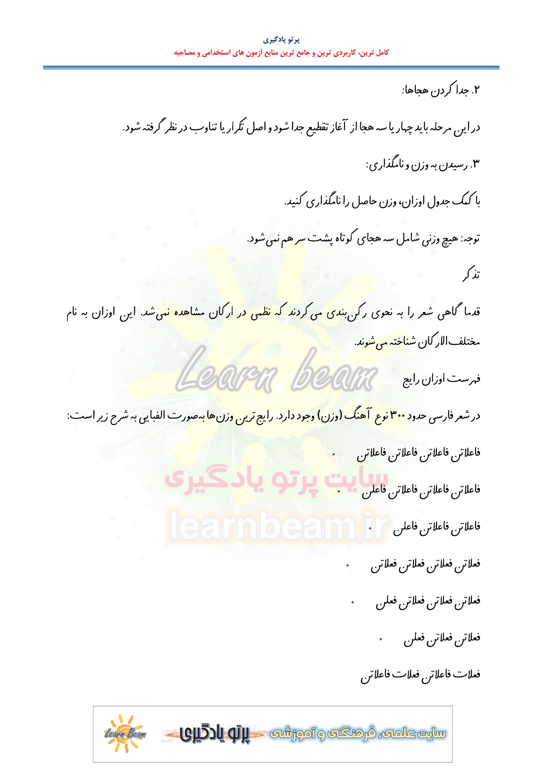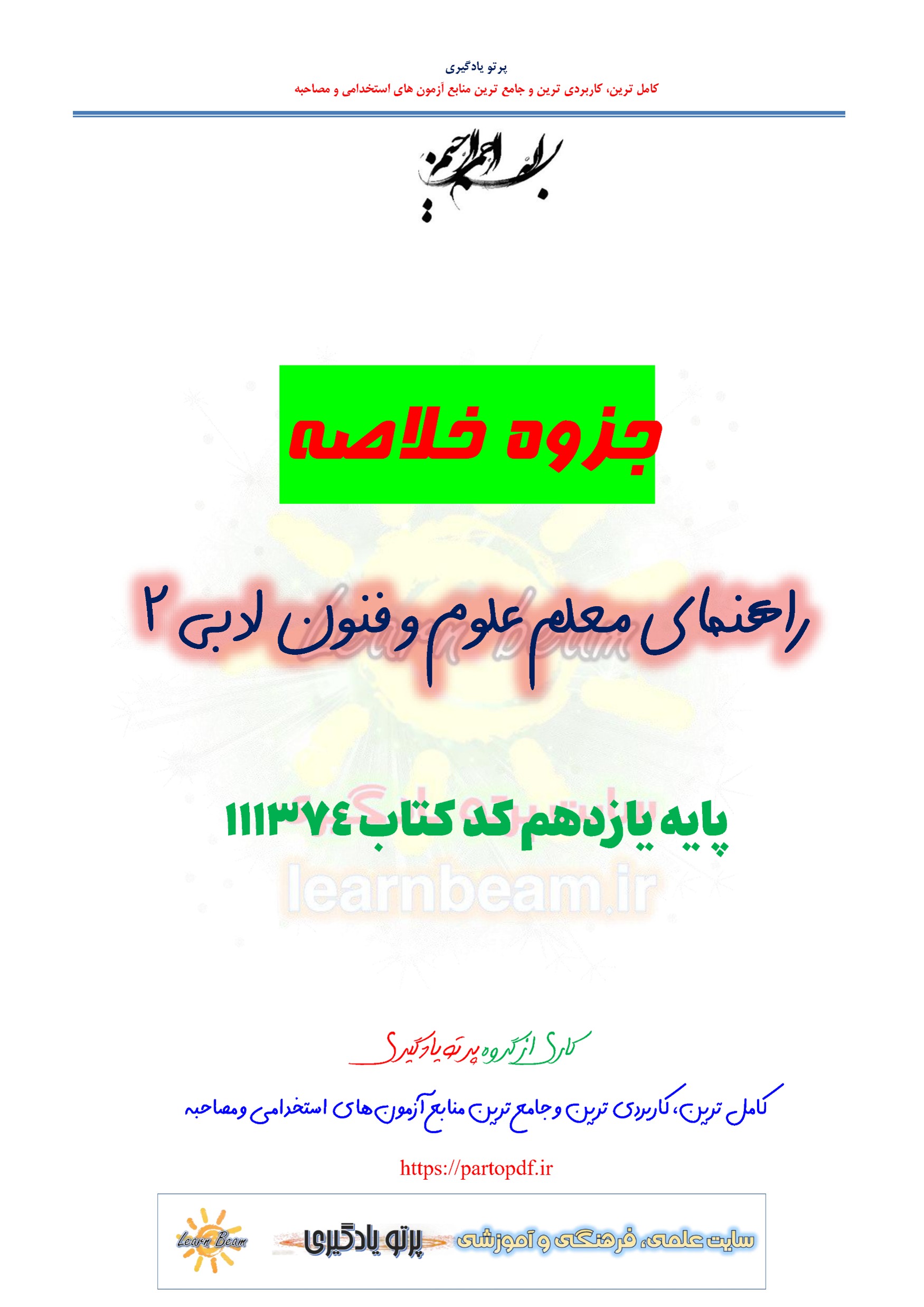 جزوه خلاصه راهنمای معلم علوم و فنون ادبی 2 پایه یازدهم متوسطه