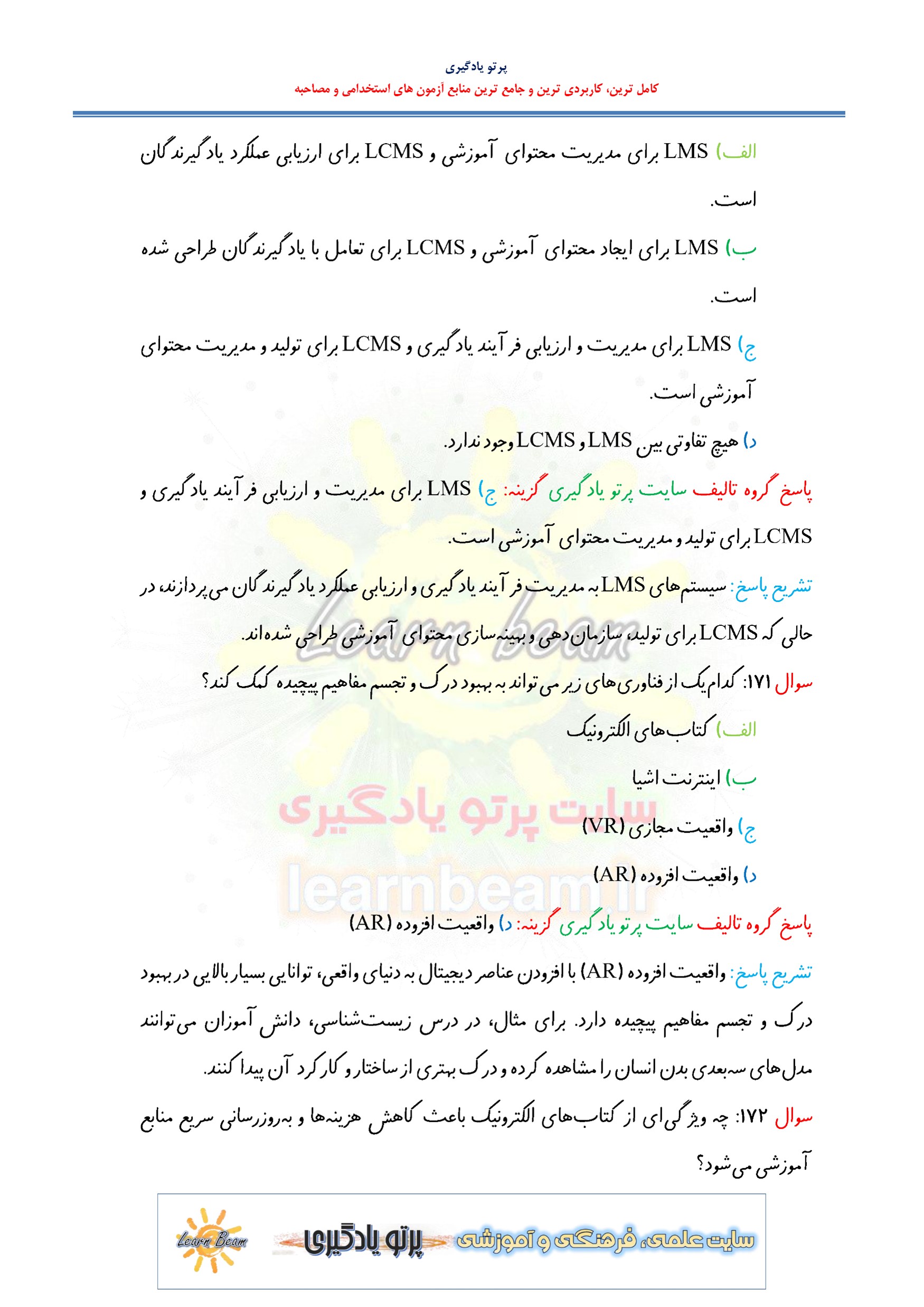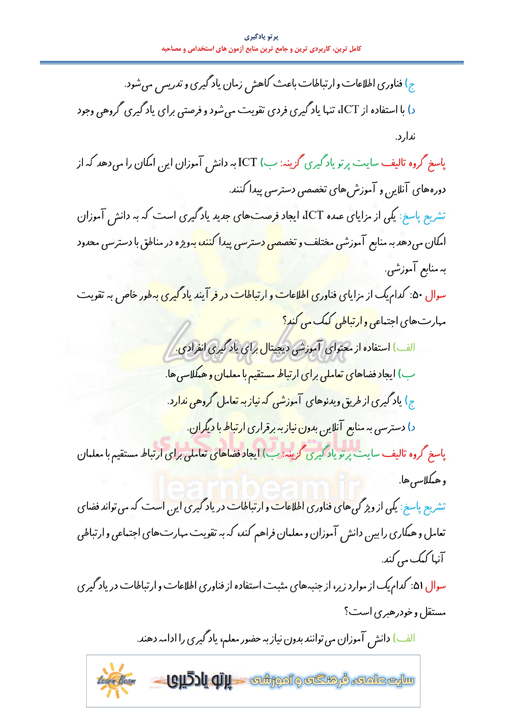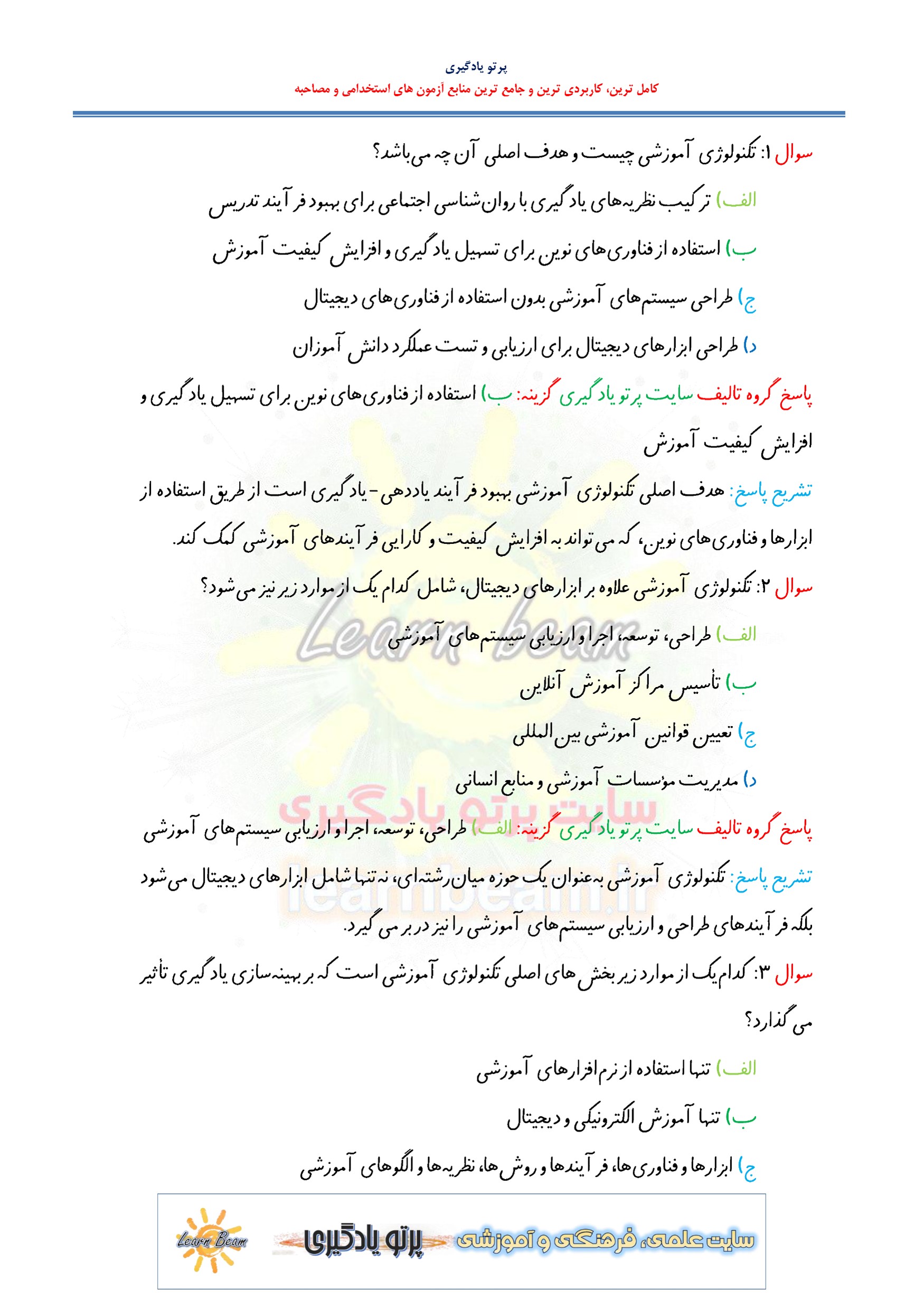 مجموعه تست کاربرد فناوری اطلاعات و ارتباطات در آموزش با پاسخ تشریحی