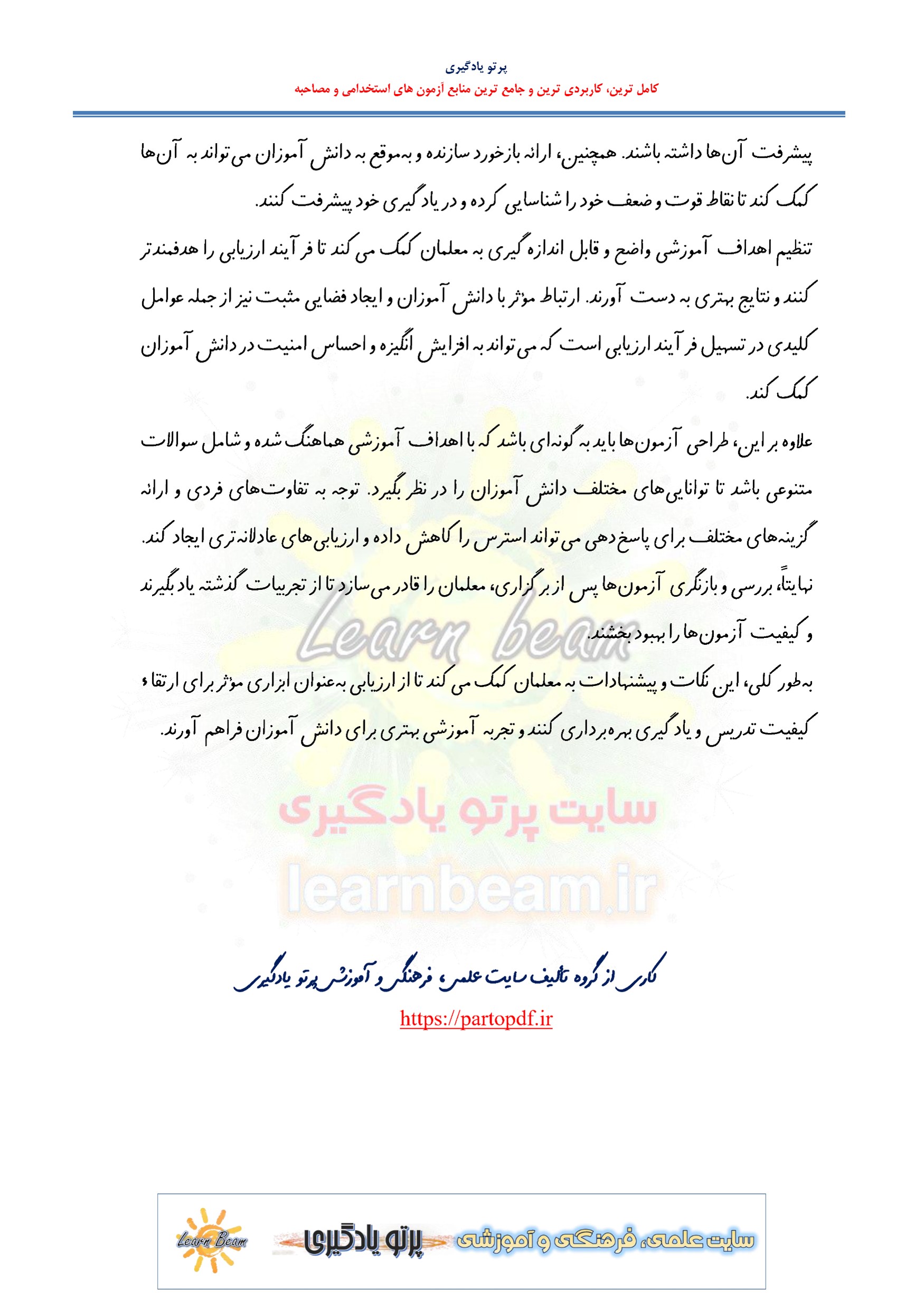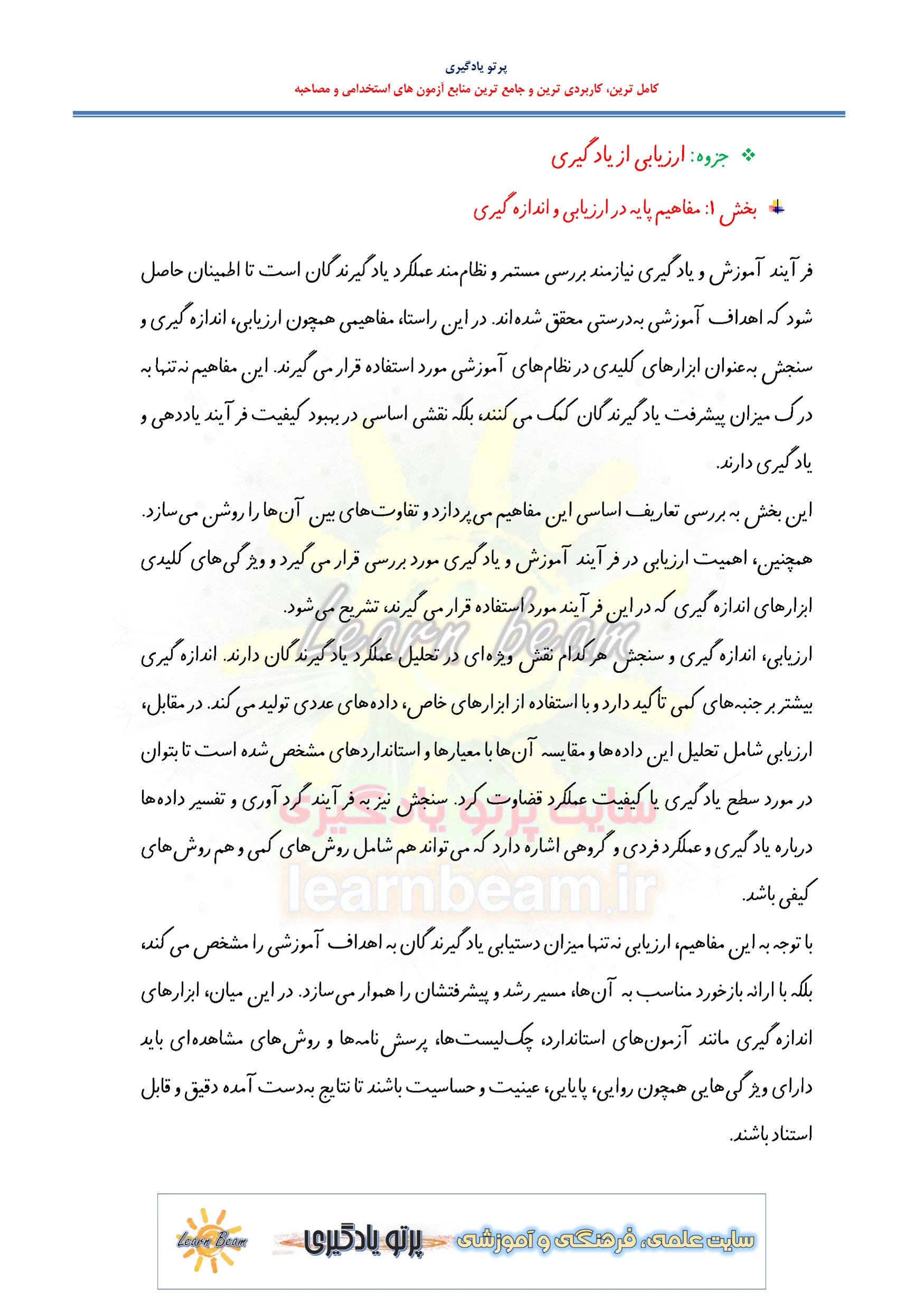 جزوه خلاصه ارزیابی از یادگیری