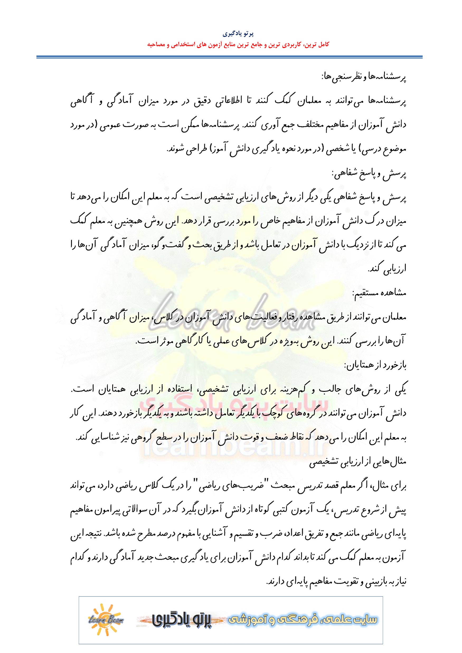 جزوه خلاصه ارزیابی از یادگیری مناسب برای آزمون های استخدامی