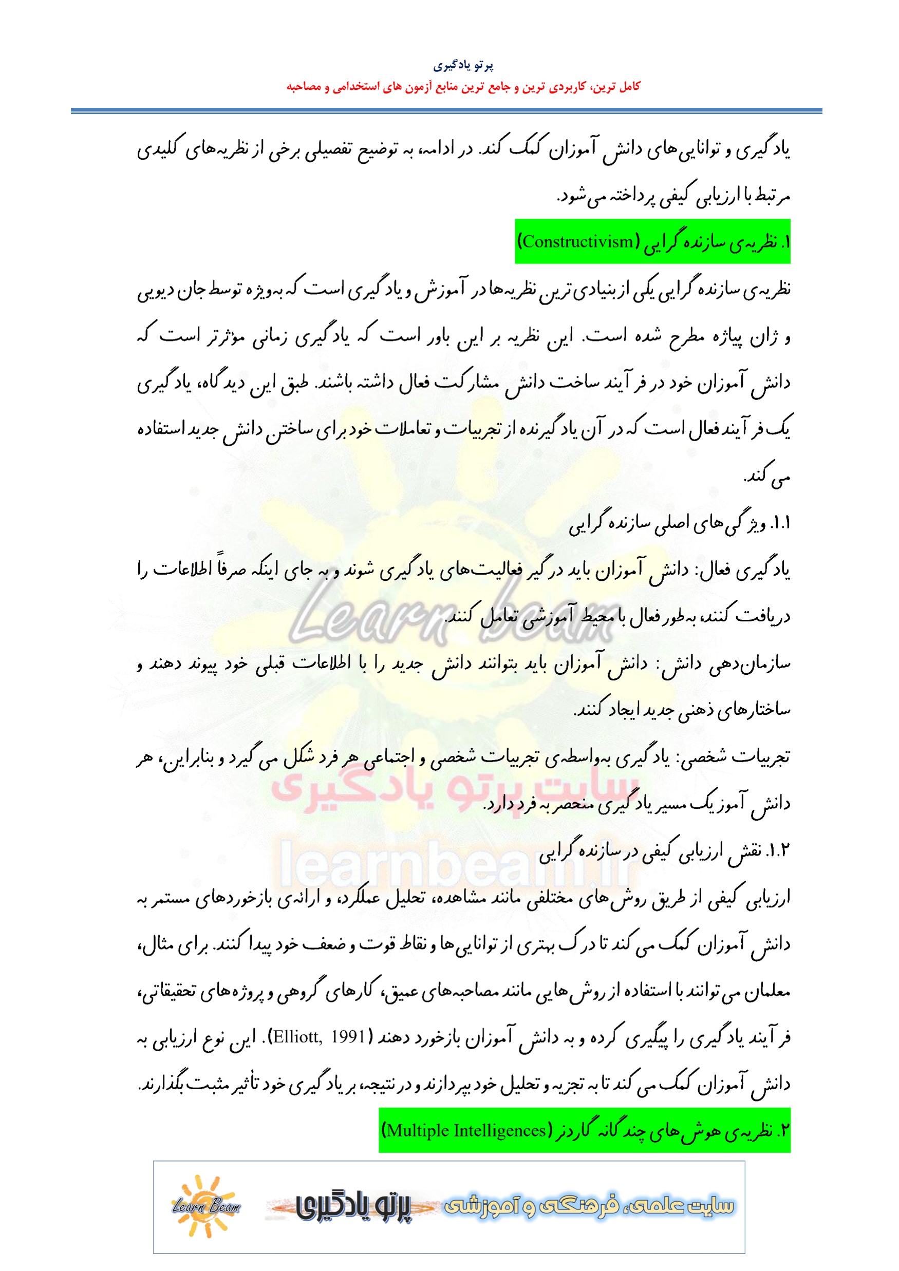 خلاصه ارزیابی از یادگیری در 92 صفحه در قالب فایل pdf. بهترین منبع برای آزمون های استخدامی می باشد. جزوه خلاصه ارزیابی از یادگیری مطالب خوانده شده داوطلبین آزمون استخدامی را نظم بخشیده و منسجم می سازد. این مجموعه مرور سریع داوطلب را سبب می شود و آگاهی های وی را نظم بخشیده و یک آمادگی و شبیه سازی را برای جلسه آزمون به همراه دارد. مطالعه این منبع برای همه داوطلبین عزیز پیشنهاد می شود.