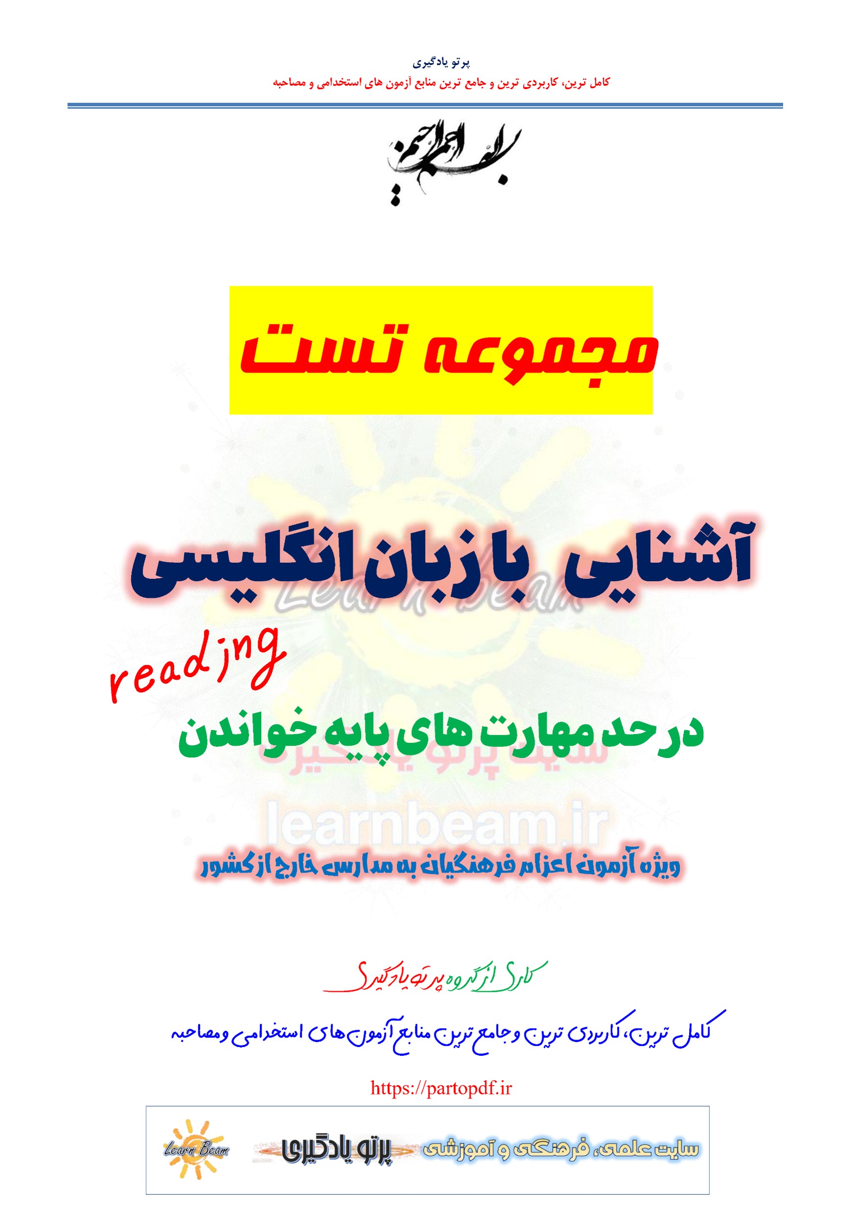 مجموعه تست آشنایی با زبان انگلیسی در حد مهارت های پایه خواندن با پاسخ تشریحی