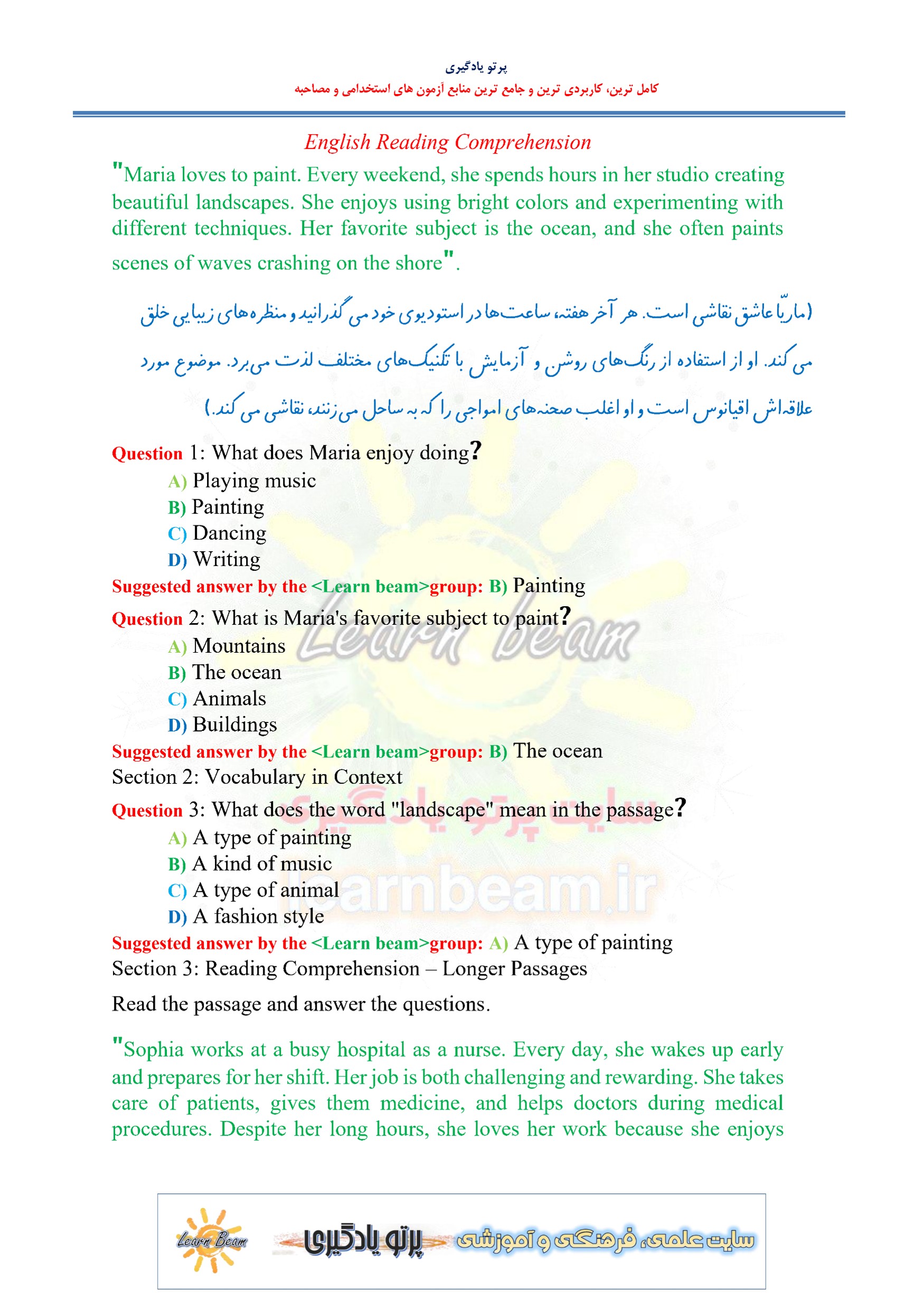سوالات تستی آشنایی با زبان انگلیسی در حد مهارت های پایه خواندن