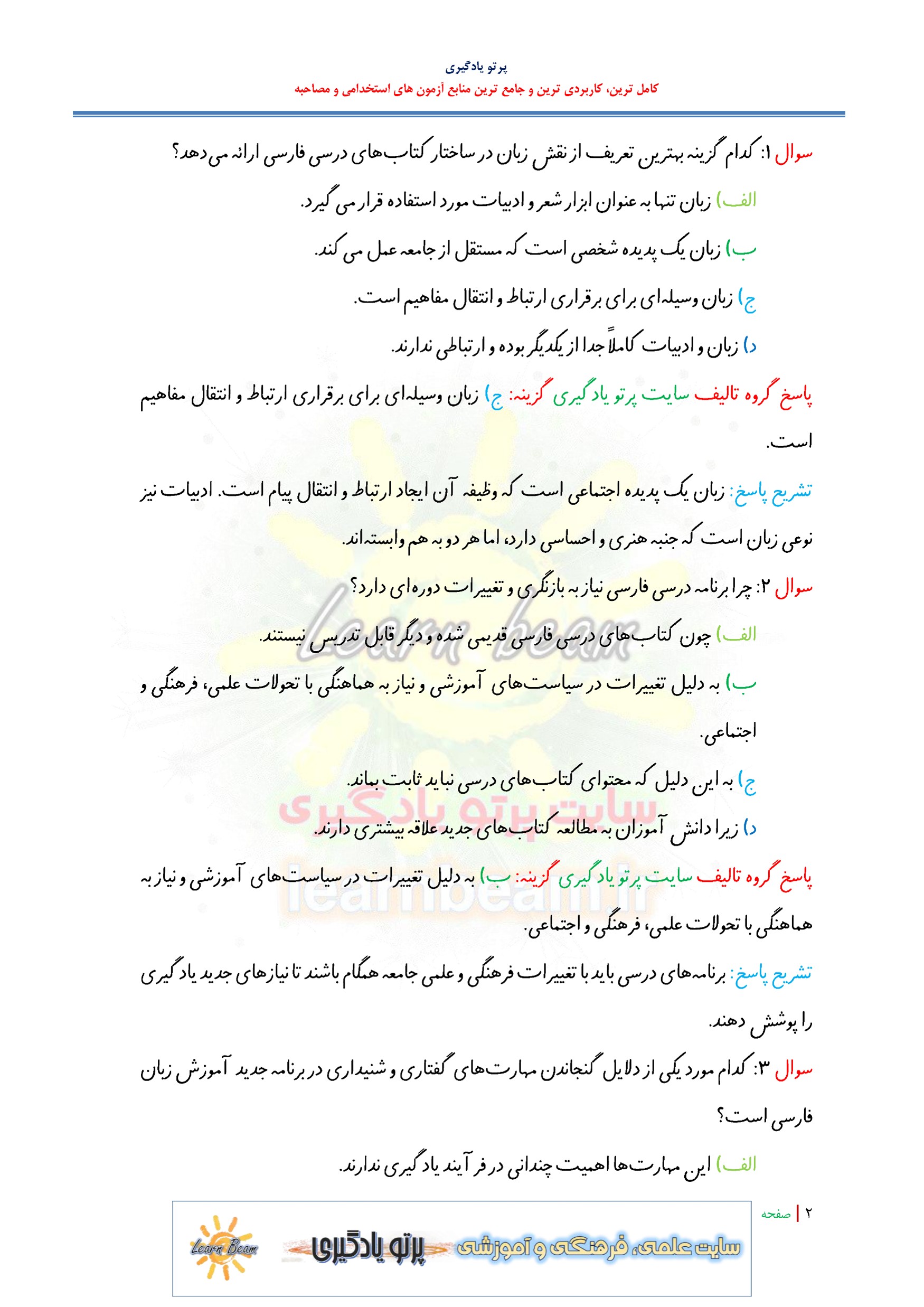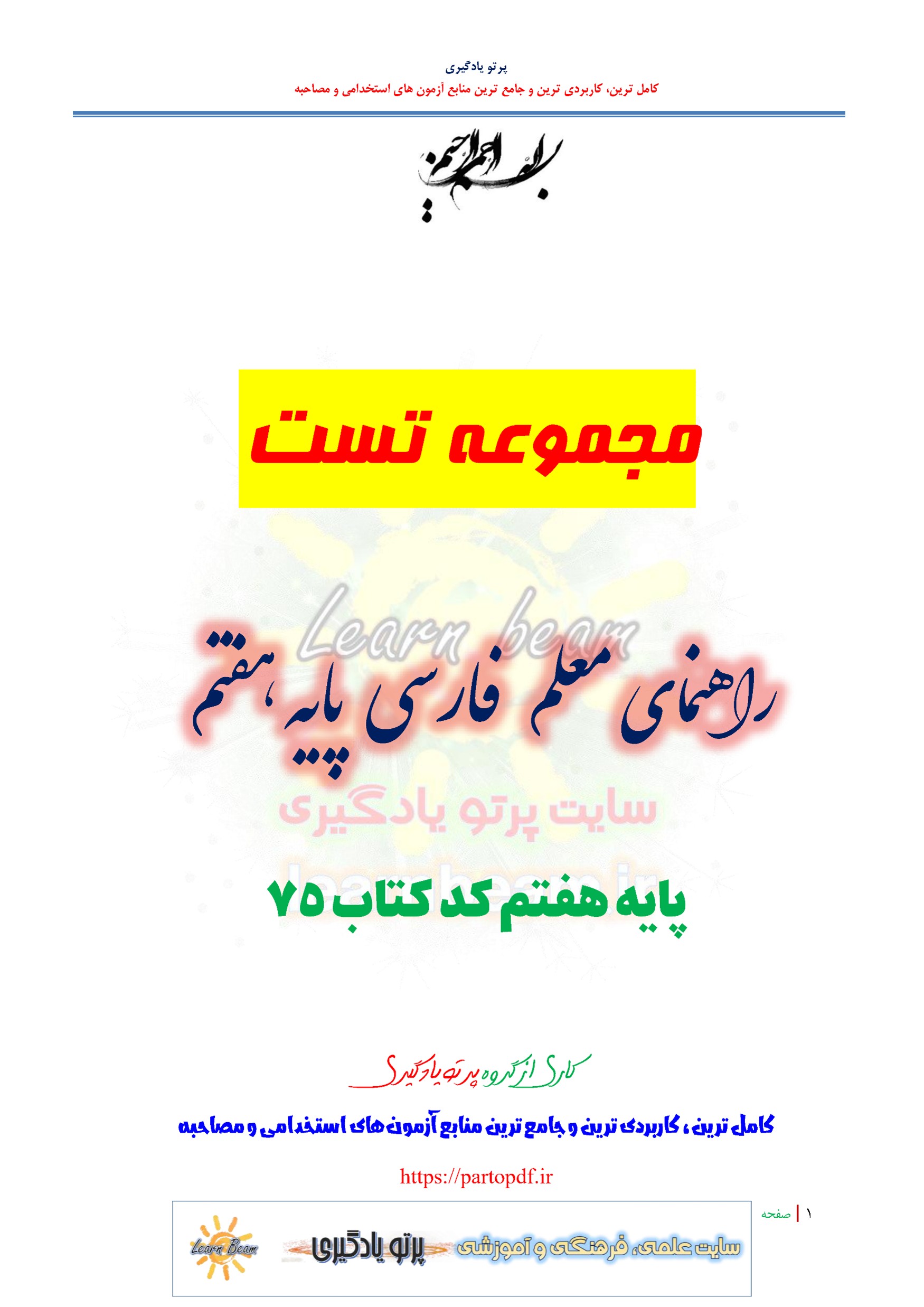 تست راهنمای معلم فارسی پایه هفتم متوسطه کد کتاب 75