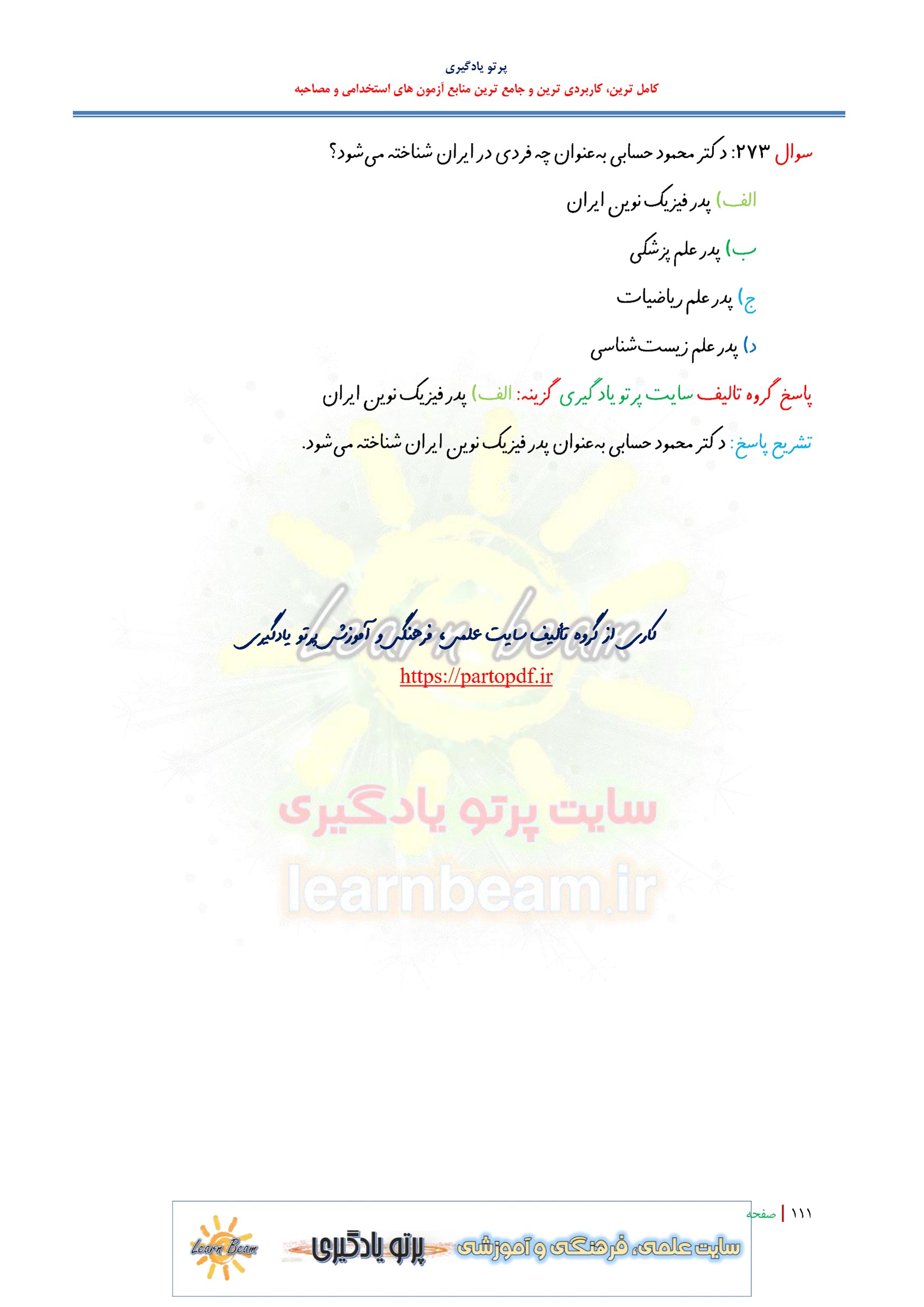 تست راهنمای معلم فارسی پایه هفتم کد کتاب 75 با پاسخ تشریحی شامل 273 تست در 111 صفحه در قالب pdf. مجموعه ای کامل برای مطالعه و موفقیت در آزمون های استخدامی آموزش و پرورش و سایر آزمون های استخدامی است. این مجموعه ارزشمند در قالب فایل پی دی اف می تواند مناسب ترین انتخاب برای انسجام ذهنی و آمادگی برای آزمون شما عزیزان باشد. مجموعه سوالات تستی راهنمای معلم فارسی پایه هفتم برای تجمیع، جمع بندی و مرور سریع متناسب با سرفصل های اعلامی آزمون استخدامی آموزش و پرورش طراحی و تدوین شده است.