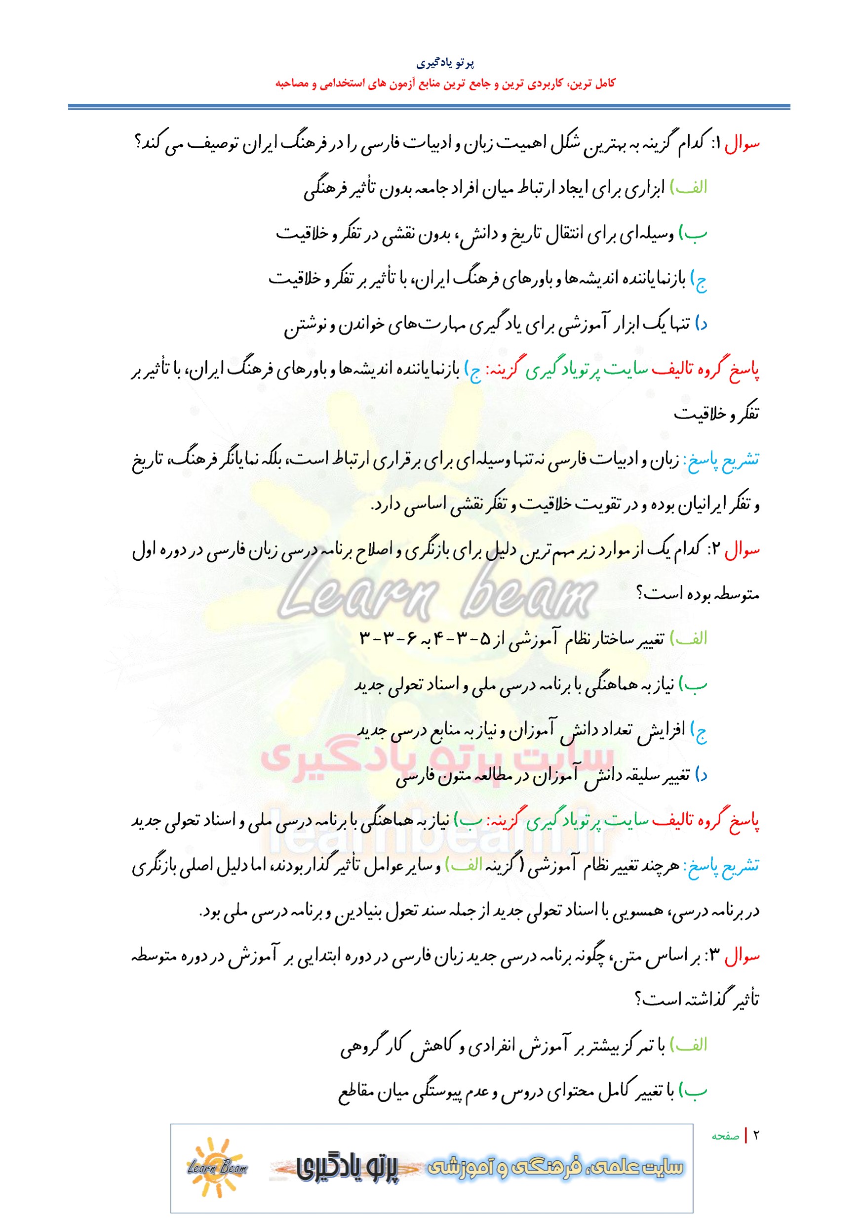 تست راهنمای معلم فارسی پایه هشتم متوسطه کد کتاب 82
