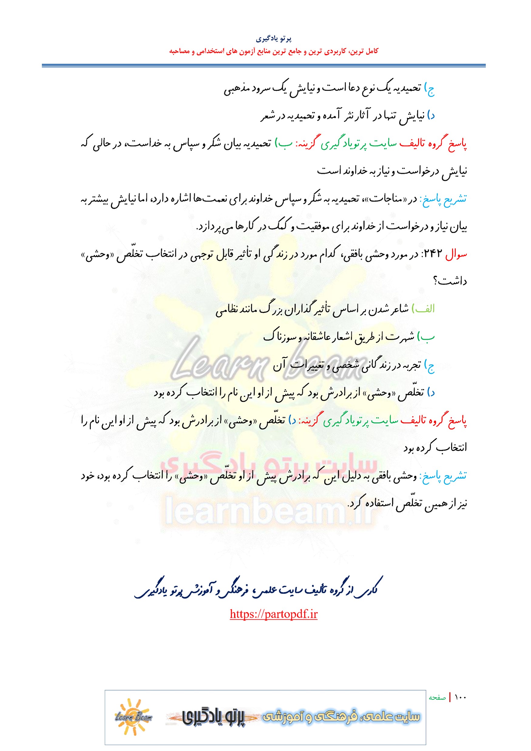 تست راهنمای معلم فارسی پایه هشتم دوره اول متوسطه کد کتاب 82 جزوه سوالات تستی راهنمای معلم فارسی پایه هشتم با پاسخ تشریحی شامل 242 تست در 100 صفحه در قالب فایل pdf. جزوه مجموعه سوالات تستی کتاب راهنمای معلم فارسی پایه هشتم متوسطه مجموعه ای کامل برای مطالعه و موفقیت در آزمون های استخدامی آموزش و پرورش و سایر آزمون های استخدامی است. جزوه تست طلایی روش تدریس فارسی پایه هشتم در قالب فایل پی دی اف می تواند مناسب ترین انتخاب برای داوطلبین عزیز در جهت تحکیم اطلاعات ذهنی و جمع بندی مطالب باشد. مجموعه سوالات تستی راهنمای معلم فارسی پایه هشتم انسجام ذهنی و آمادگی ذهنی فراگیران برای آزمون استخدامی آموزش و پرورش را در پی دارد. این منبع متناسب با سرفصل های اعلامی دفترچه آزمون استخدامی تدوین و تالیف گردیده است.
