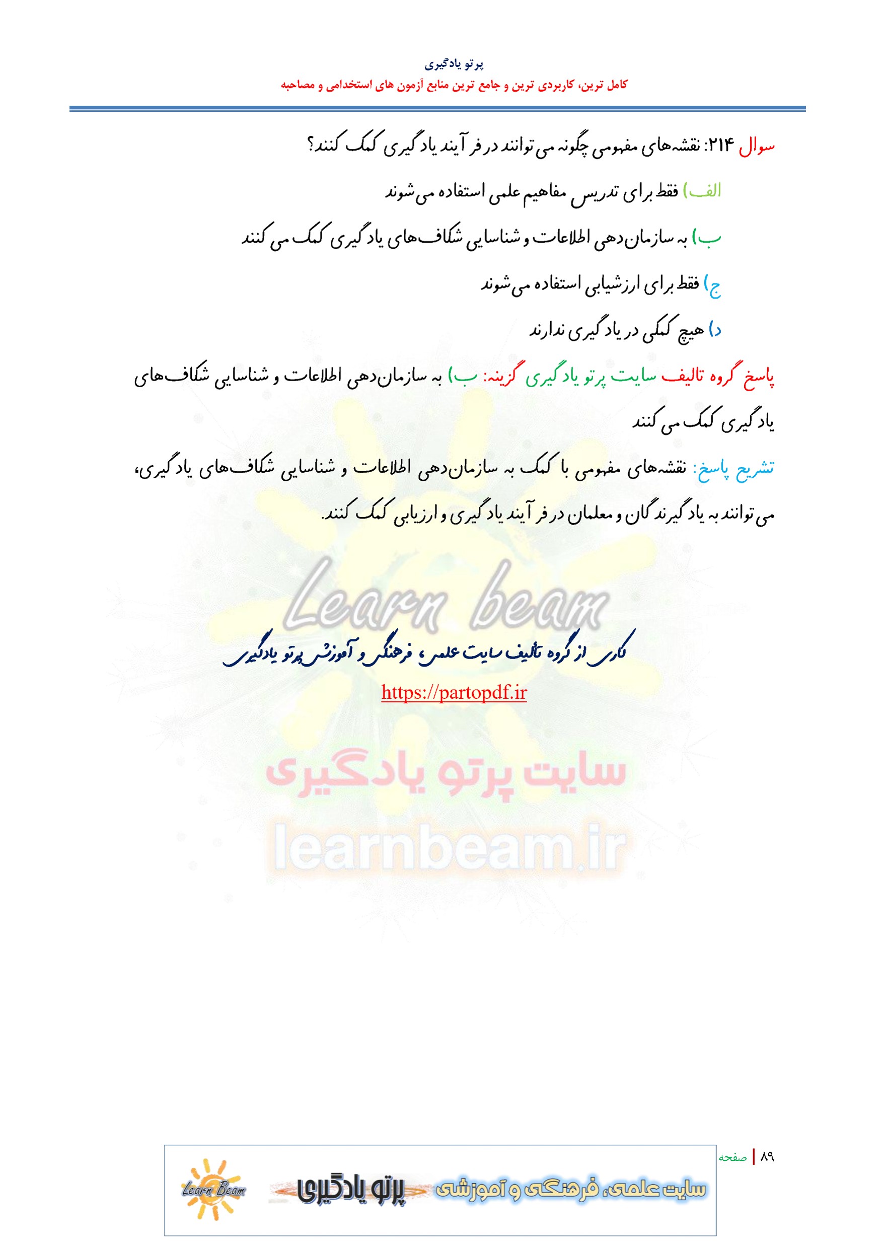 جزوه سوالات تستی کتاب راهنمای عمل معلم کلاس های چندپایه شامل 214 سوال تستی در 89 صفحه در قالب pdf. مجموعه ای کامل برای مطالعه و موفقیت در آزمون های استخدامی آموزش و پرورش و سایر آزمون های استخدامی است. این مجموعه ارزشمند در قالب فایل پی دی اف می تواند مناسب ترین انتخاب برای انسجام ذهنی و آمادگی برای آزمون شما عزیزان باشد. مجموعه سوالات تستی کتاب راهنمای عمل معلم کلاس های چندپایه برای تجمیع، جمع بندی و مرور سریع متناسب با سرفصل های اعلامی آزمون استخدامی آموزش و پرورش طراحی و تدوین شده است.