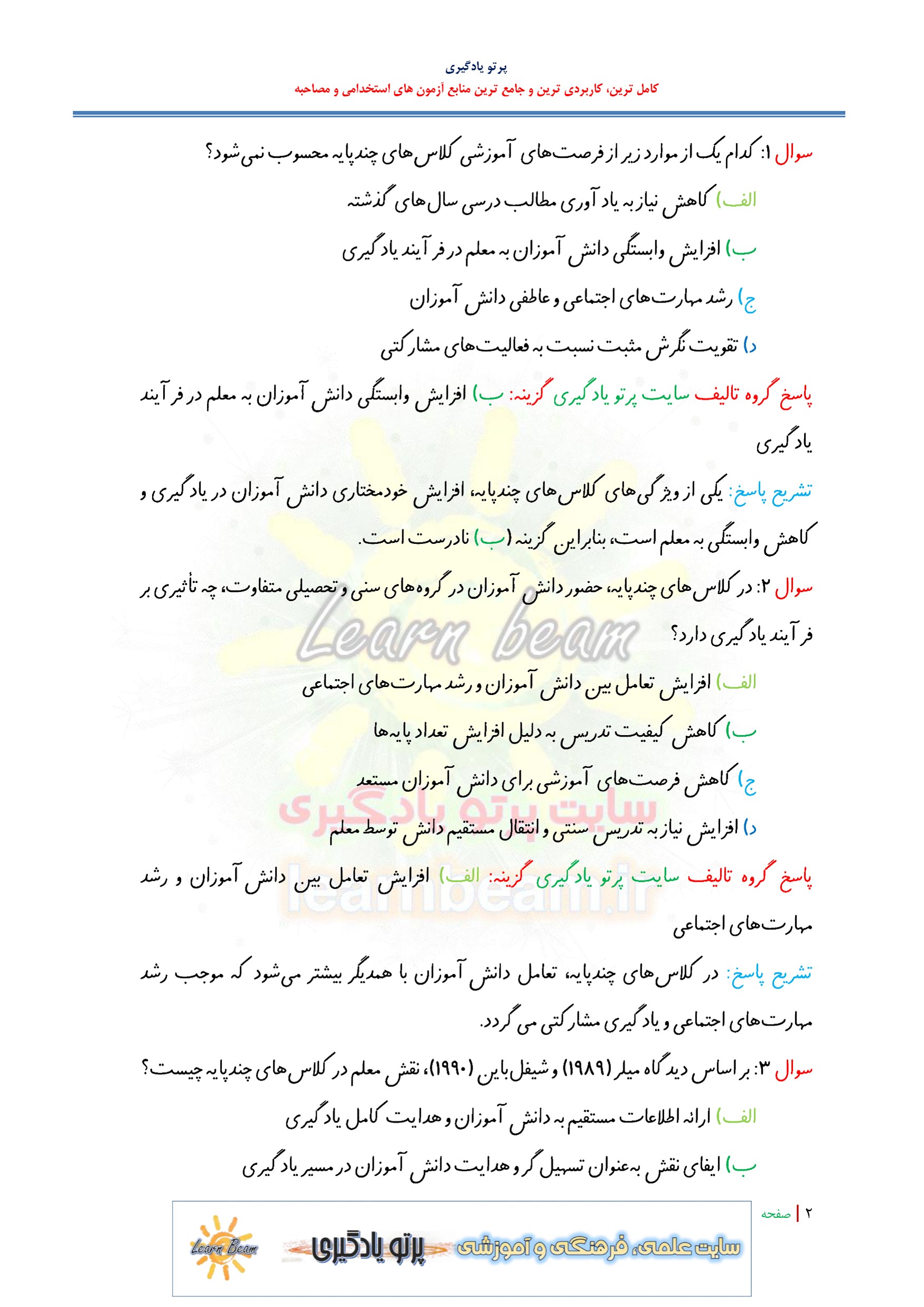 تست کتاب راهنمای عمل معلم کلاس های چندپایه