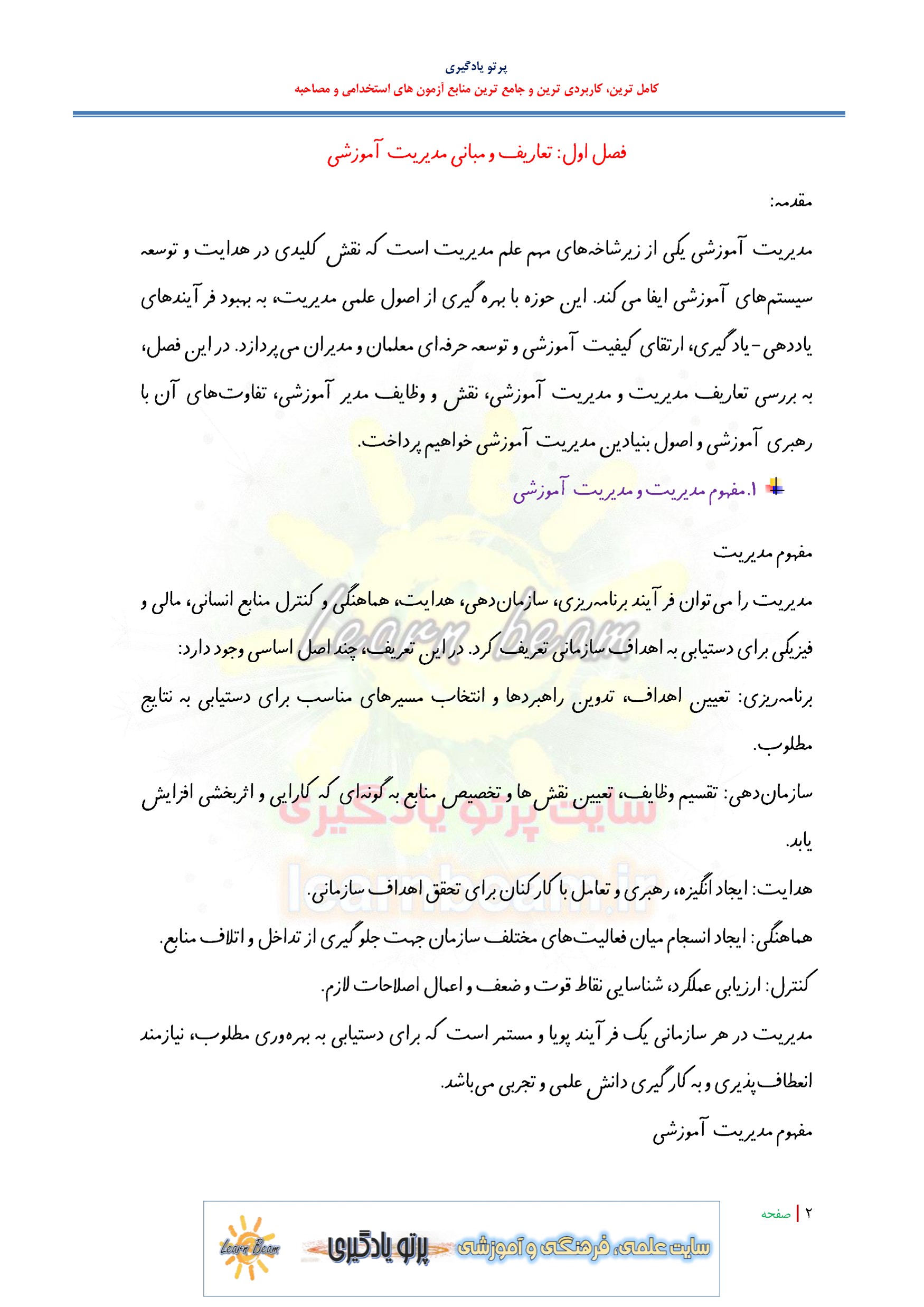 جزوه خلاصه کتاب مدیریت آموزشگاهی