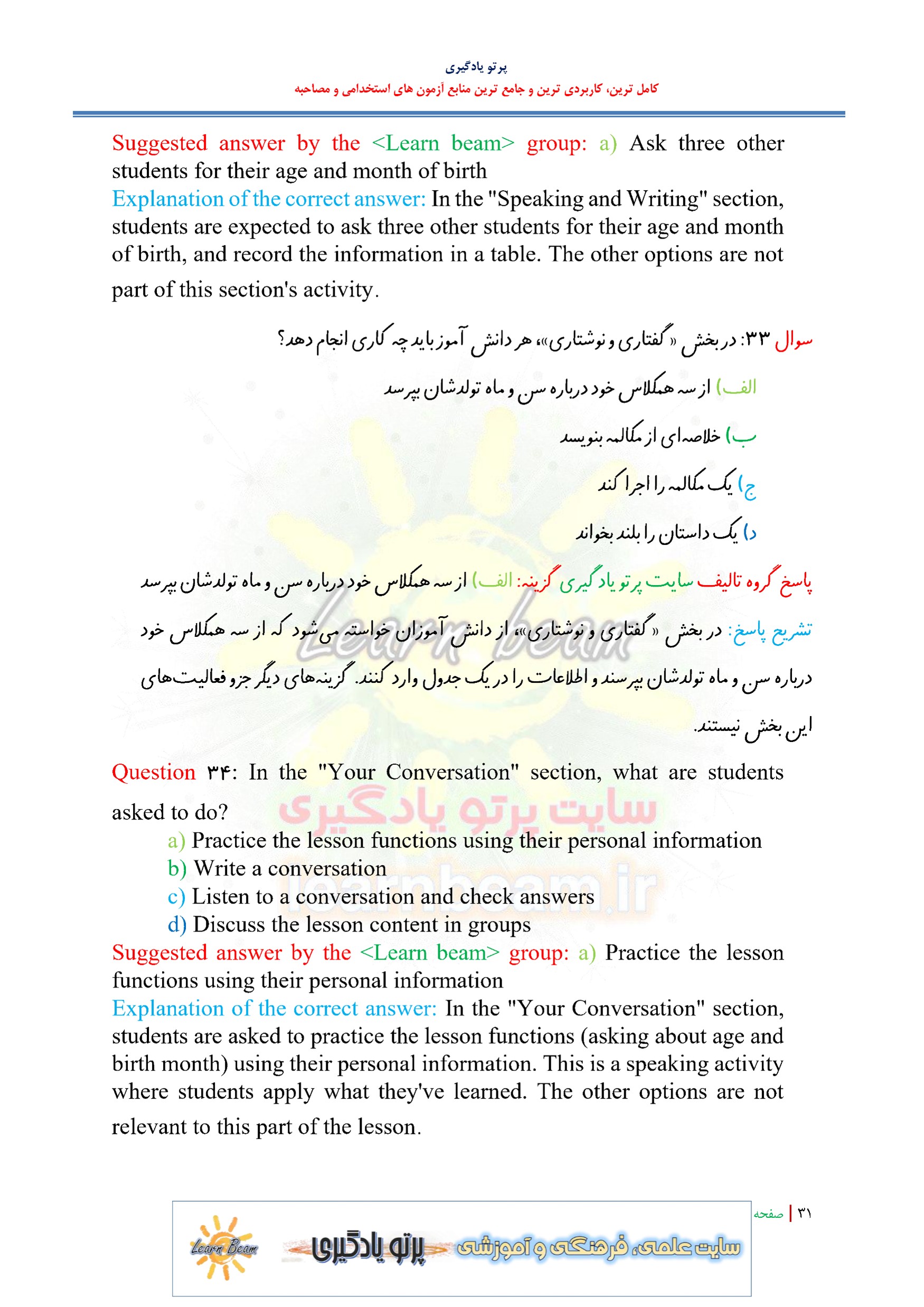تست کتاب راهنمای تدریس انگلیسی پایه هشتم متوسطه