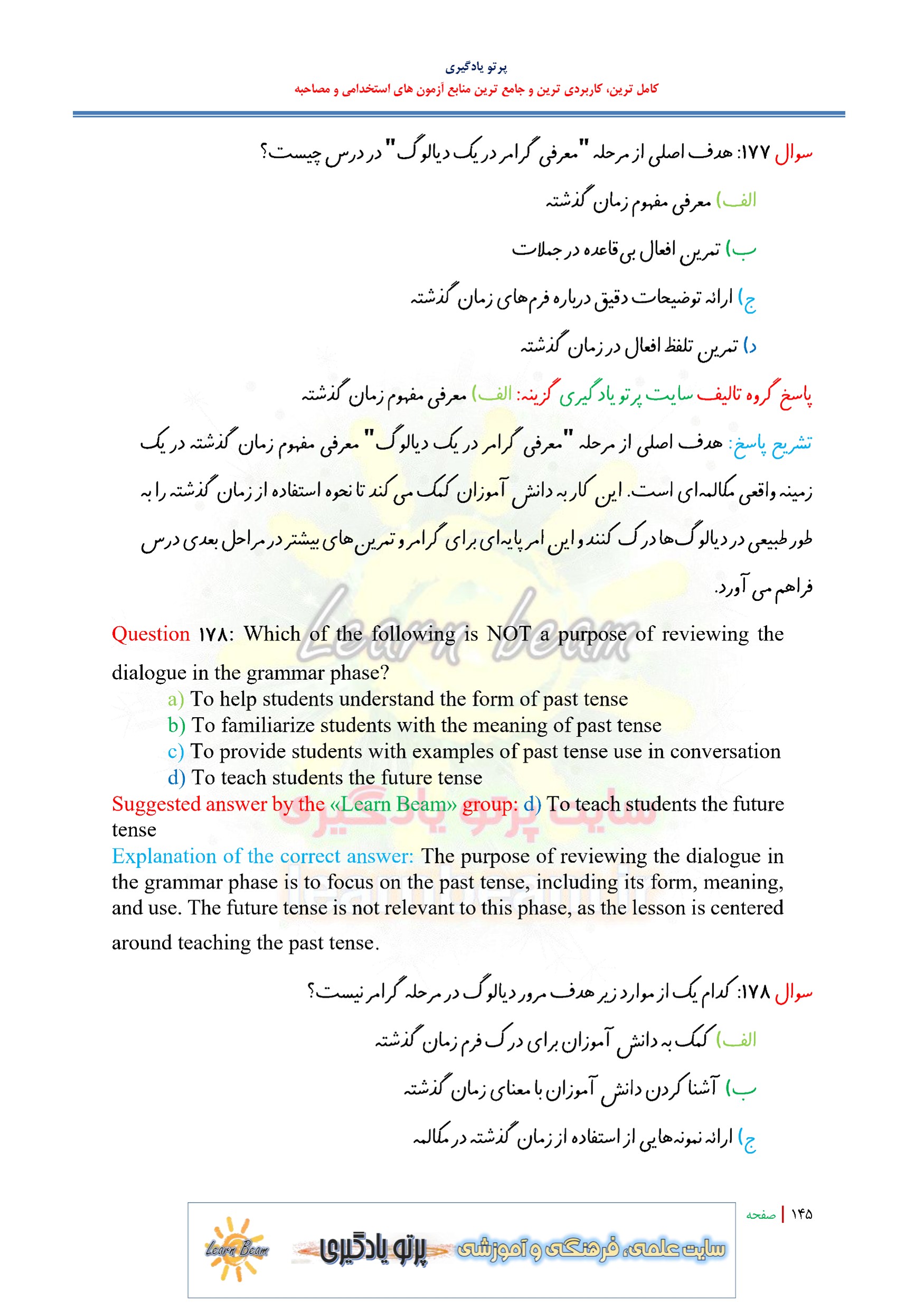 تست راهنمای معلم راهنمای تدریس انگلیسی پایه نهم دوره اول متوسطه کد کتاب 91 جزوه سوالات تستی راهنمای تدریس انگلیسی پایه نهم با پاسخ تشریحی و ترجمه فارسی شامل 188 تست در 155 صفحه در قالب فایل pdf. جزوه مجموعه سوالات تستی کتاب راهنمای معلم انگلیسی پایه نهم دوره اول متوسطه مجموعه ای کامل برای مطالعه و موفقیت در آزمون های استخدامی آموزش و پرورش و سایر آزمون های استخدامی است. جزوه تست طلایی روش تدریس انگلیسی پایه نهم در قالب فایل پی دی اف می تواند مناسب ترین انتخاب برای داوطلبین عزیز در جهت تحکیم اطلاعات ذهنی و جمع بندی مطالب باشد. مجموعه سوالات تستی راهنمای تدریس انگلیسی پایه نهم انسجام ذهنی و آمادگی ذهنی فراگیران برای آزمون استخدامی آموزش و پرورش را در پی دارد. این منبع متناسب با سرفصل های اعلامی دفترچه آزمون استخدامی تدوین و تالیف گردیده است.