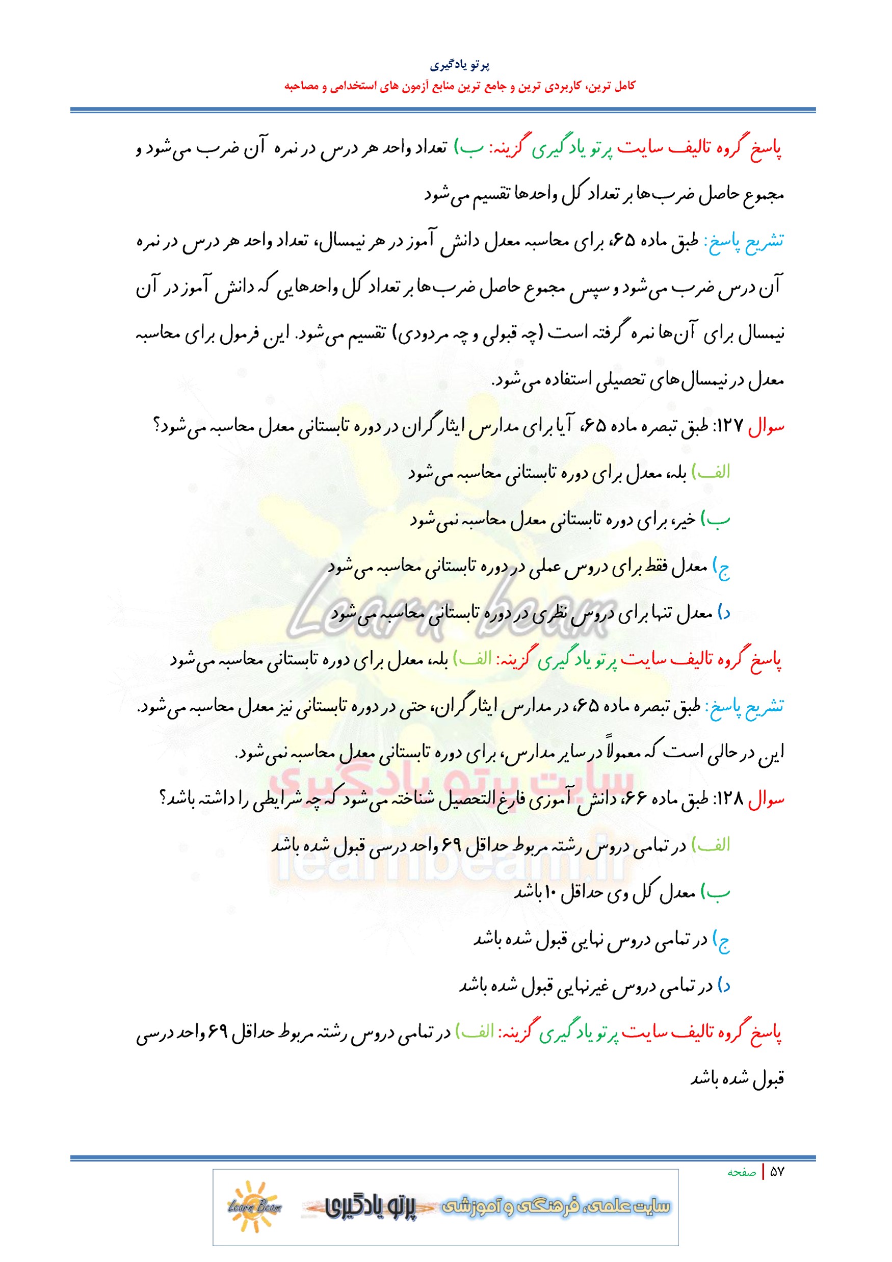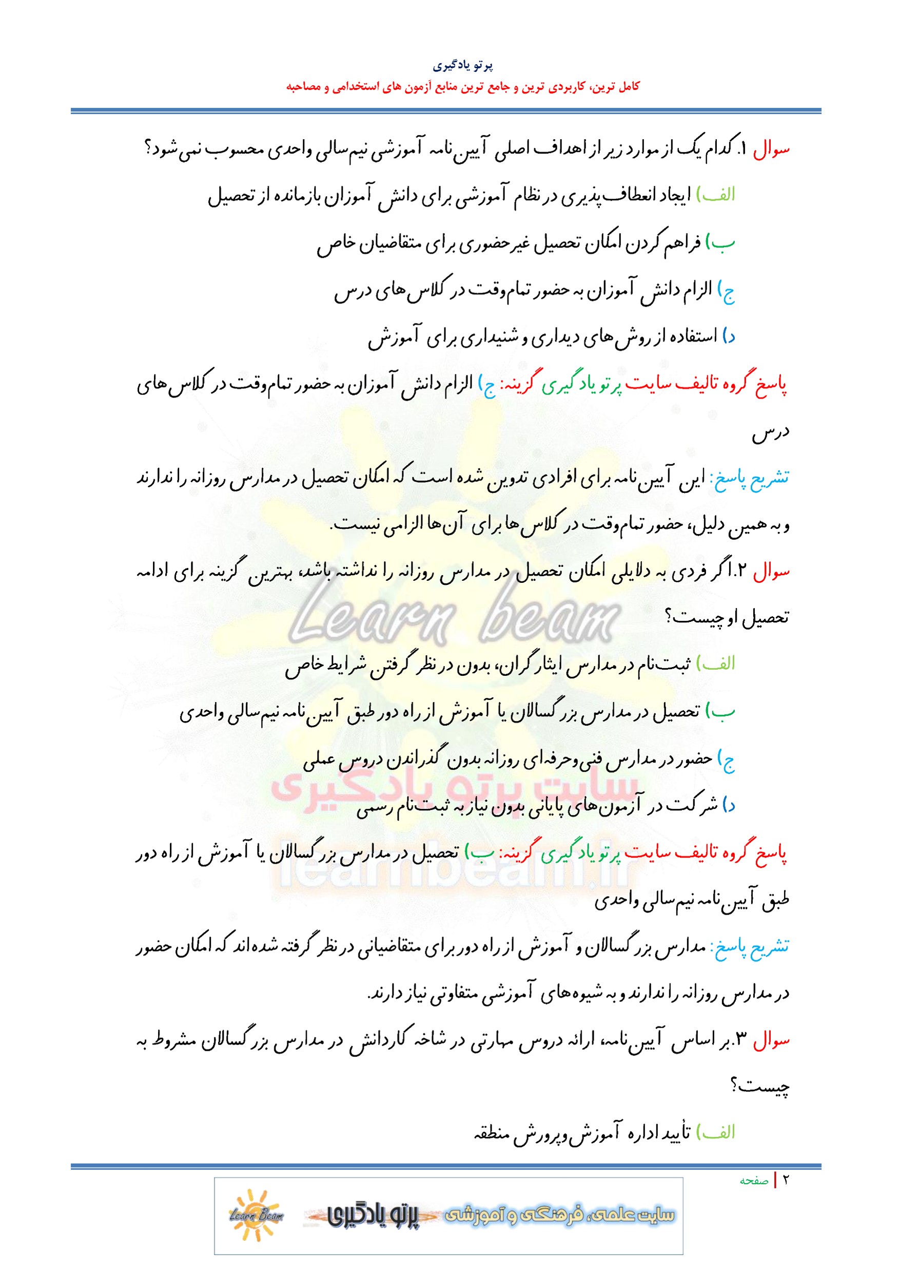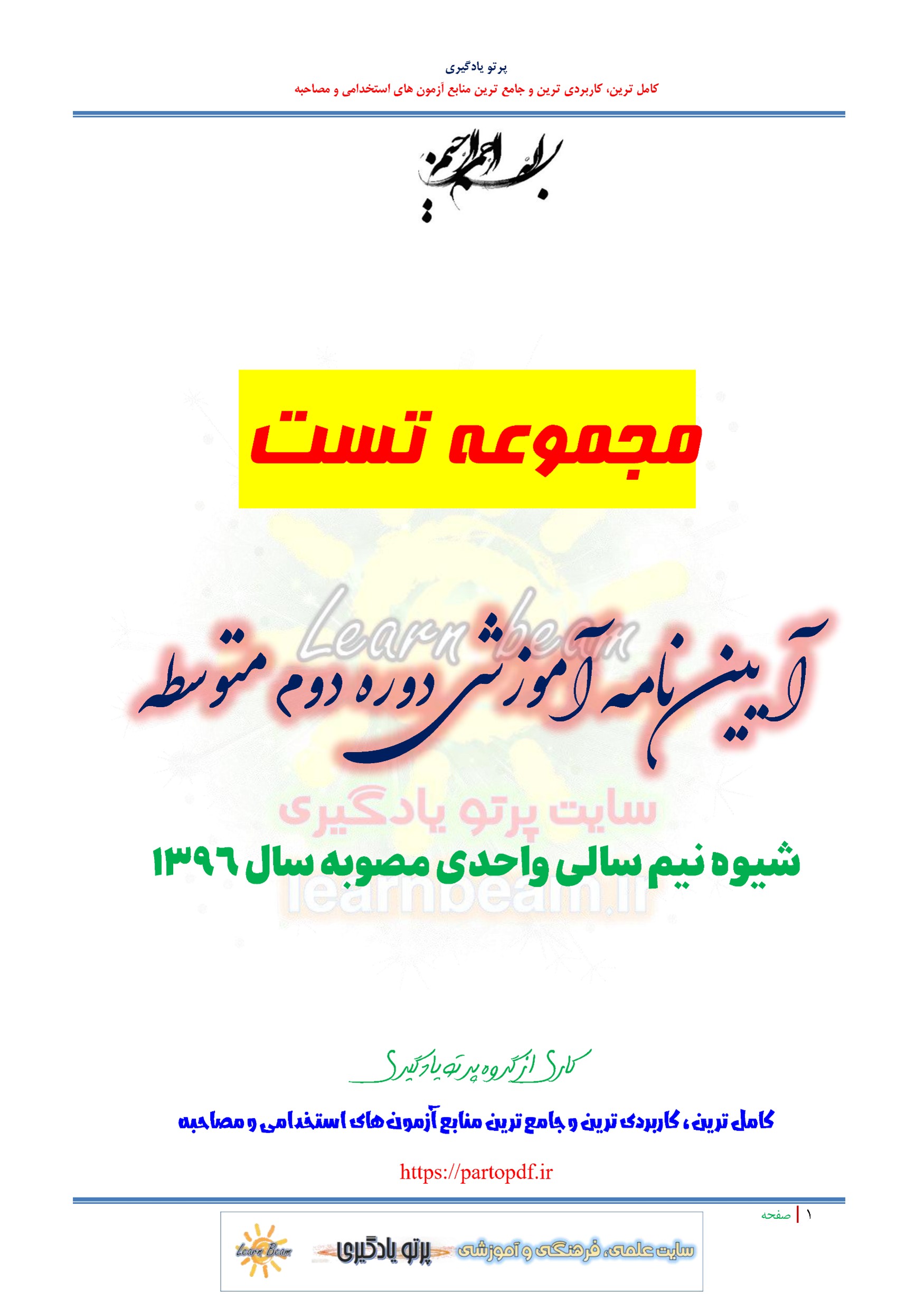 مجموعه تست آیین نامه آموزشی دوره دوم متوسطه شیوه نیم سالی واحدی با پاسخ تشریحی