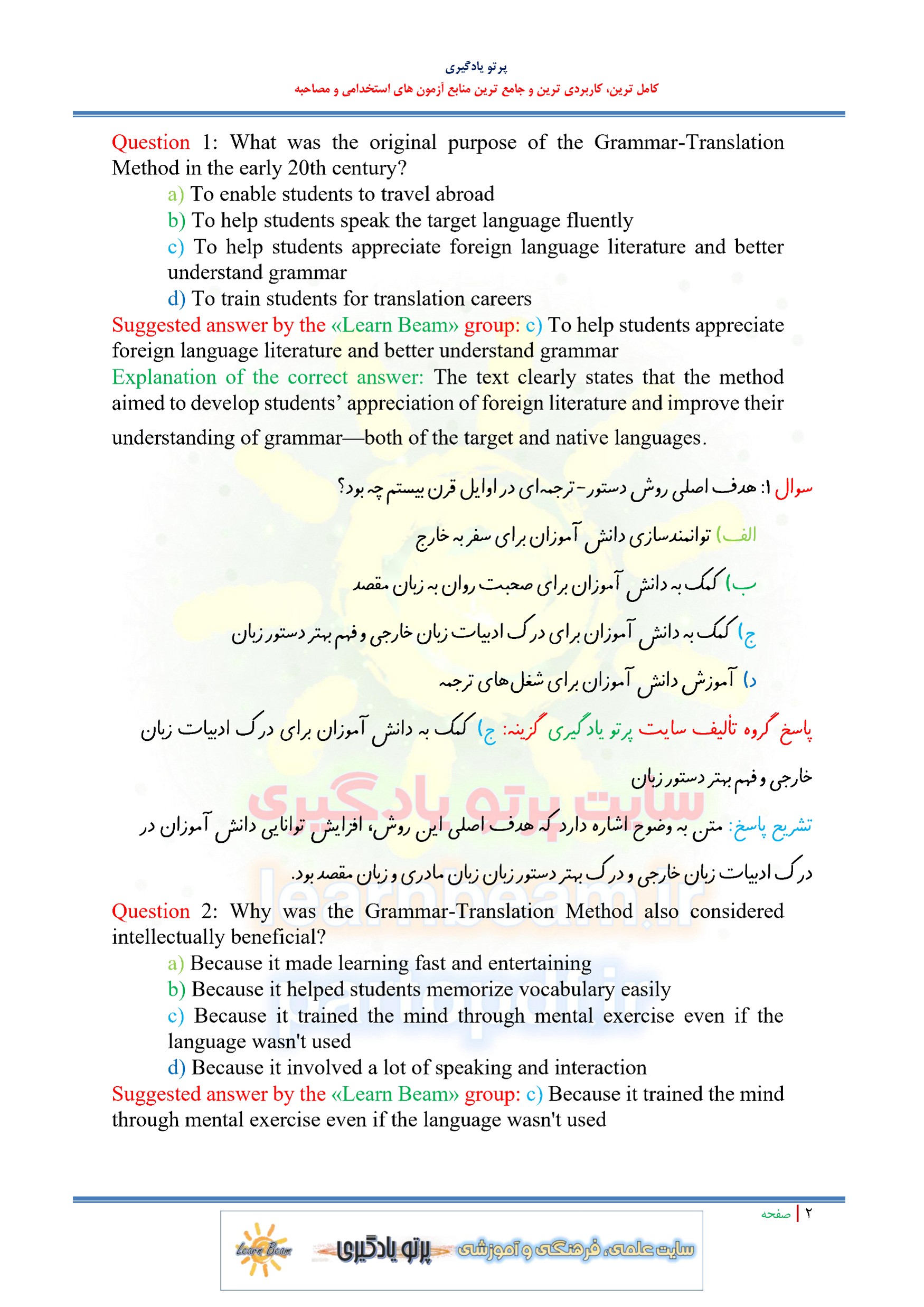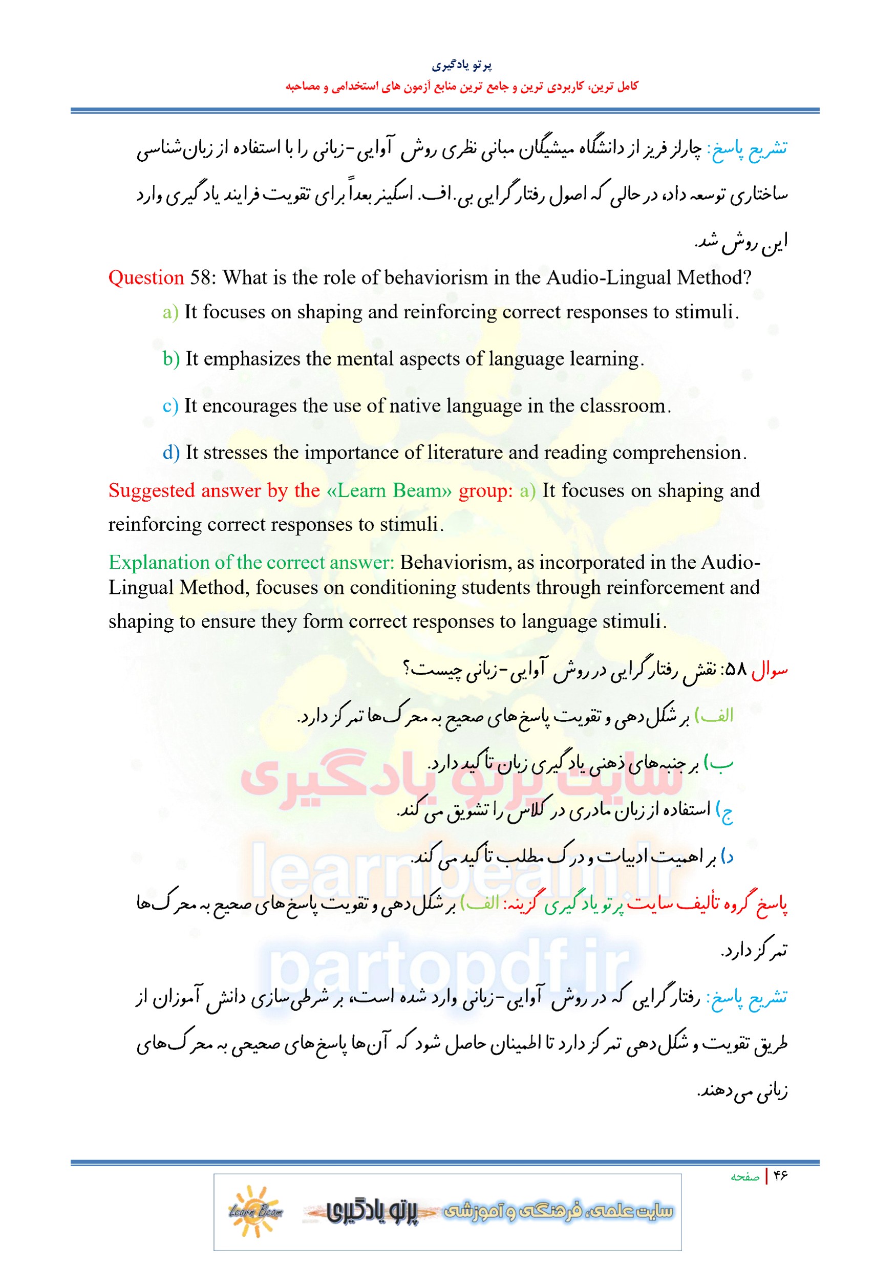 سوالات و تست کتاب Techniques & Principles in Language Teachingاثر دیانه لارسن فریمن و مارتی اندرسون