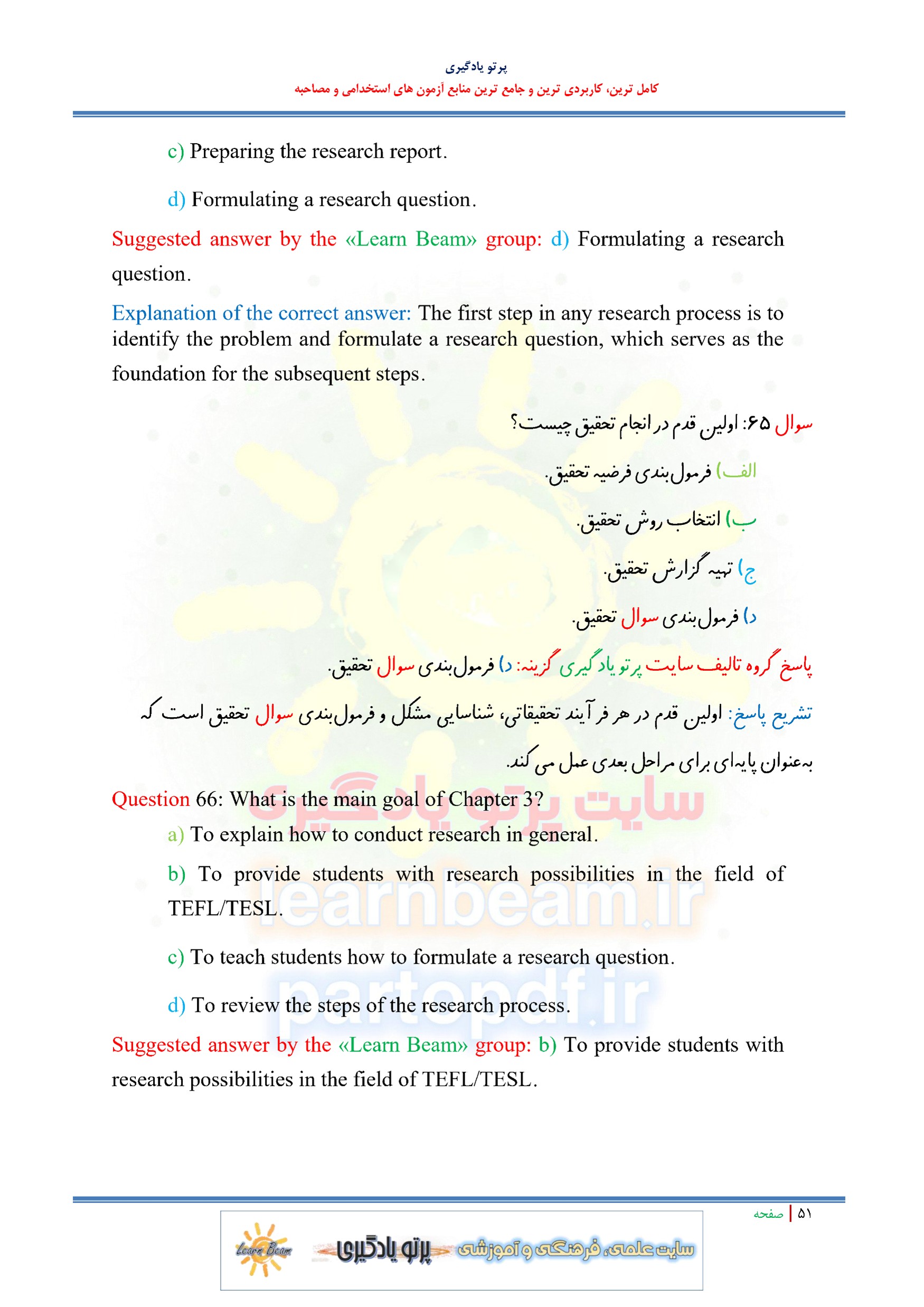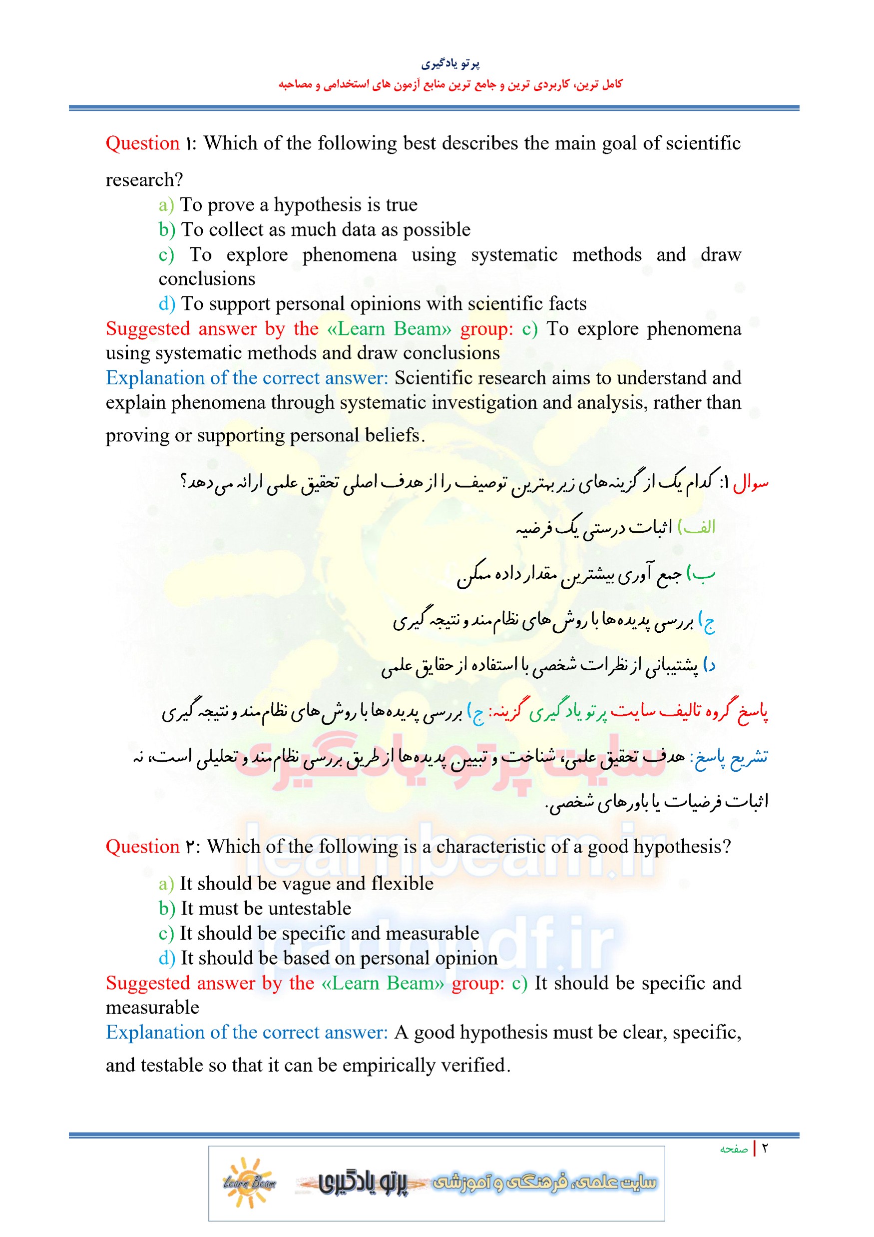 تست و سوالات اصول و روش تحقیق 1 و 2 کتاب Research Methods in Applied Linguistics 1&2 تالیف دکتر حسین فرهادی جزوه سوالات تستی اصول و روش تحقیق 1 و 2 با پاسخ تشریحی و ترجمه فارسی سوال به سوال شامل 233 تست در 181 صفحه در قالب فایل pdf. مجموعه سوالات تستی کتاب Research Methods in Applied Linguistics 1&2 تالیف دکتر حسین فرهادی / تست اصول و روش تحقیق 1 و 2 مجموعه ای کامل برای مطالعه و موفقیت در آزمون های استخدامی آموزش و پرورش و سایر آزمون های استخدامی است. جزوه مجموعه سوالات تستی اصول و روش تحقیق 1 و 2 در قالب فایل پی دی اف می تواند مناسب ترین انتخاب برای داوطلبین عزیز در جهت تحکیم اطلاعات ذهنی و جمع بندی مطالب باشد. مجموعه سوالات تستی کتاب Research Methods in Applied Linguistics 1&2 تالیف دکتر حسین فرهادی انسجام ذهنی و آمادگی ذهنی فراگیران برای آزمون استخدامی آموزش و پرورش را در پی دارد. این منبع متناسب با سرفصل های اعلامی دفترچه آزمون استخدامی تدوین و تالیف گردیده است.
