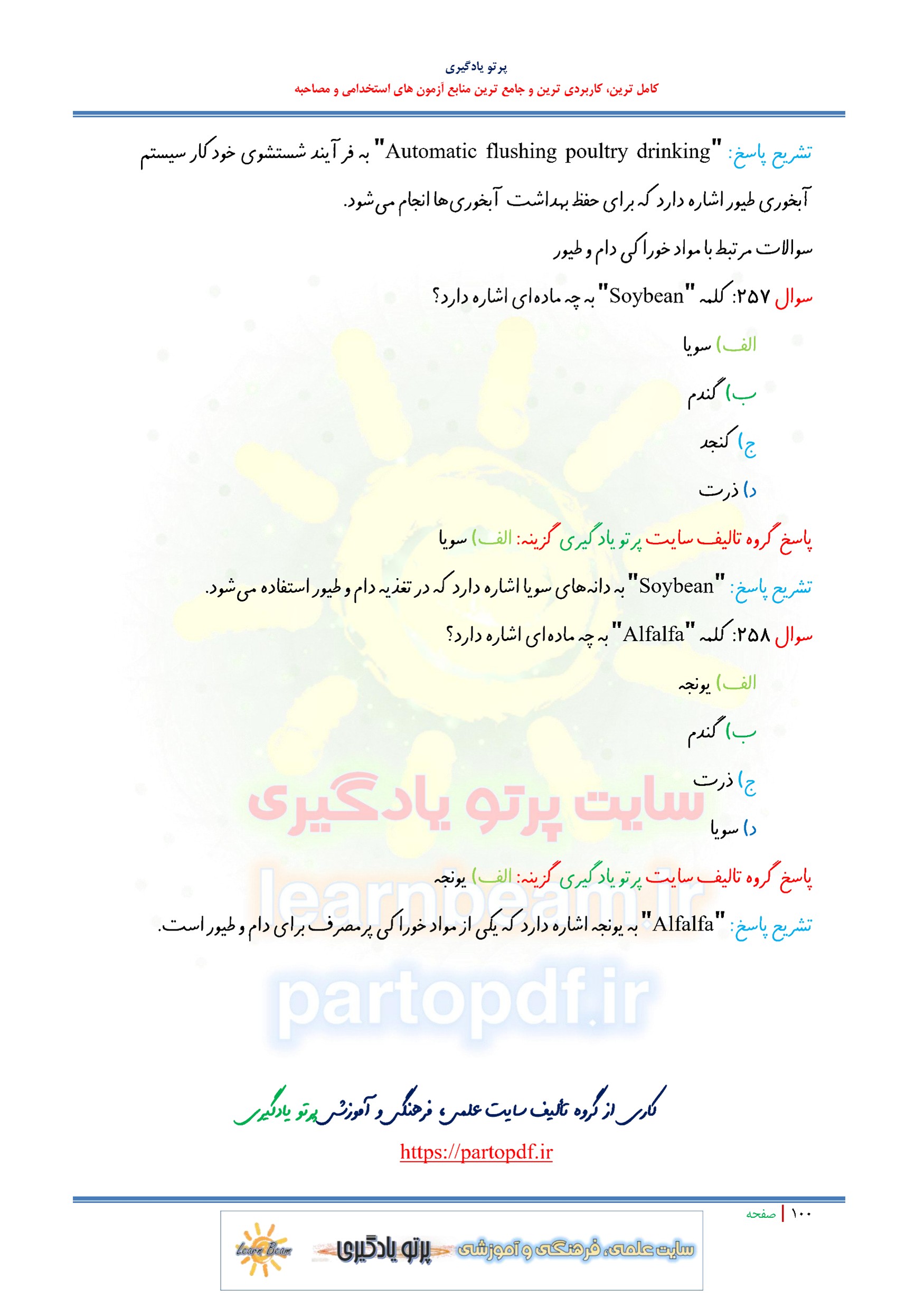 مجموعه سوالات و تست کتاب دانش فنی تخصصی امور دامی با پاسخ تشریحی