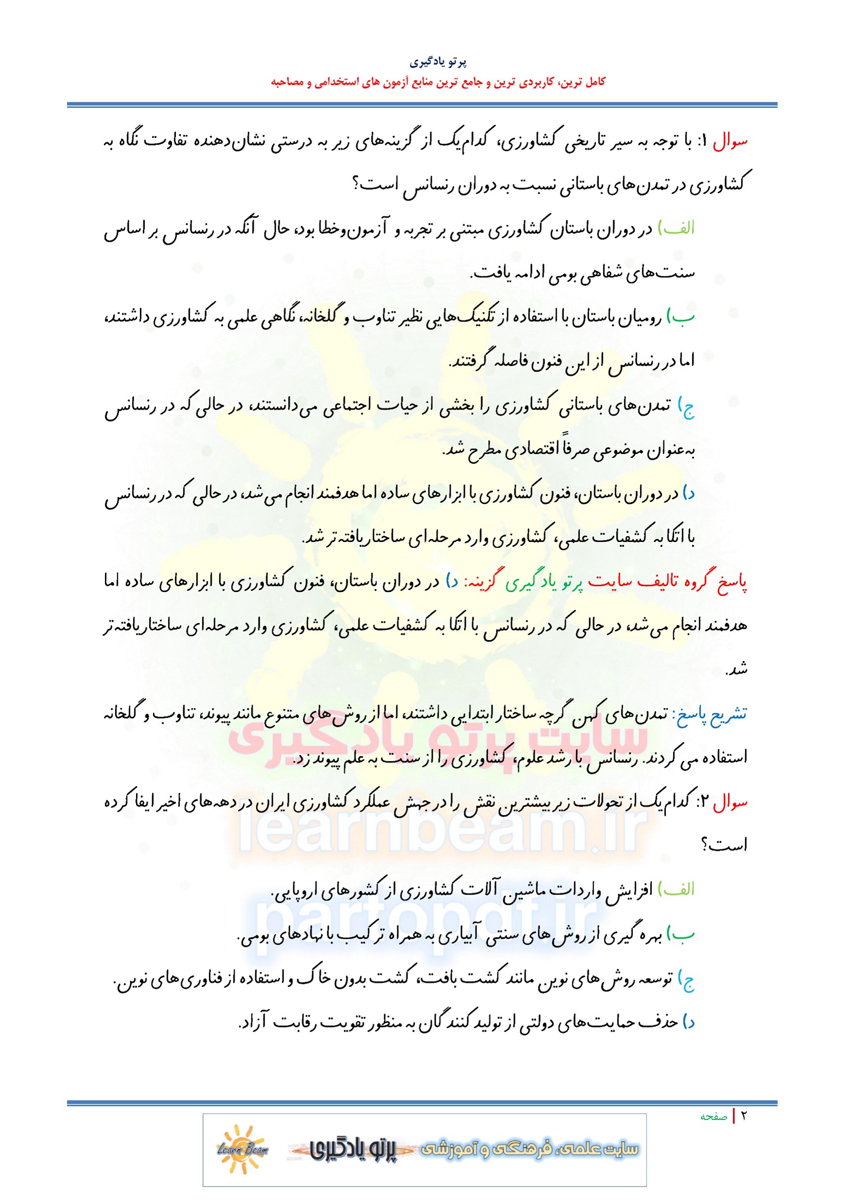 سوالات تستی کتاب پرورش و تولید حبوبات