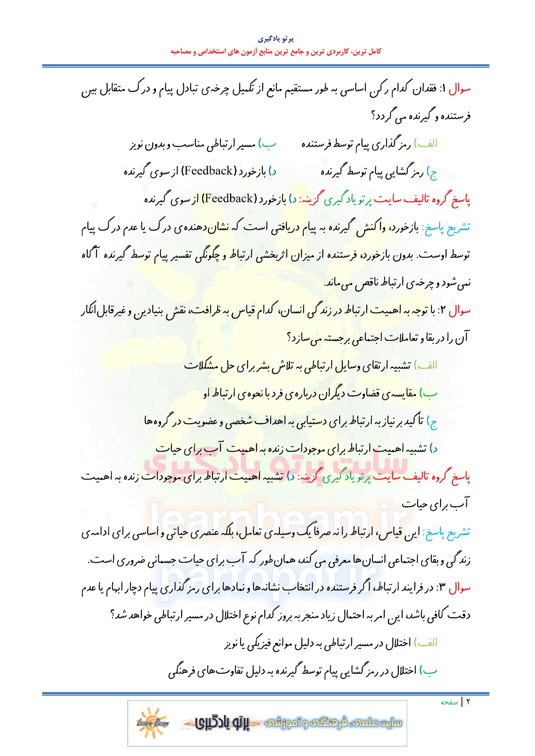 مجموعه سوالات و تست کتاب ارتباط موثر با پاسخ تشریحی