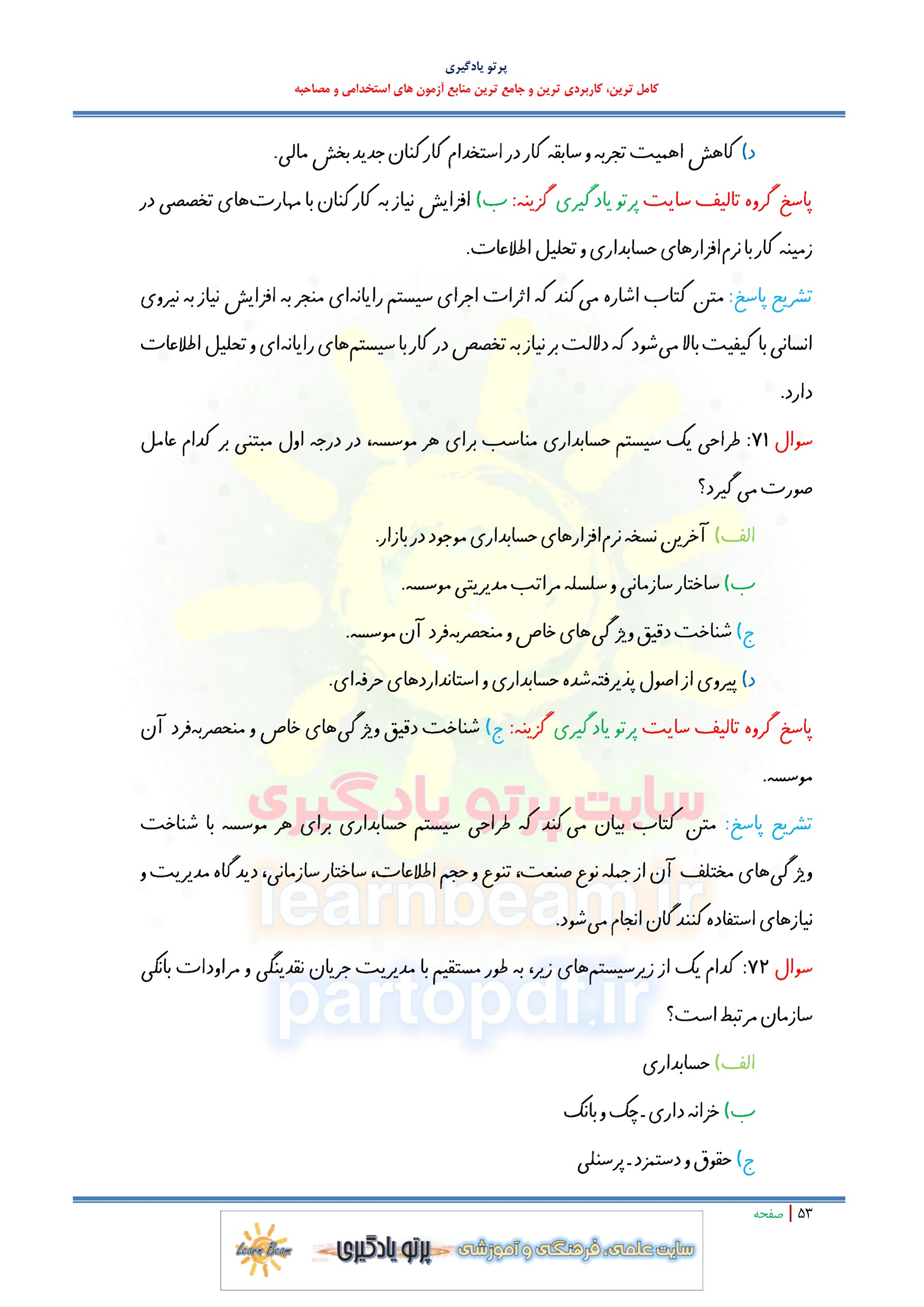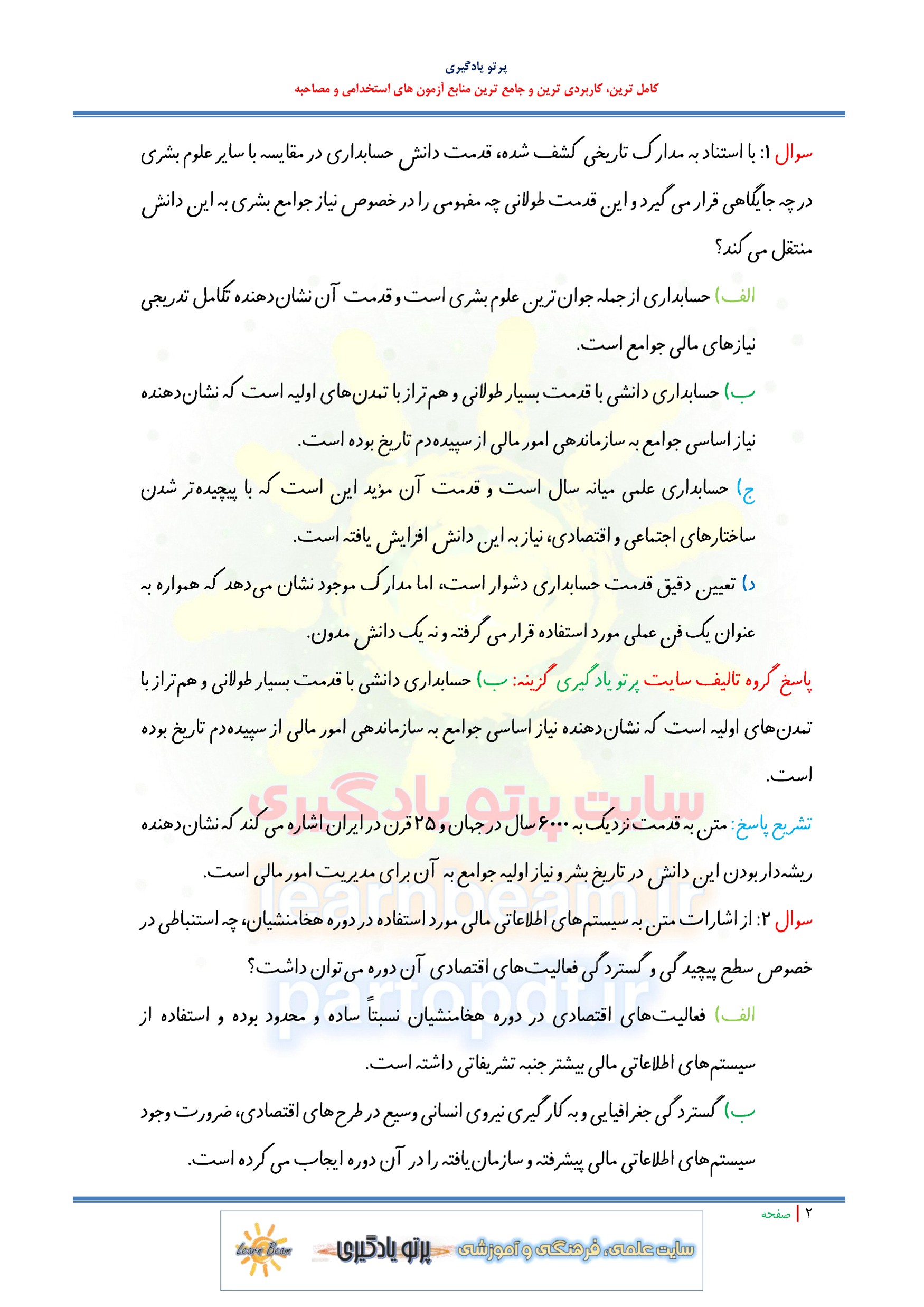 سوالات تستی کتاب دانش فنی پایه حسابداری