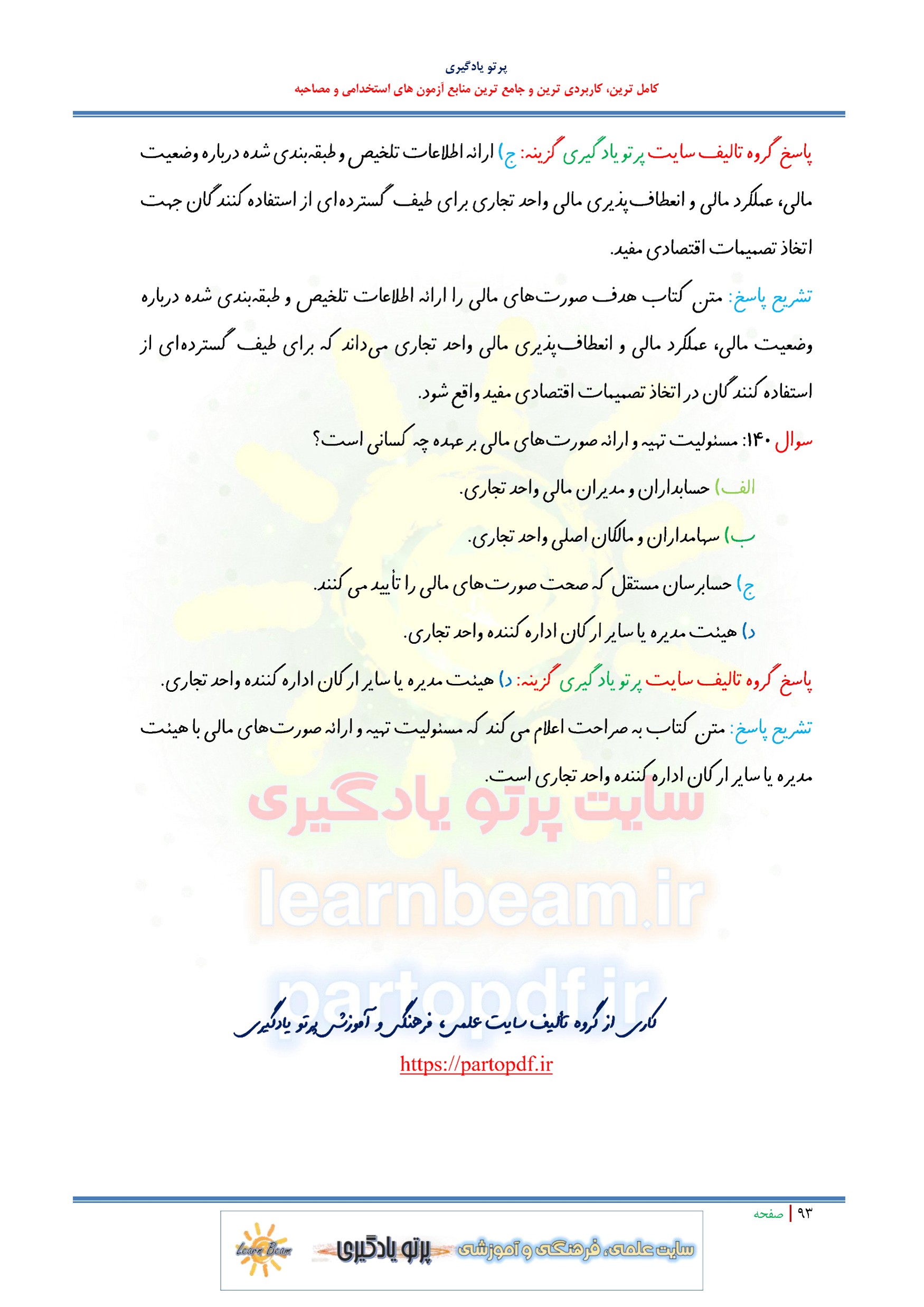 سوالات تستی کتاب دانش فنی تخصصی حسابداری