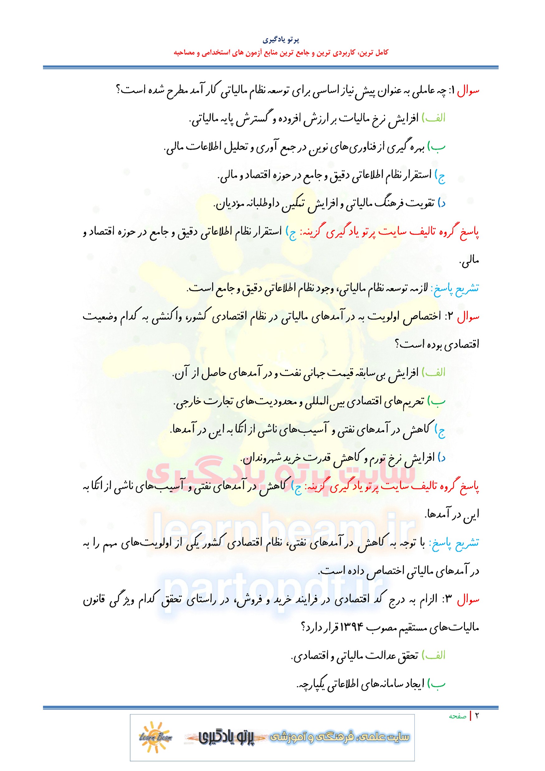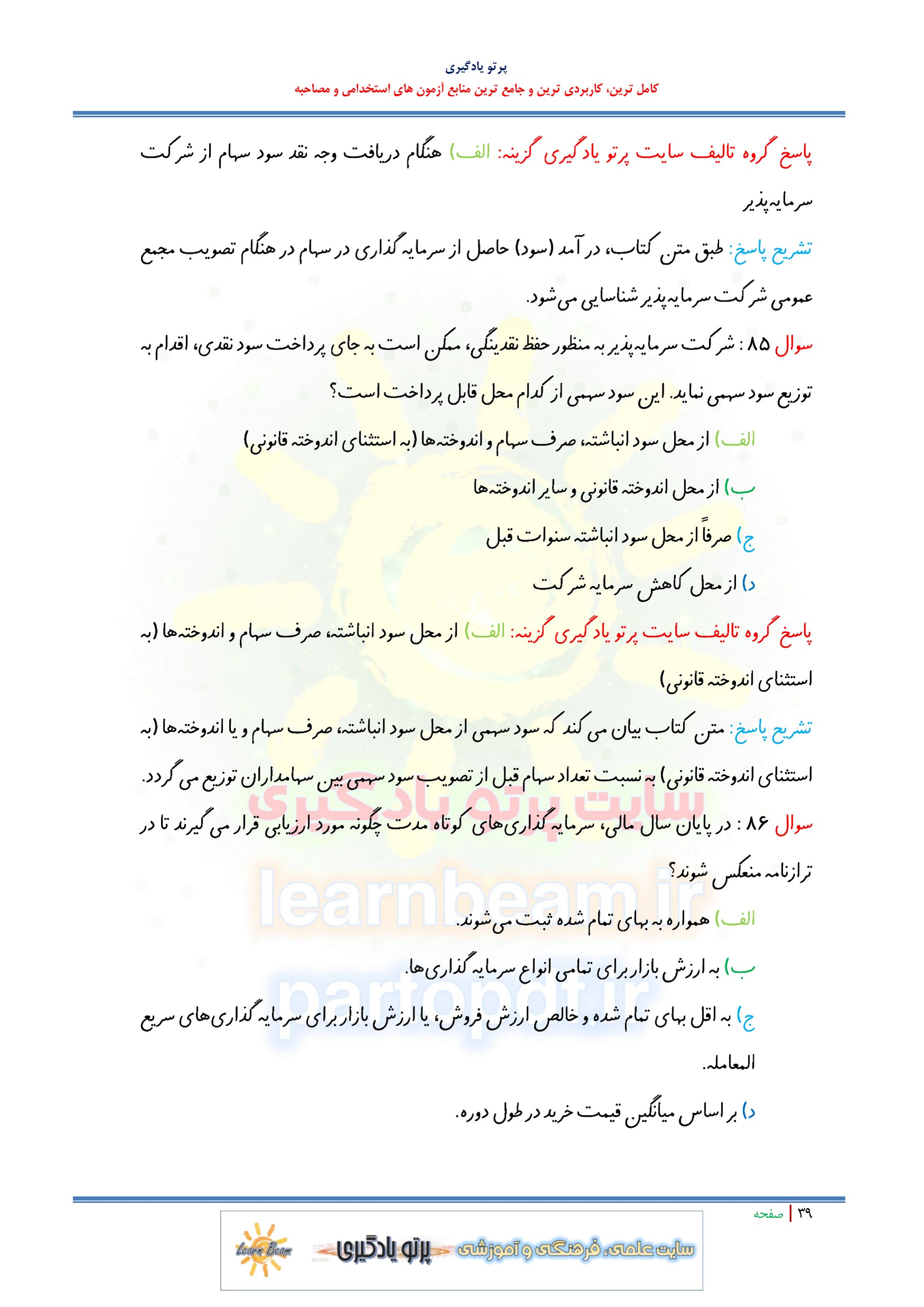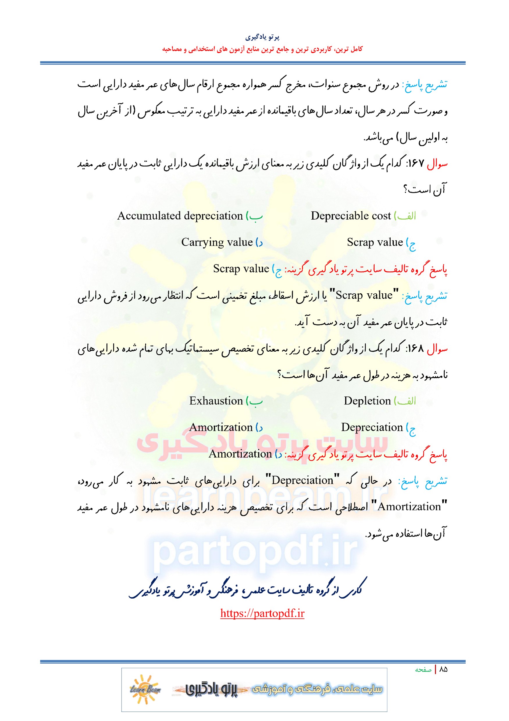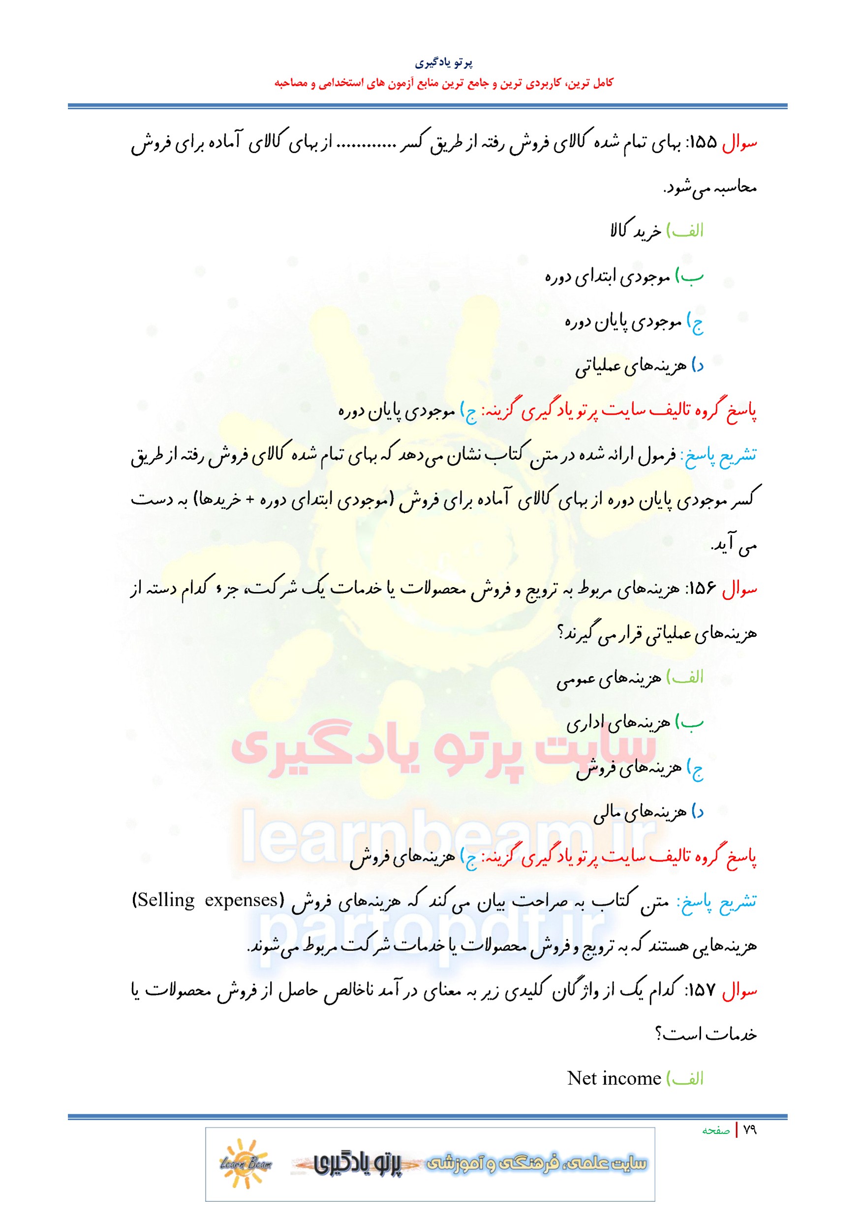 سوالات تستی کتاب دانش فنی تخصصی حسابداری