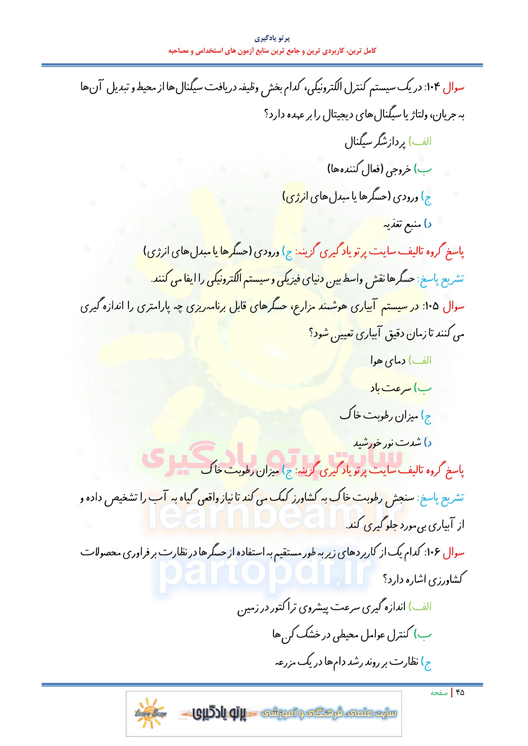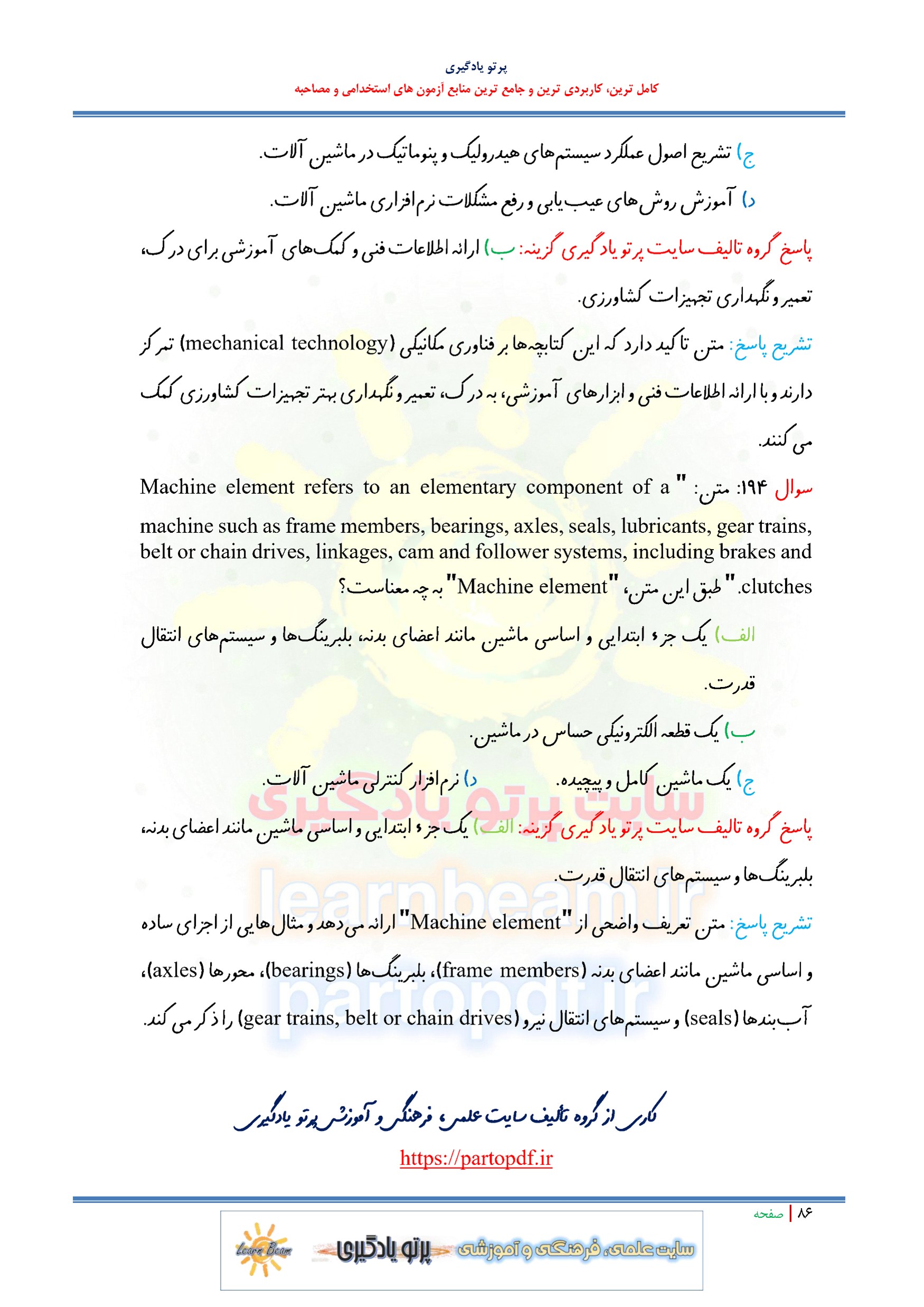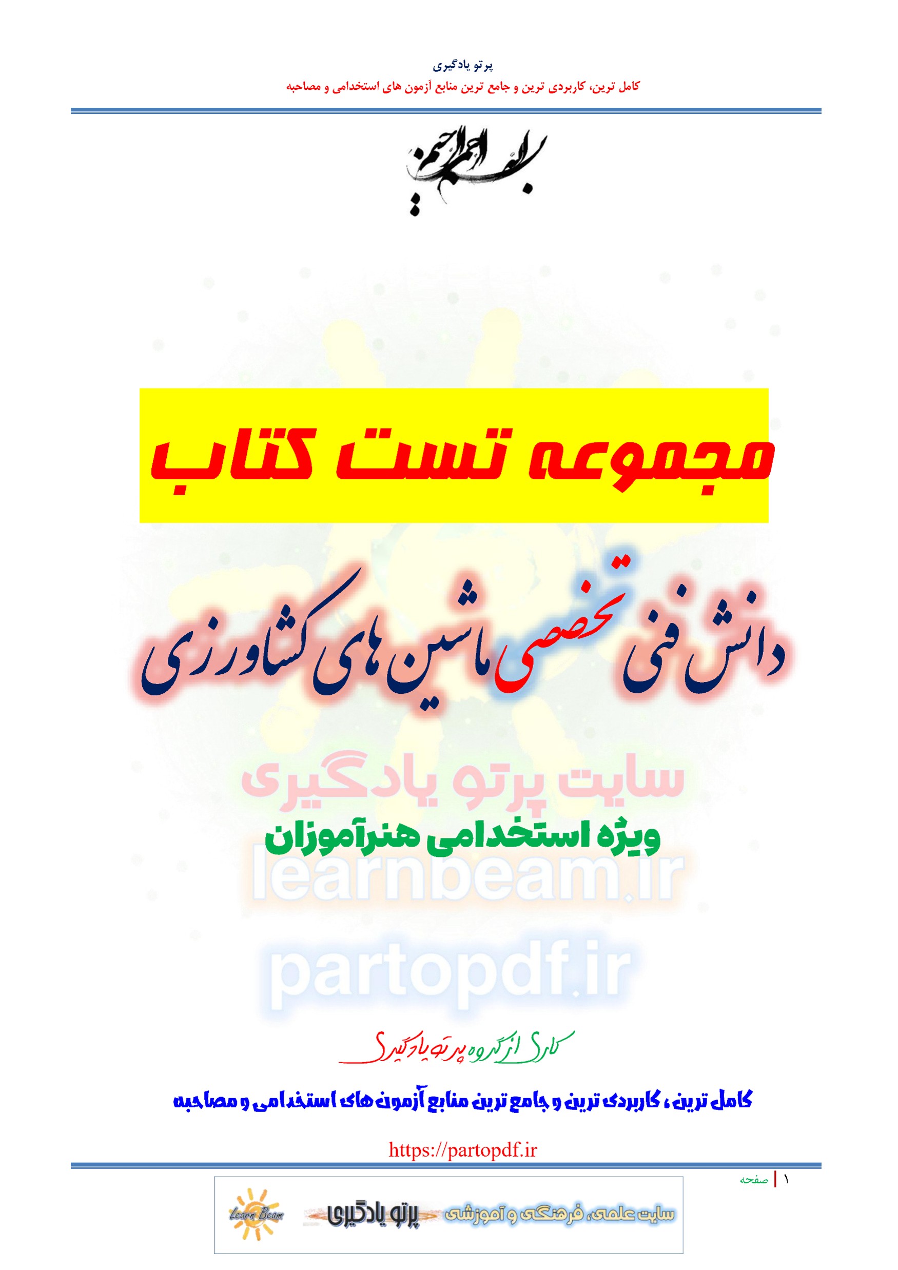 مجموعه سوالات و تست کتاب دانش فنی تخصصی ماشین های کشاورزی با پاسخ تشریحی
