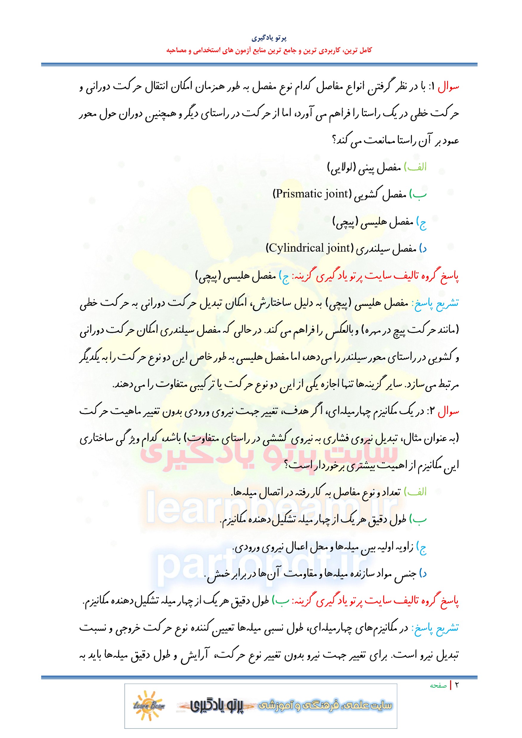 سوالات تستی کتاب دانش فنی تخصصی ماشین های کشاورزی