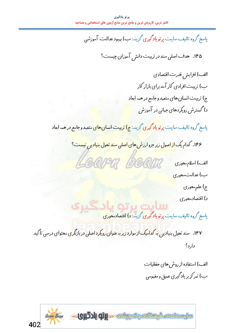 5. سياستهاي كلي ايجاد تحول در آموزش و پرورش (70 تست در 28 صفحه)