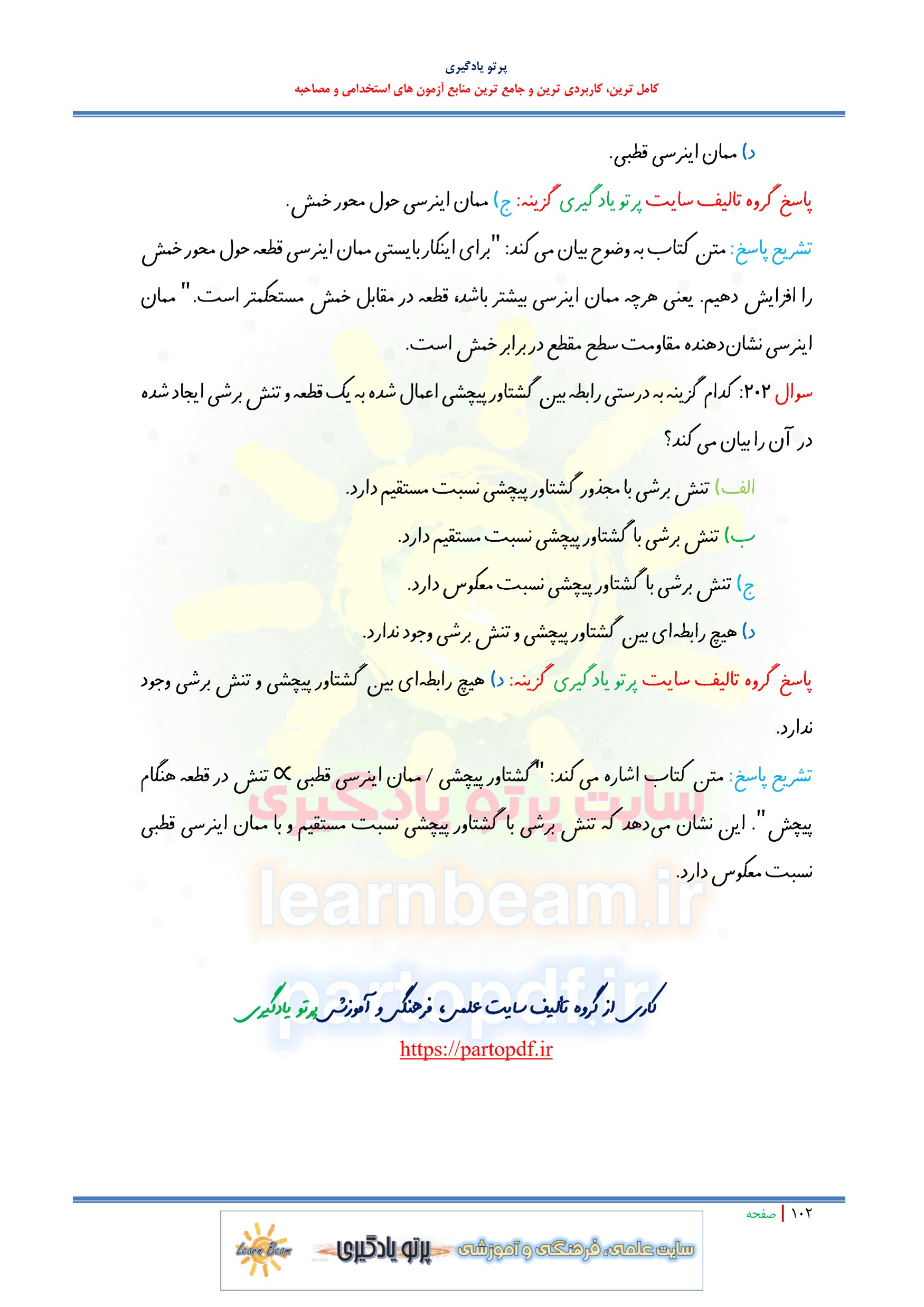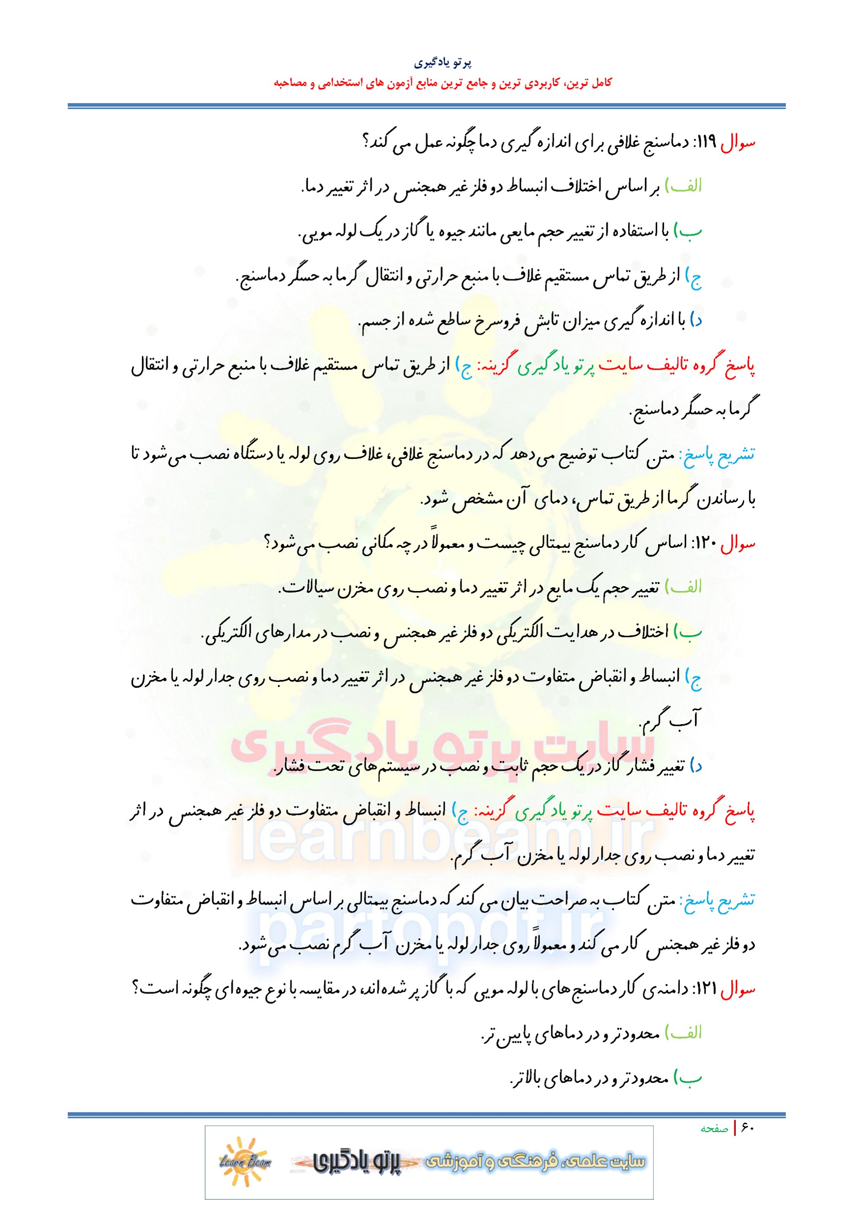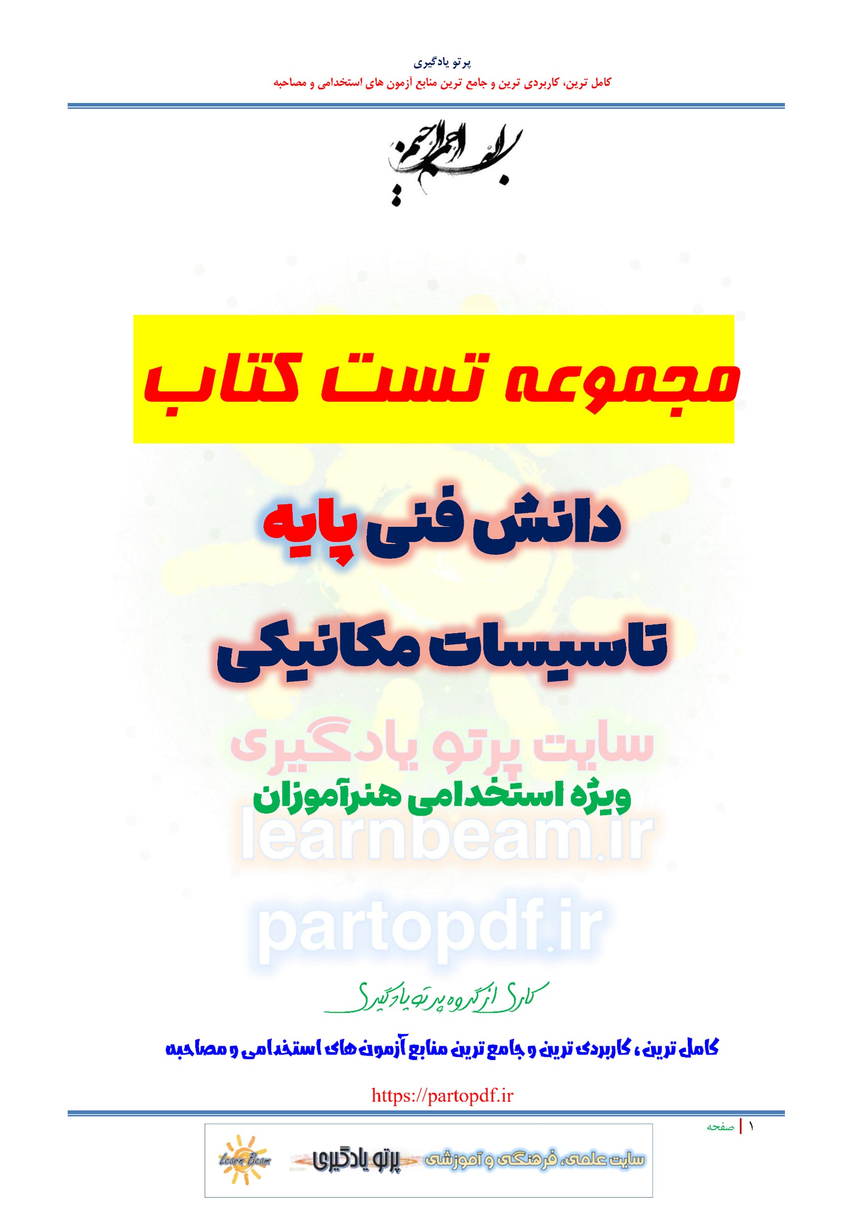 سوالات و تست کتاب دانش فنی پایه تاسیسات مکانیکی شامل 202 تست در 102 صفحه با پاسخ تشریحی در قالب فایل pdf. بهترین منبع برای آزمون های استخدامی می باشد. جزوه سوالات تستی کتاب دانش فنی پایه تاسیسات مکانیکی مطالب خوانده شده داوطلبین آزمون استخدامی را نظم بخشیده و منسجم می سازد. این مجموعه مرور سریع داوطلب را سبب می شود و آگاهی های وی را نظم بخشیده و یک آمادگی و شبیه سازی را برای جلسه آزمون به همراه دارد. مطالعه این منبع برای همه داوطلبین عزیز پیشنهاد می شود.