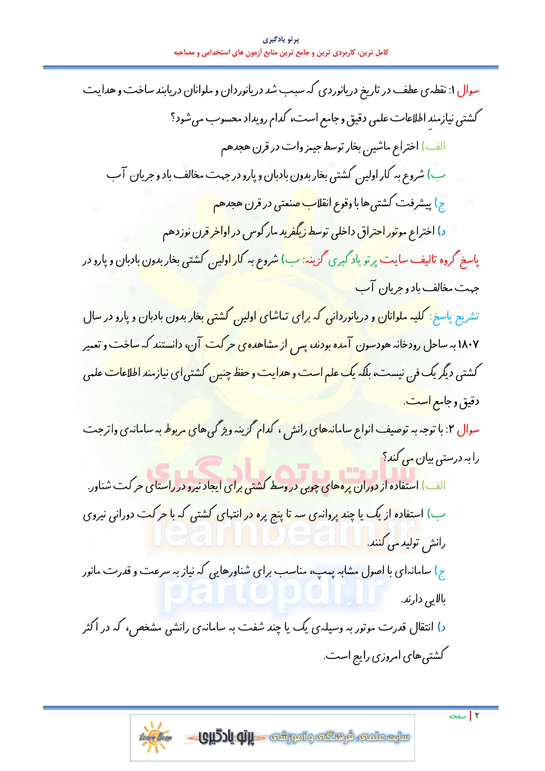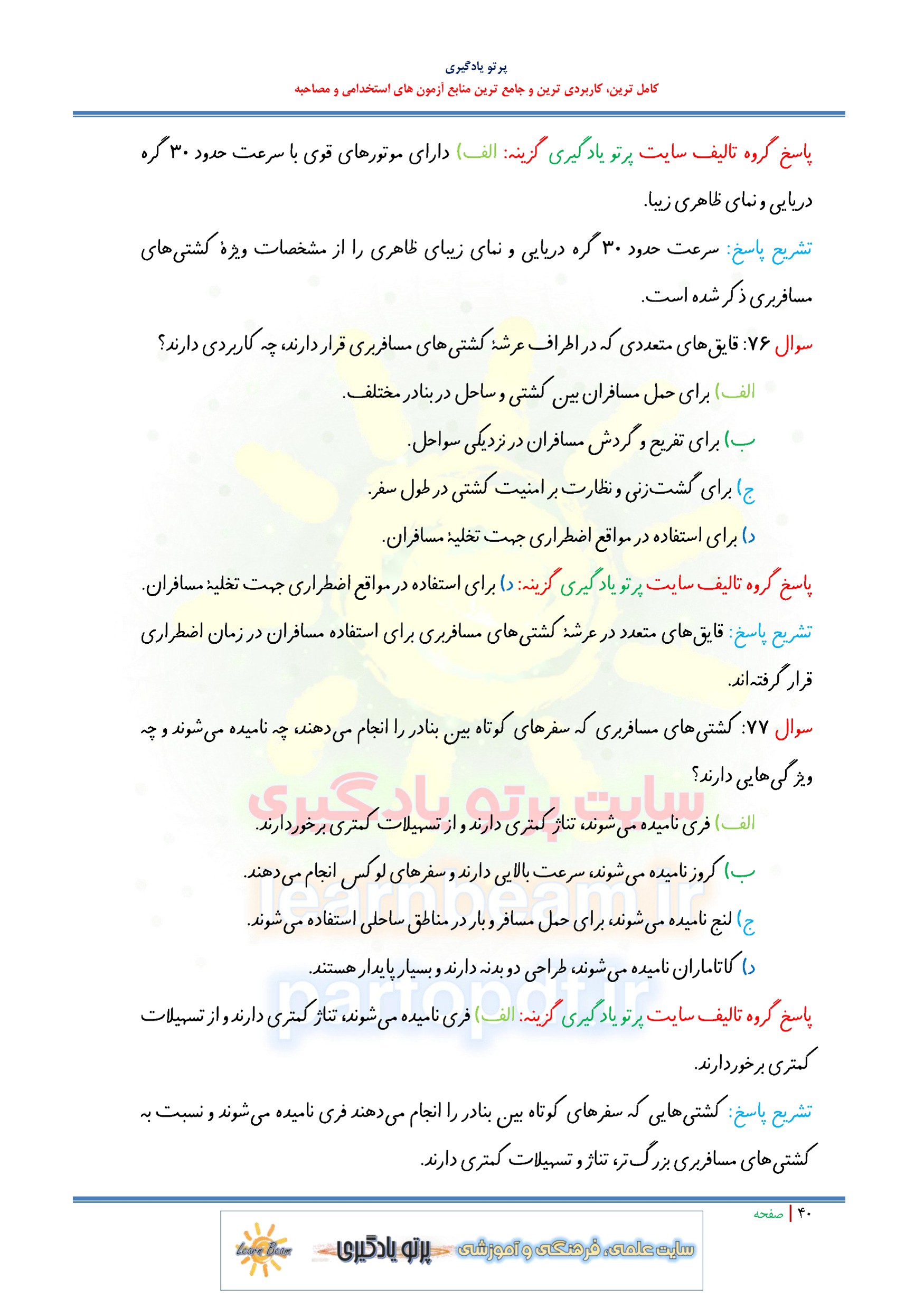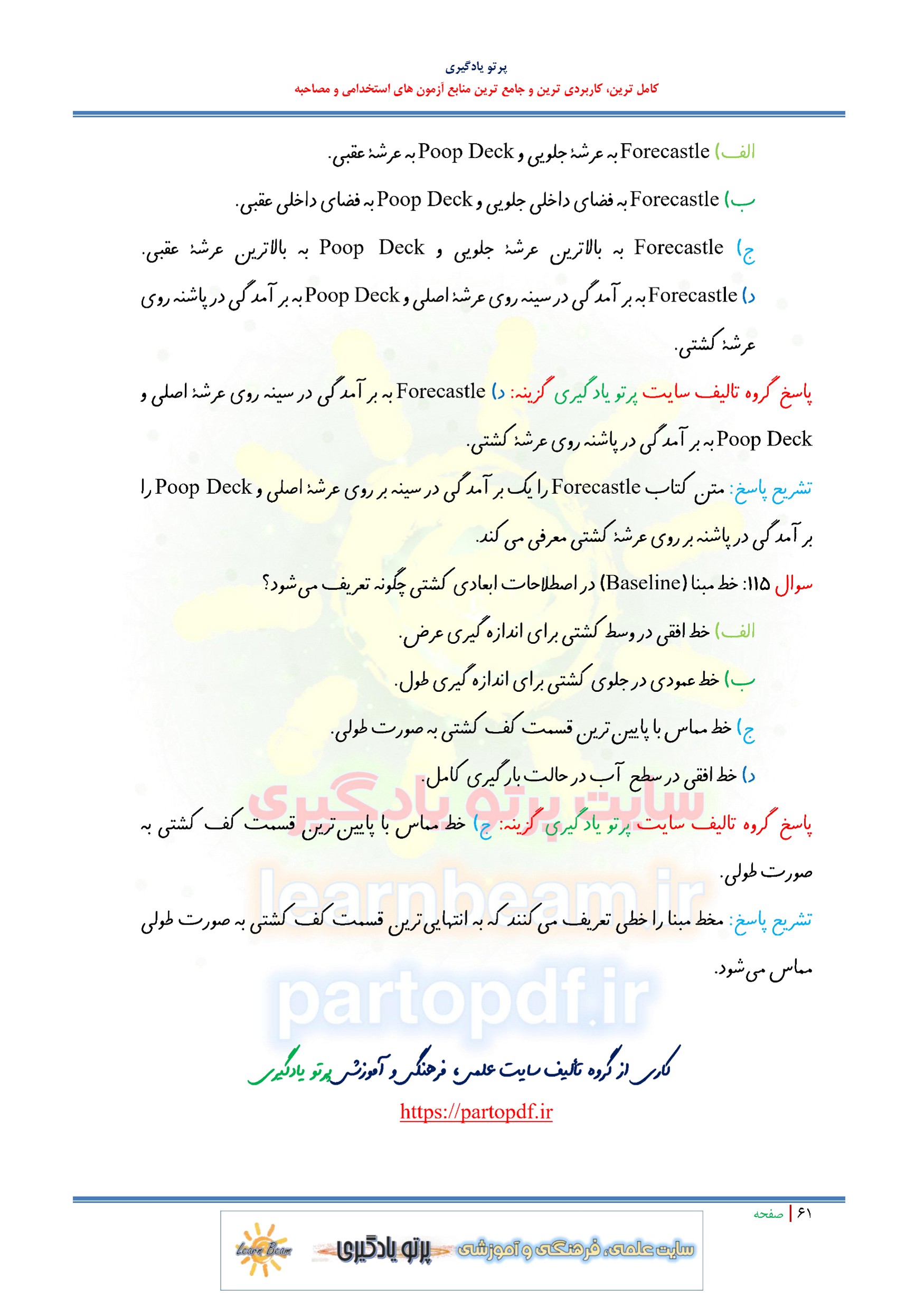 مجموعه سوالات و تست کتاب دانش فنی پایه ناوبری با پاسخ تشریحی