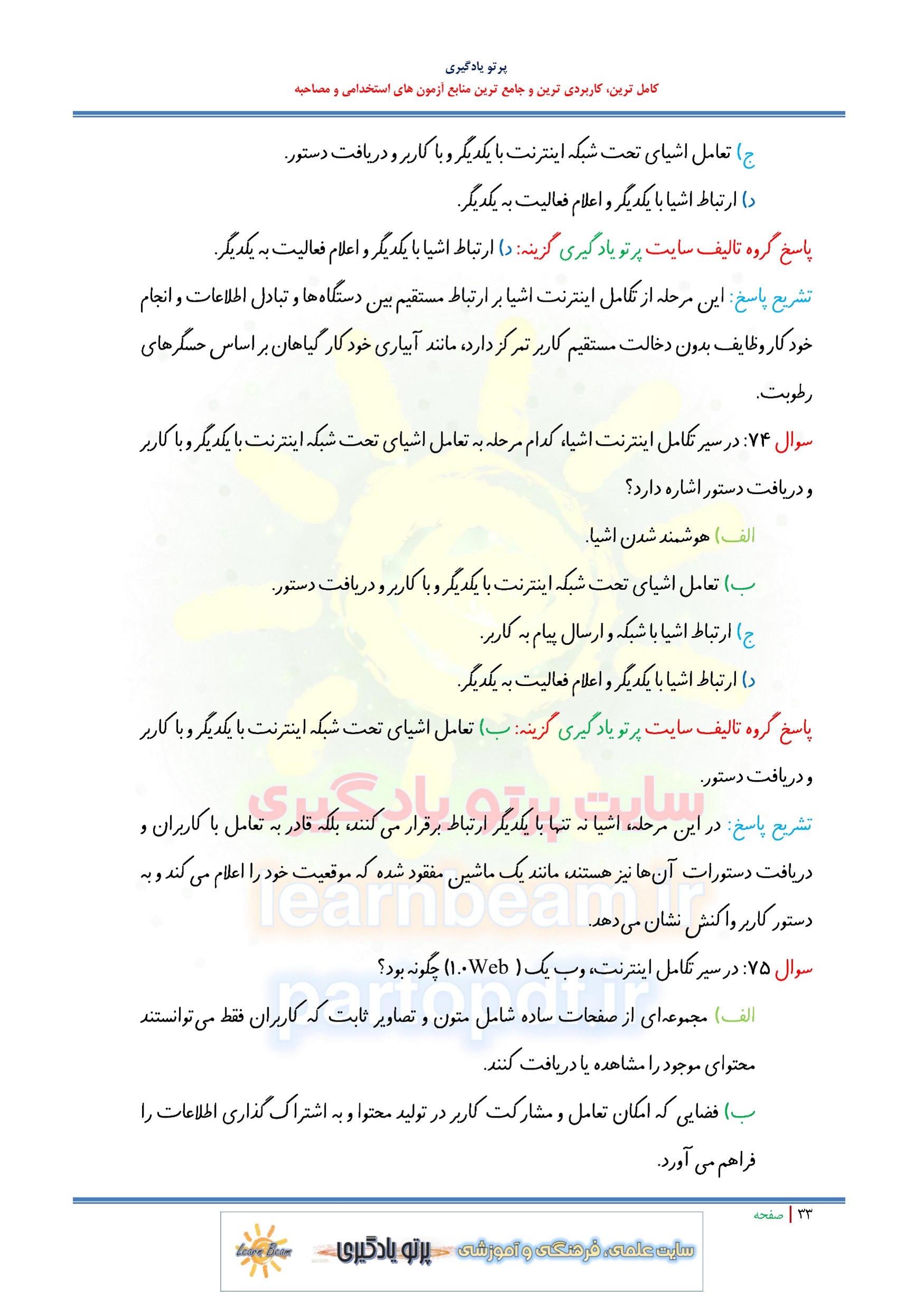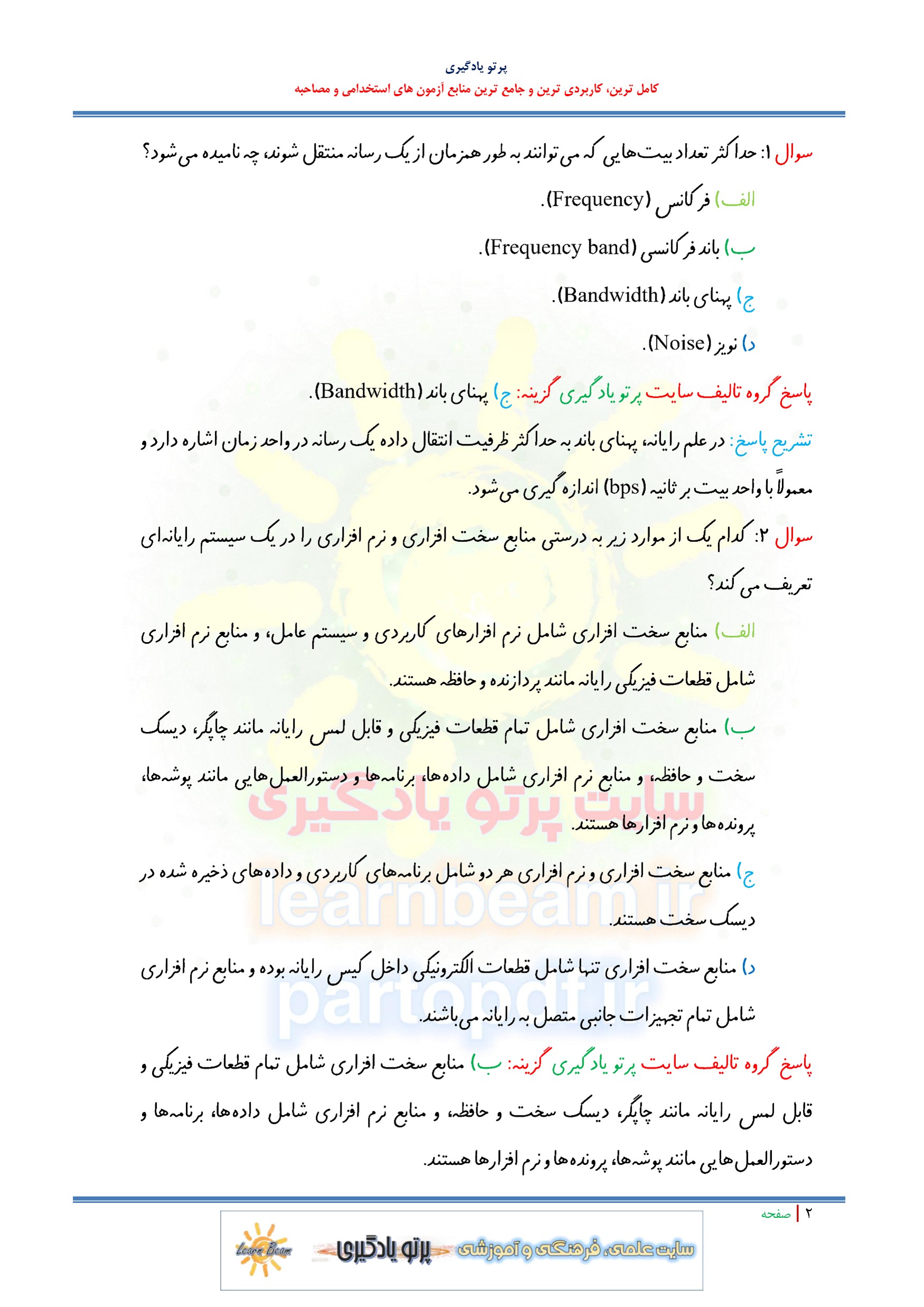 سوالات و تست کتاب دانش فنی تخصصی شبکه و نرم افزار رایانه شامل 146 تست در 76 صفحه با پاسخ تشریحی و ترجمه متون انگلیسی در قالب فایل pdf. بهترین منبع برای آزمون های استخدامی می باشد. جزوه سوالات تستی کتاب دانش فنی تخصصی شبکه و نرم افزار رایانه مطالب خوانده شده داوطلبین آزمون استخدامی را نظم بخشیده و منسجم می سازد. این مجموعه مرور سریع داوطلب را سبب می شود و آگاهی های وی را نظم بخشیده و یک آمادگی و شبیه سازی را برای جلسه آزمون به همراه دارد. مطالعه این منبع برای همه داوطلبین عزیز پیشنهاد می شود.
