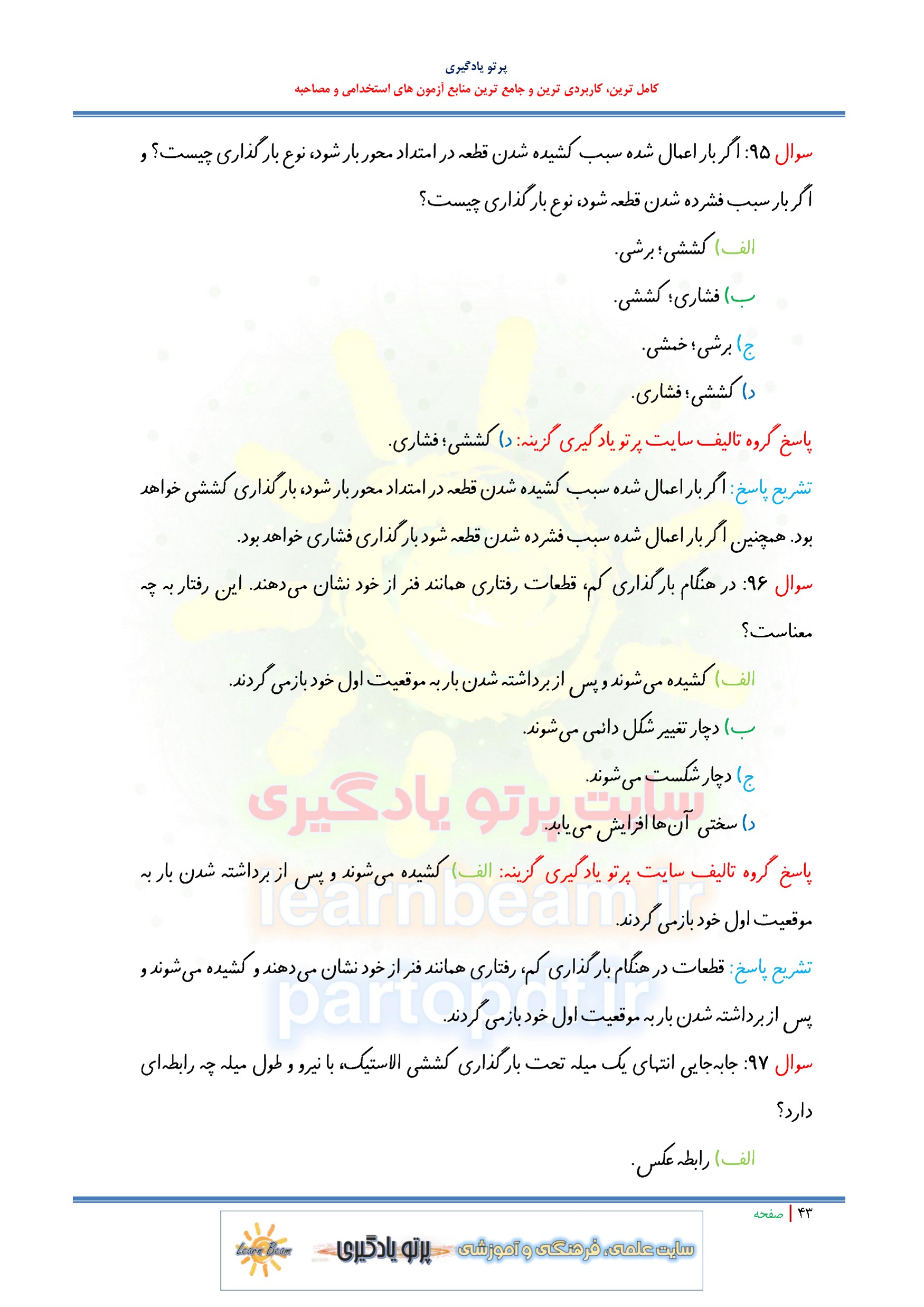 سوالات تستی کتاب دانش فنی پایه صنایع فلزی