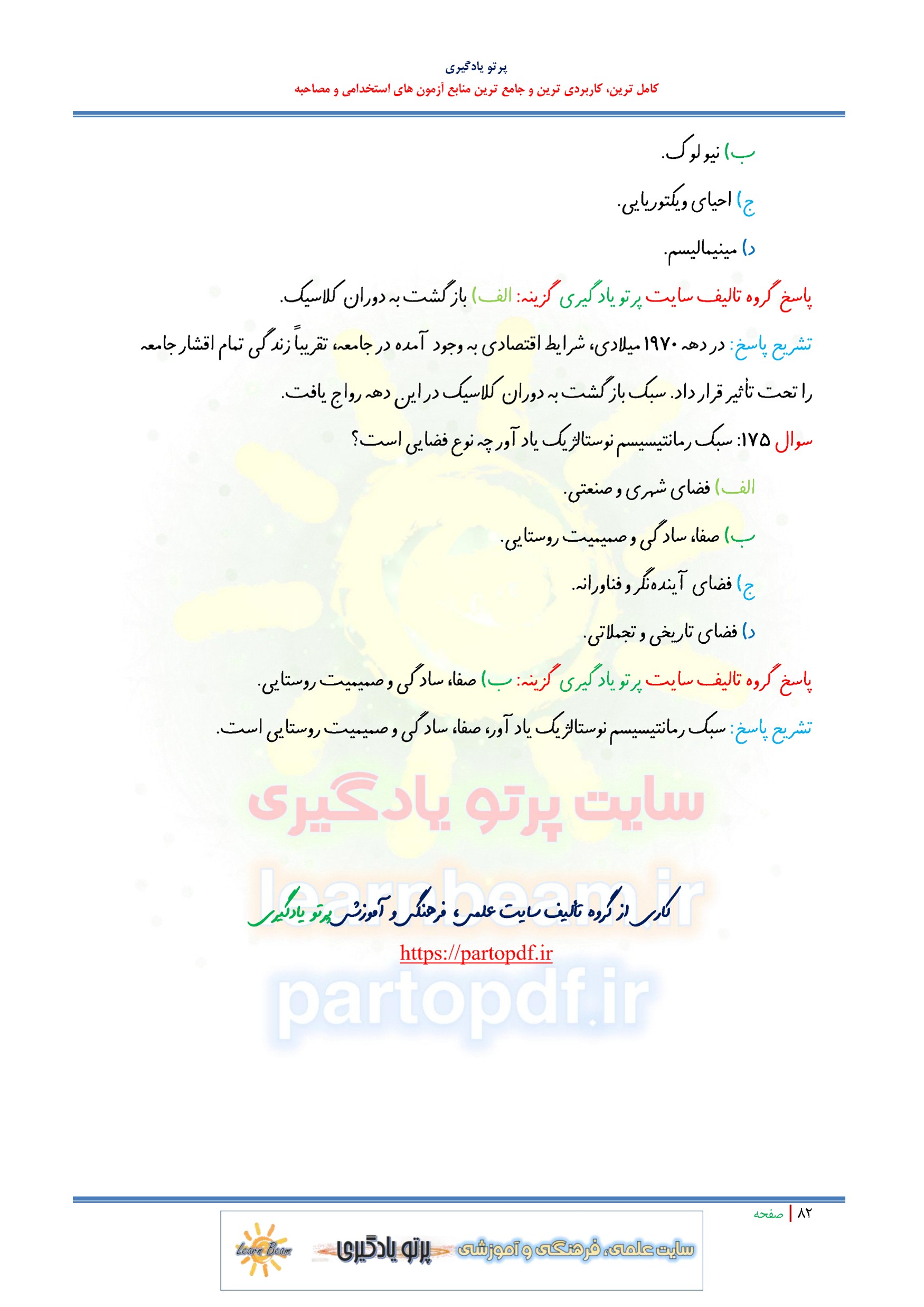 سوالات و تست کتاب دانش فنی پایه طراحی و دوخت شامل 175 تست در 82 صفحه با پاسخ تشریحی در قالب فایل pdf. بهترین منبع برای آزمون های استخدامی می باشد. جزوه سوالات تستی کتاب دانش فنی پایه طراحی و دوخت مطالب خوانده شده داوطلبین آزمون استخدامی را نظم بخشیده و منسجم می سازد. این مجموعه مرور سریع داوطلب را سبب می شود و آگاهی های وی را نظم بخشیده و یک آمادگی و شبیه سازی را برای جلسه آزمون به همراه دارد. مطالعه این منبع برای همه داوطلبین عزیز پیشنهاد می شود.