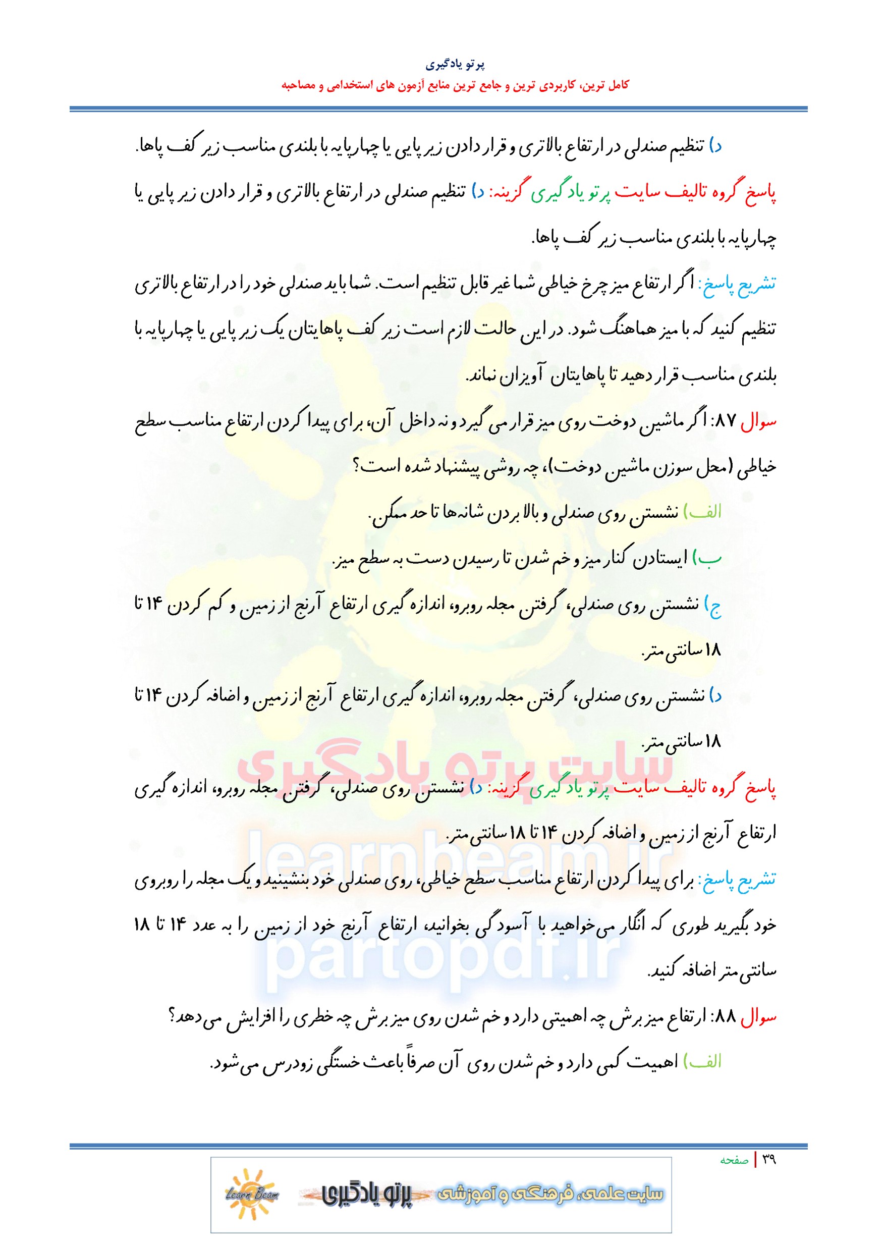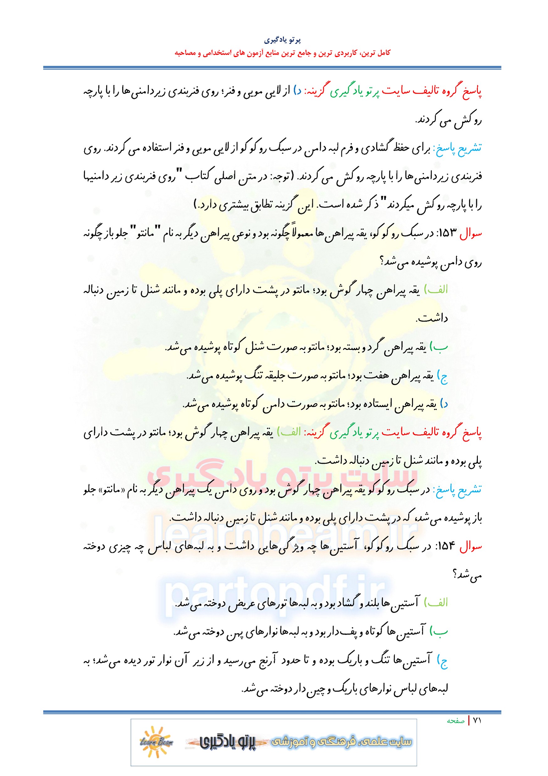 سوالات تستی کتاب دانش فنی تخصصی طراحی و دوخت