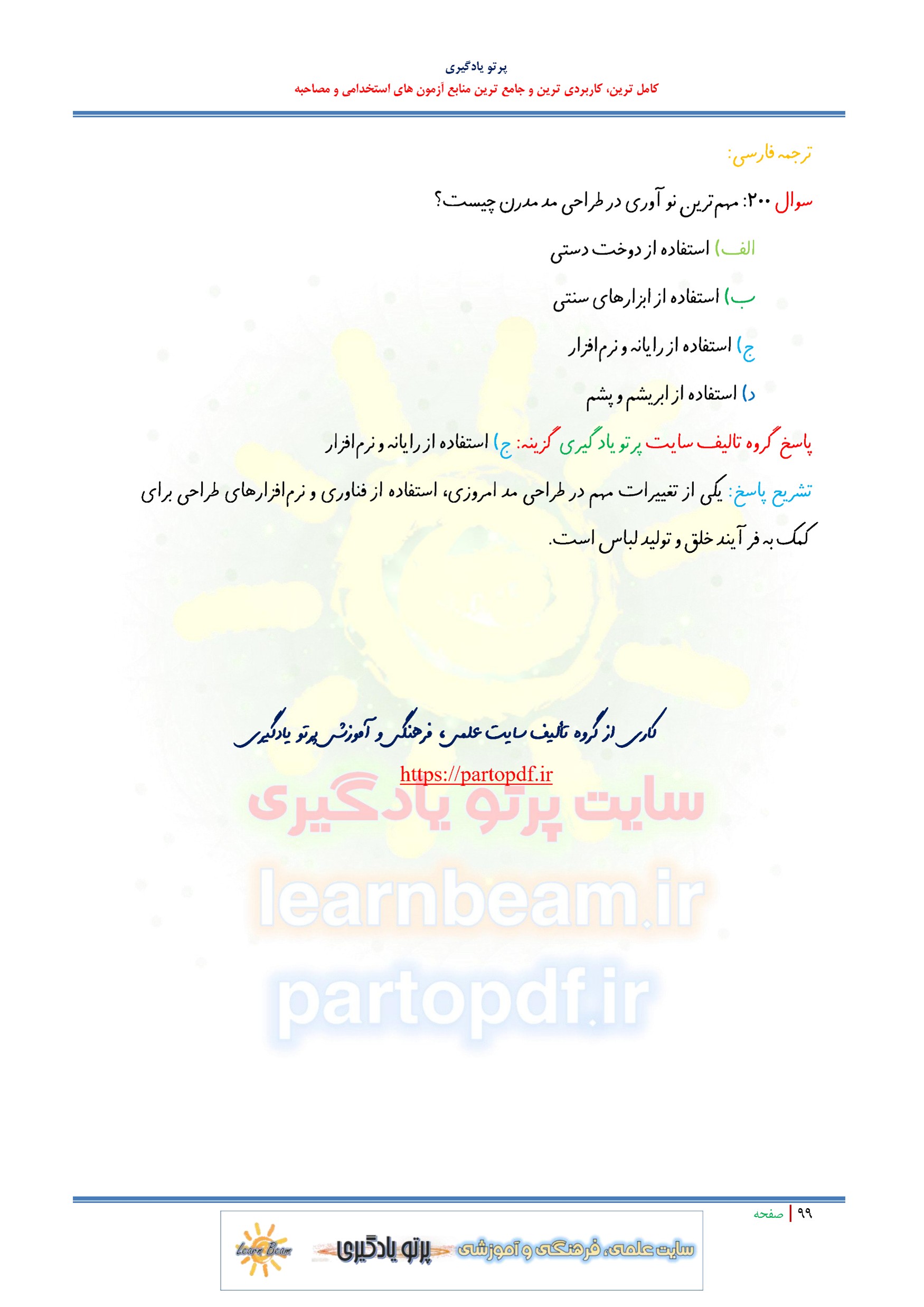 سوالات تستی کتاب دانش فنی تخصصی طراحی و دوخت