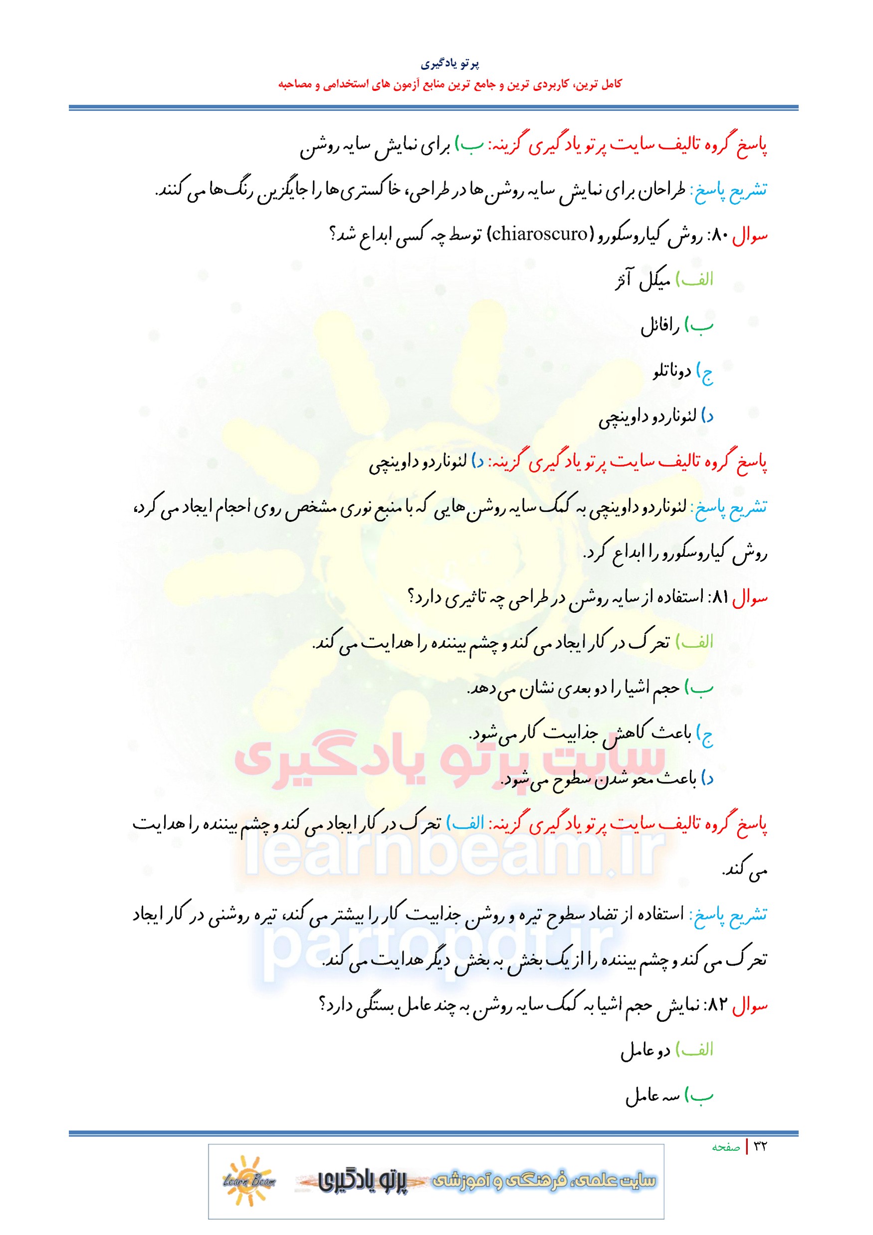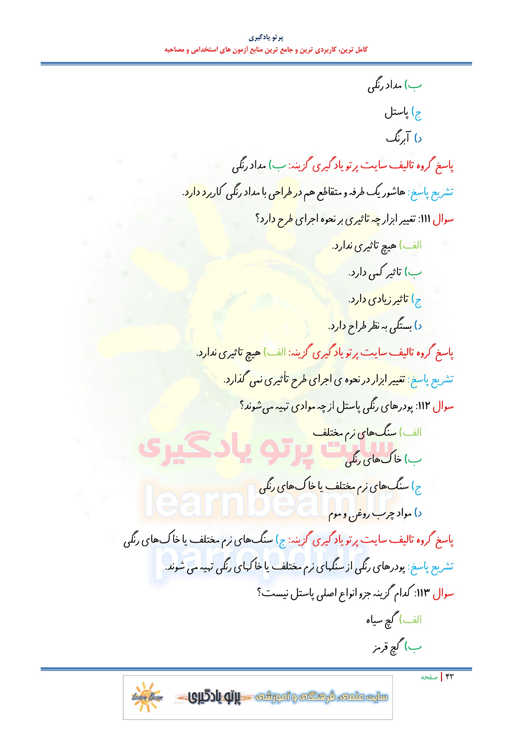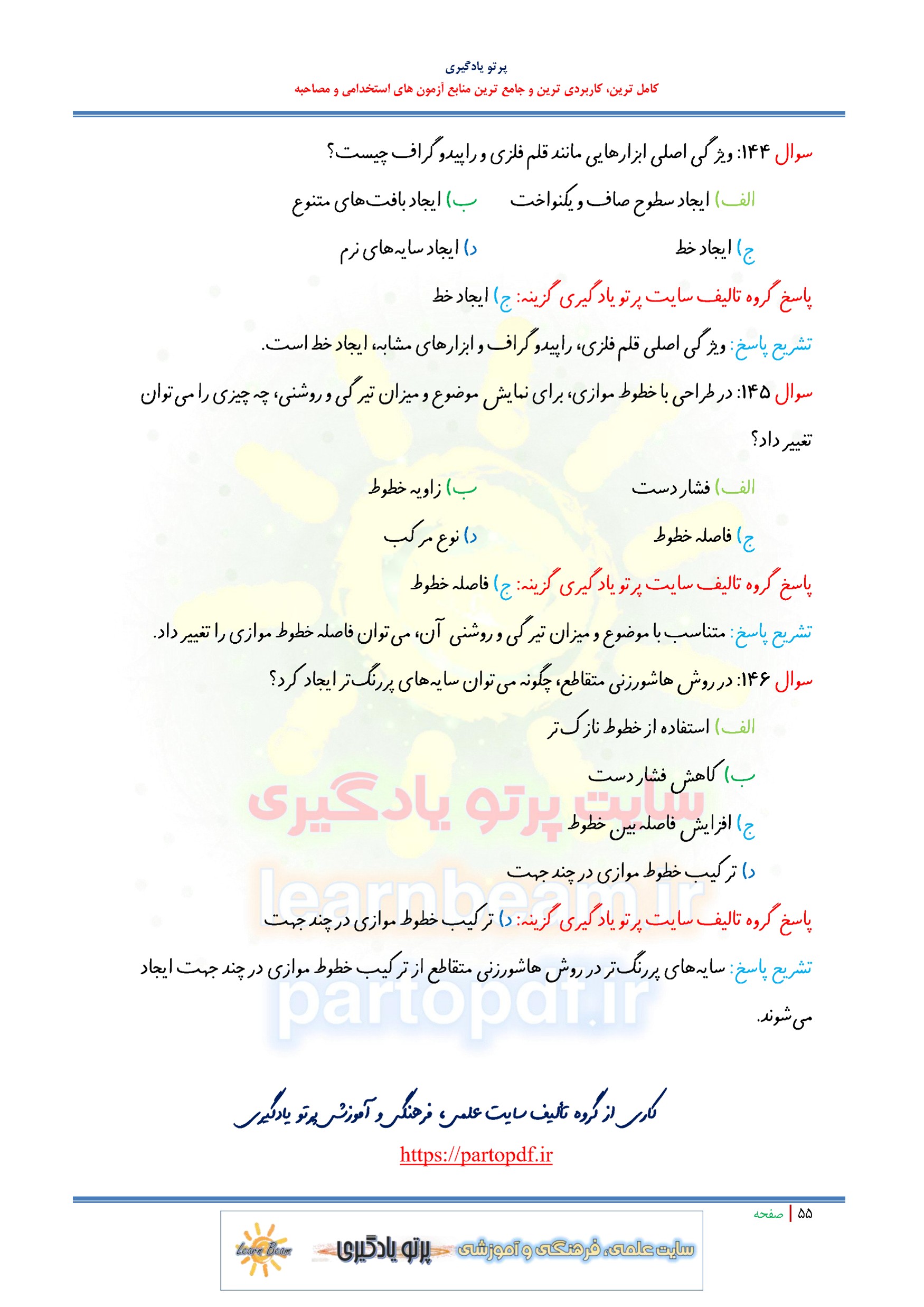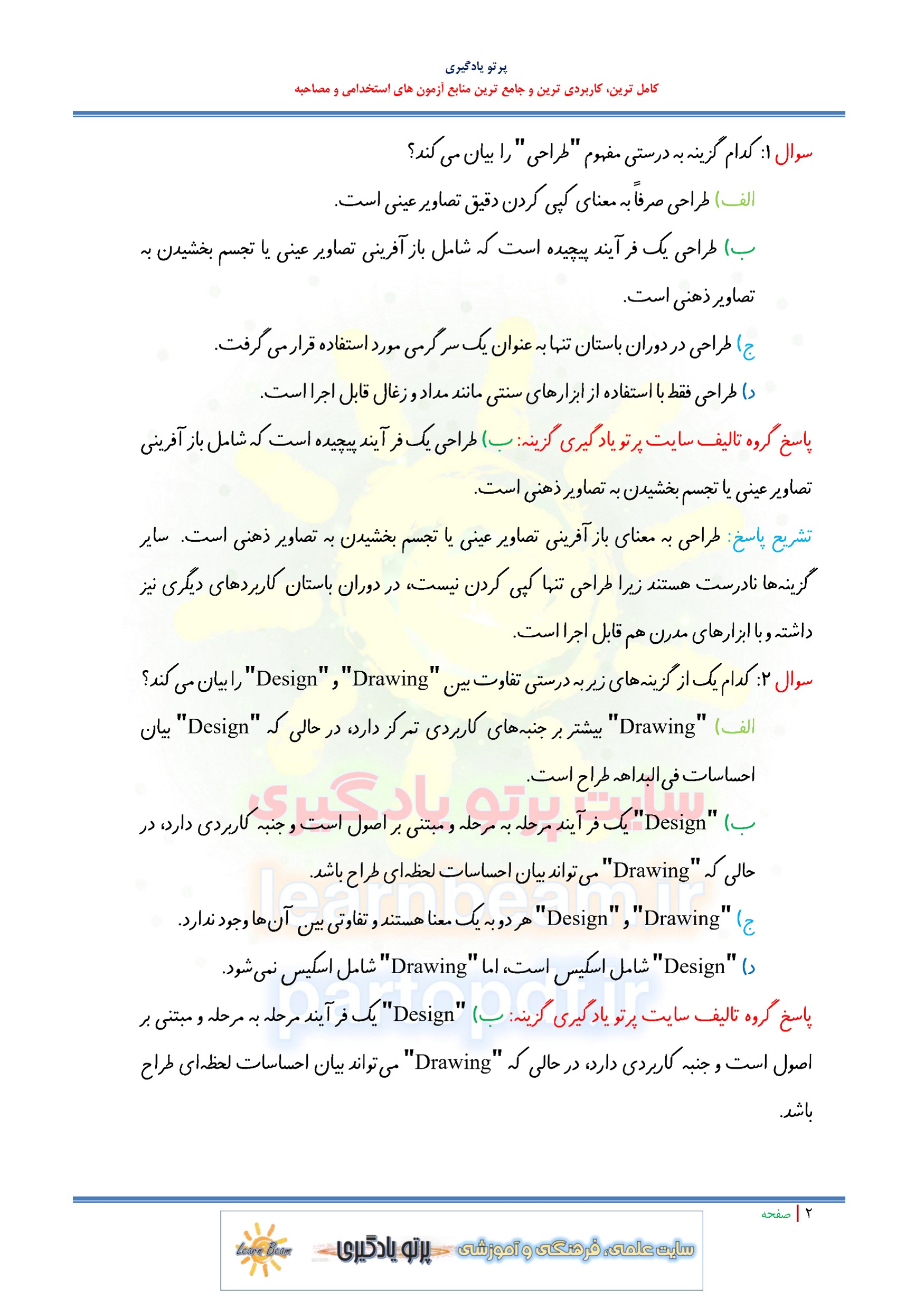 مجموعه سوالات و تست کتاب طراحی 1 با پاسخ تشریحی
