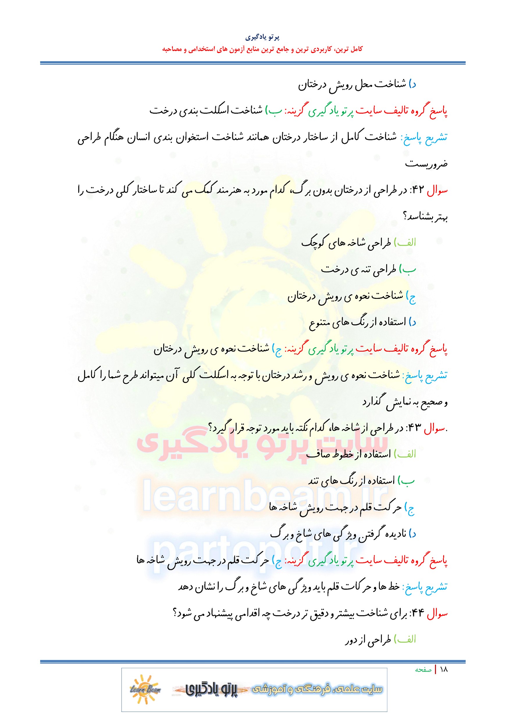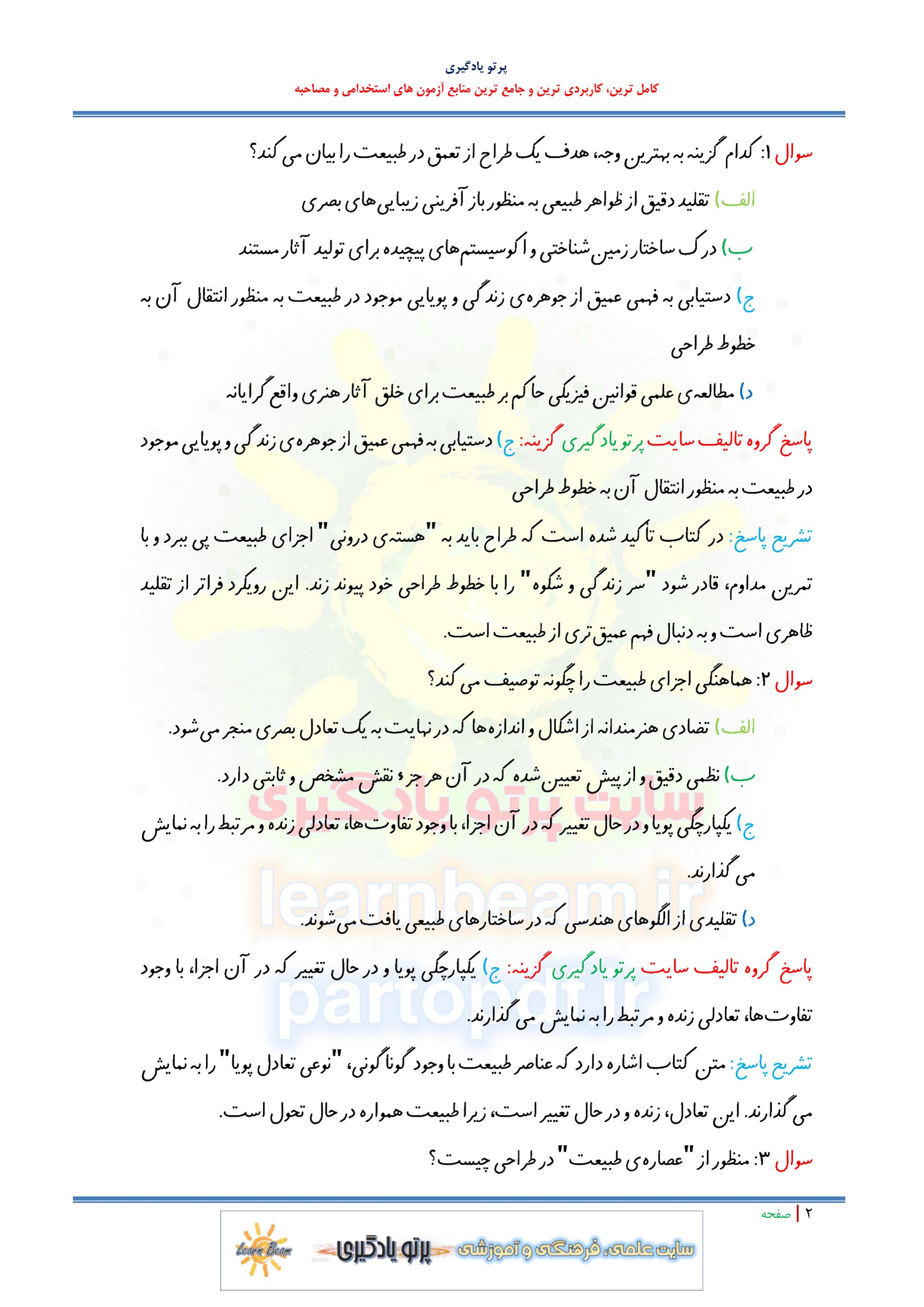 مجموعه سوالات و تست کتاب طراحی 2 با پاسخ تشریحی