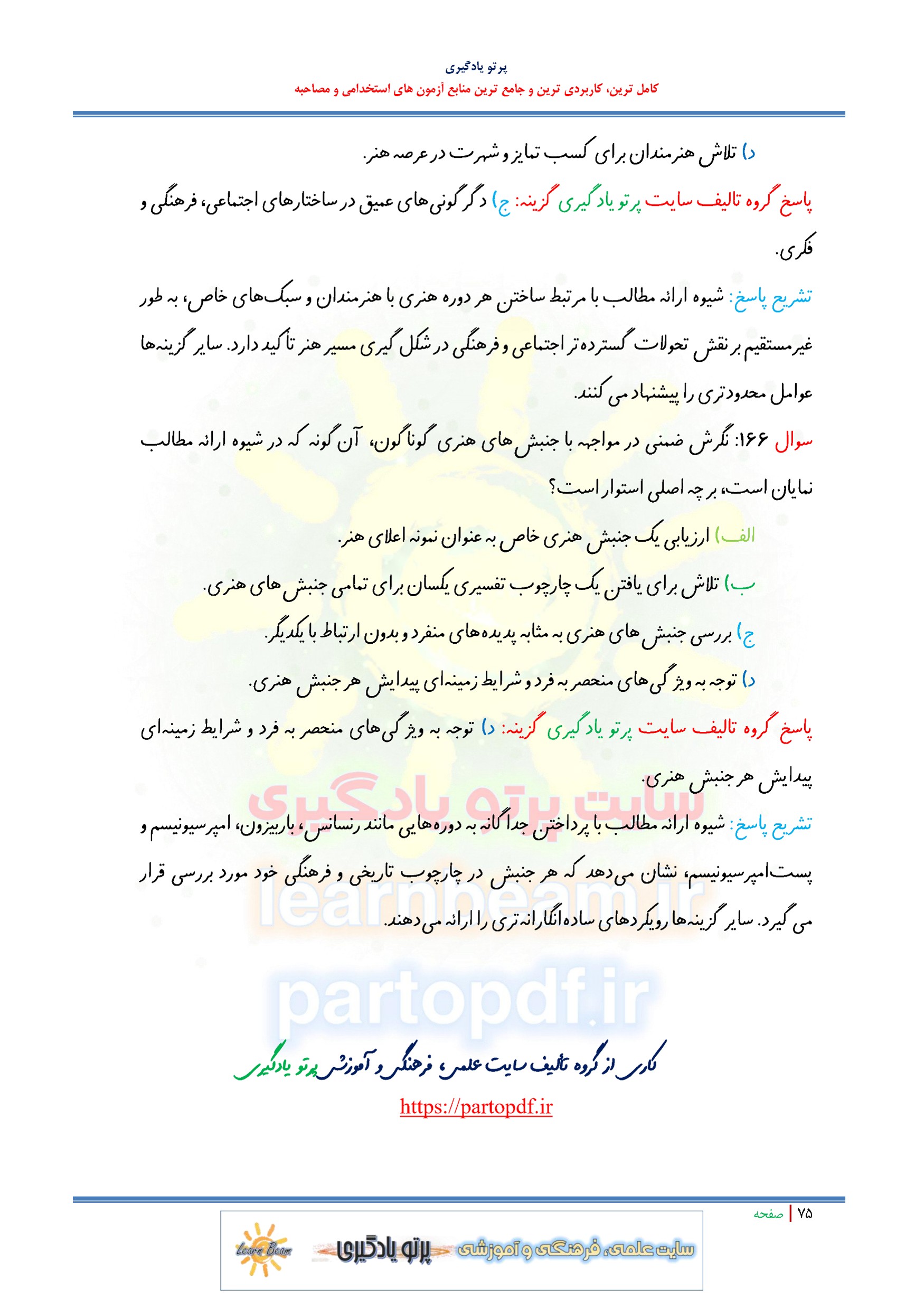 سوالات و تست کتاب طراحی 2 شامل 166 تست در 75 صفحه با پاسخ تشریحی در قالب فایل pdf. بهترین منبع برای آزمون های استخدامی می باشد. جزوه سوالات تستی کتاب طراحی 2 مطالب خوانده شده داوطلبین آزمون استخدامی را نظم بخشیده و منسجم می سازد. این مجموعه مرور سریع داوطلب را سبب می شود و آگاهی های وی را نظم بخشیده و یک آمادگی و شبیه سازی را برای جلسه آزمون به همراه دارد. مطالعه این منبع برای همه داوطلبین شرکت کننده در آزمون استخدامی وزارت آموزش و پرورش پیشنهاد می شود.