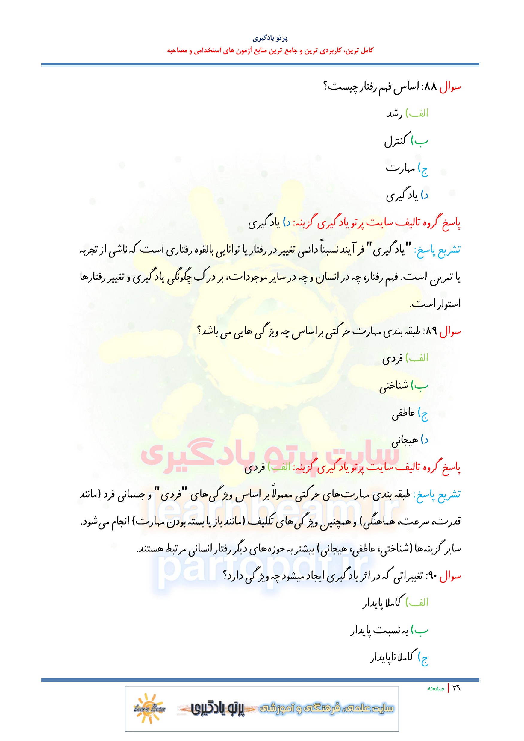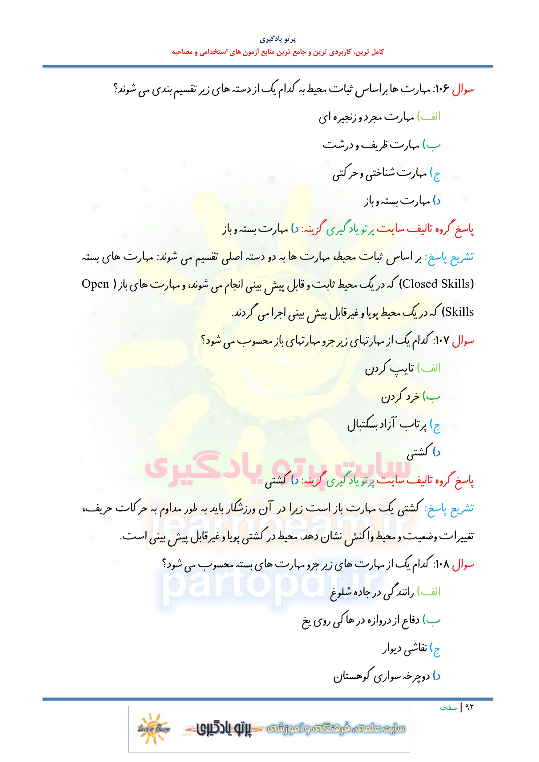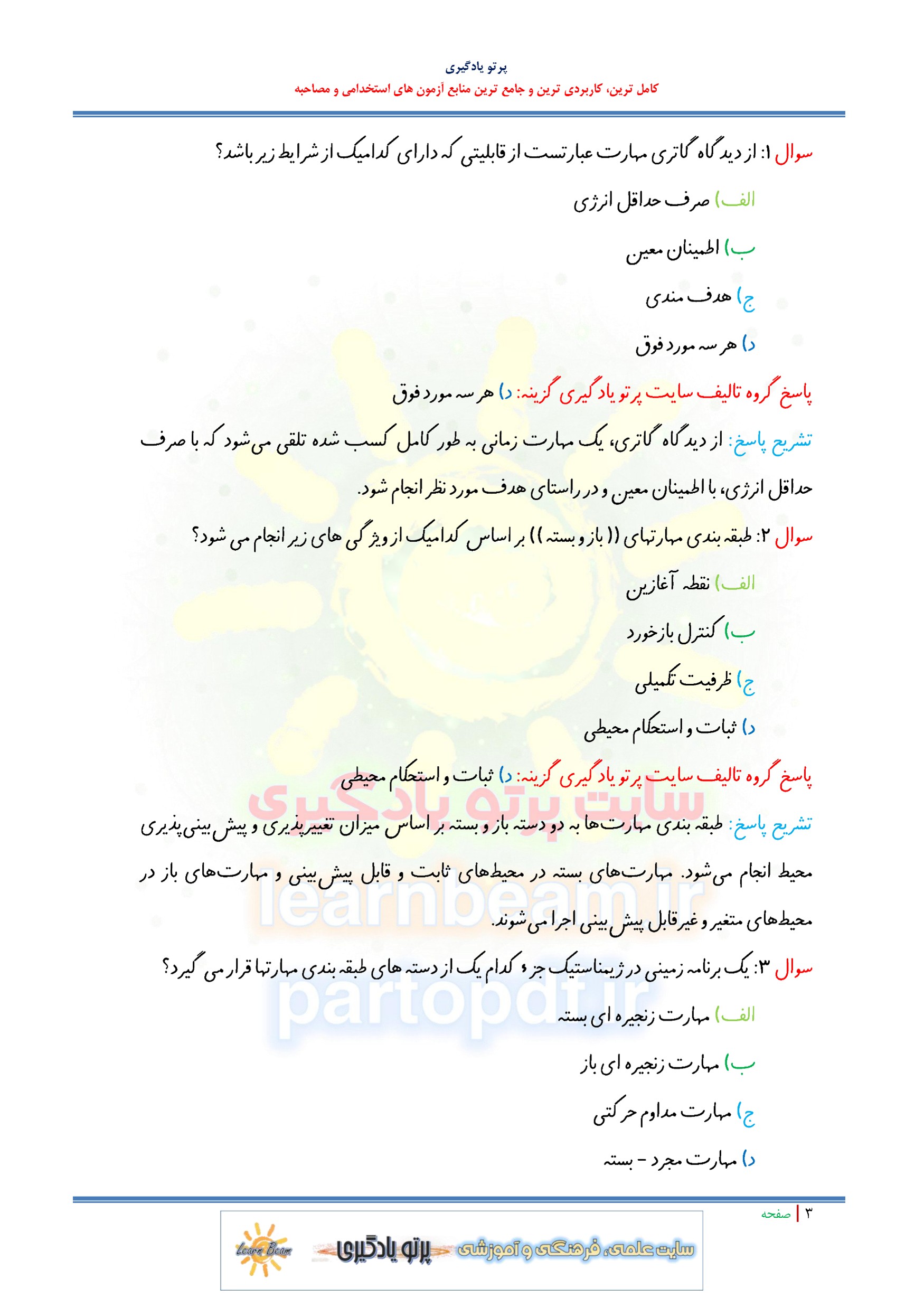 مجموعه سوالات و تست کتاب یادگیری و کنترل حرکتی با پاسخ تشریحی