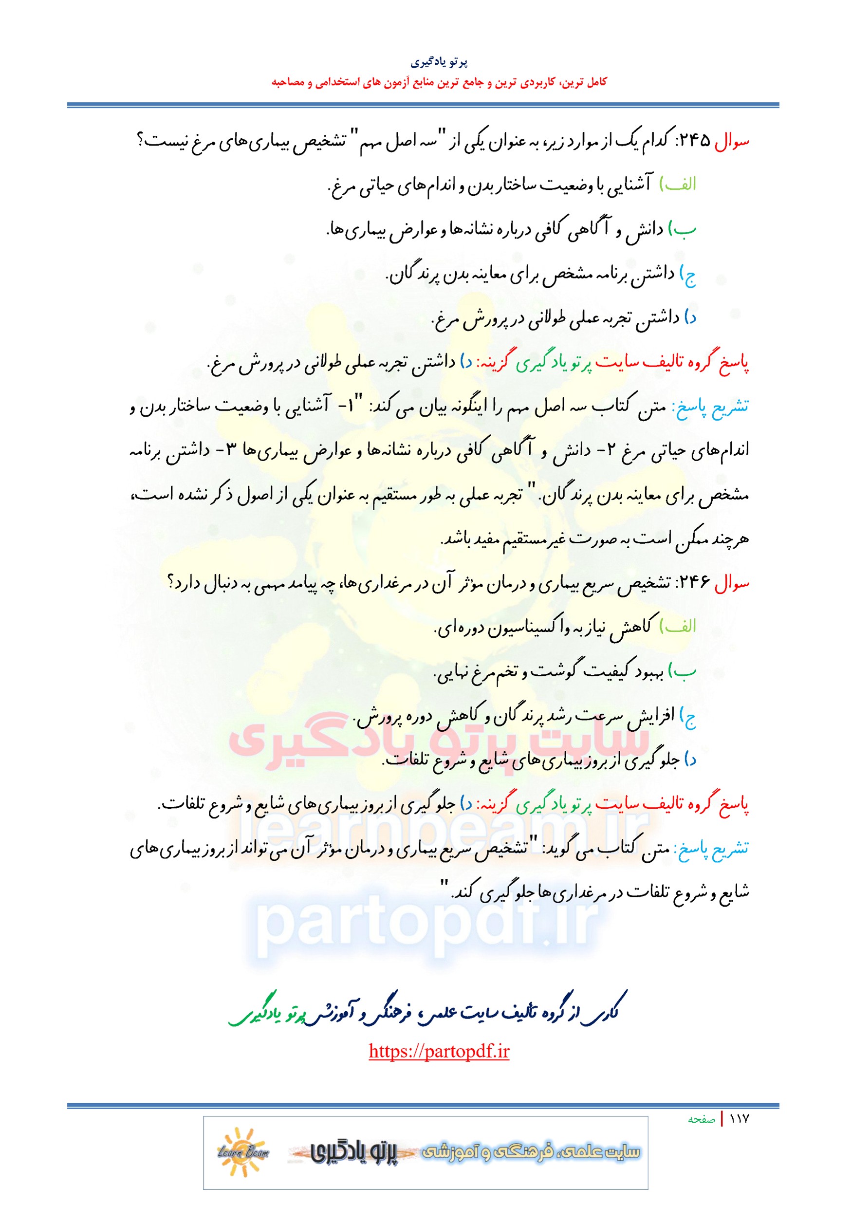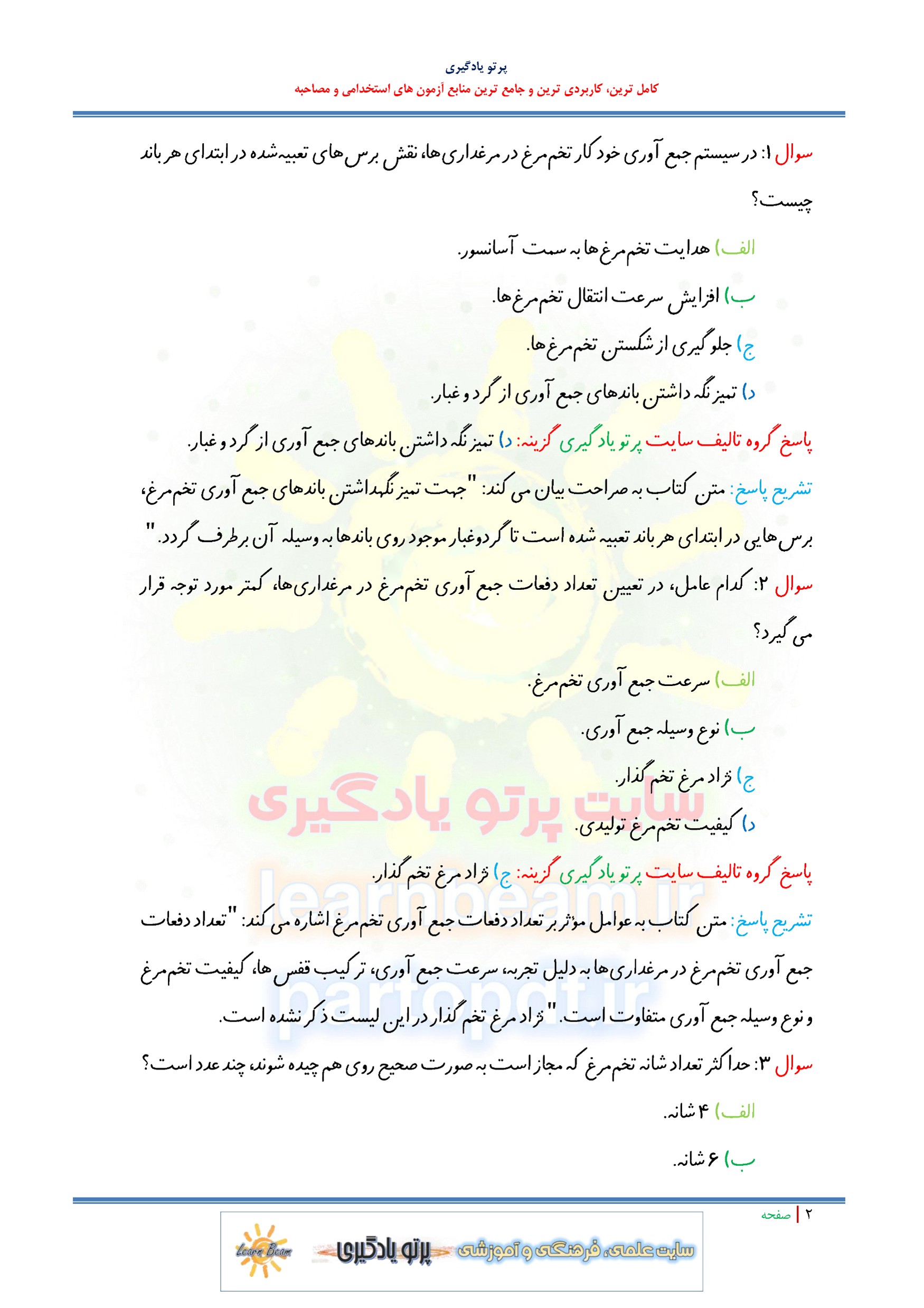 مجموعه سوالات و تست کتاب تولید و پرورش مرغ با پاسخ تشریحی