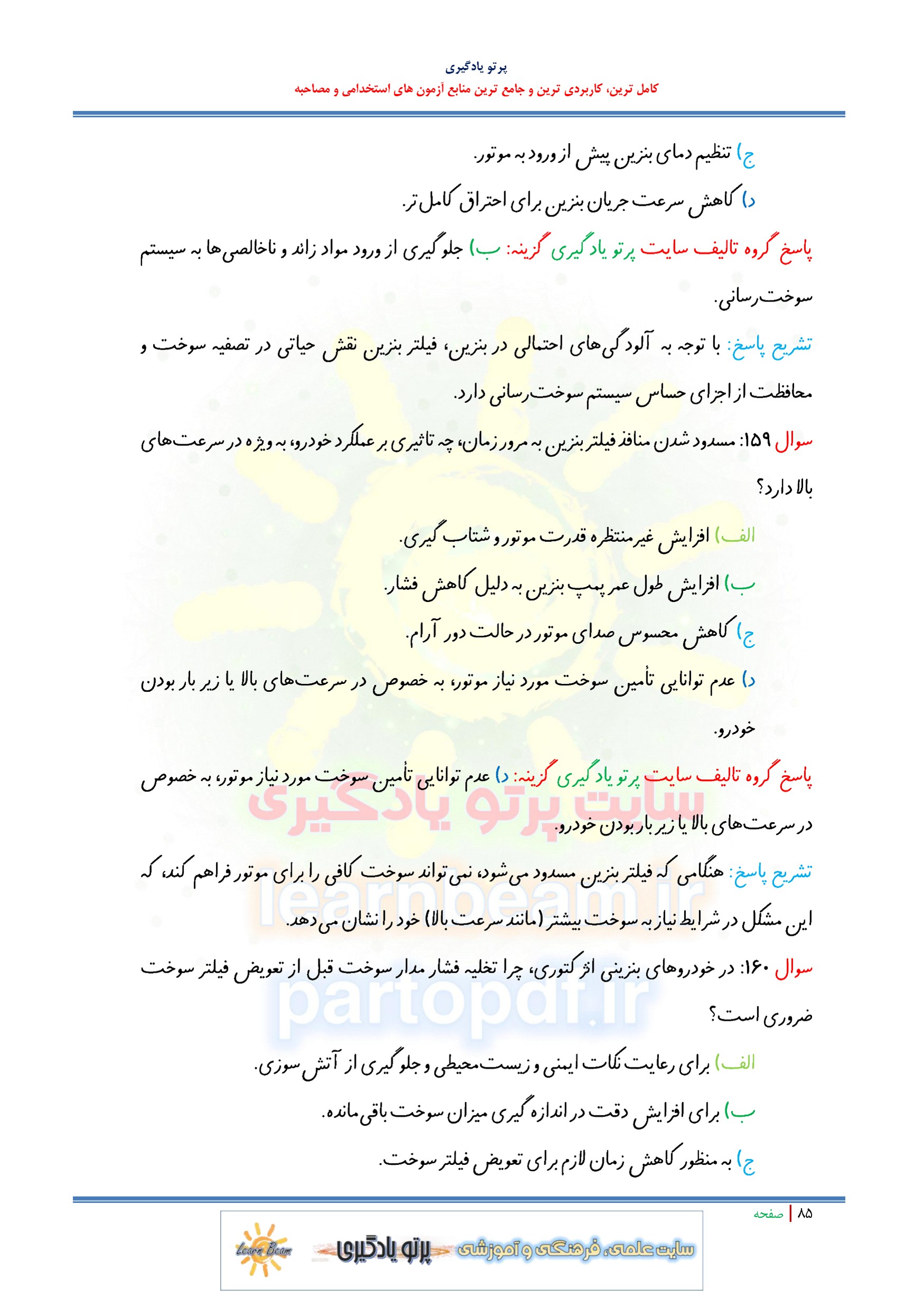 مجموعه سوالات و تست کتاب سرویس و نگهداری خودروهای سواری با پاسخ تشریحی