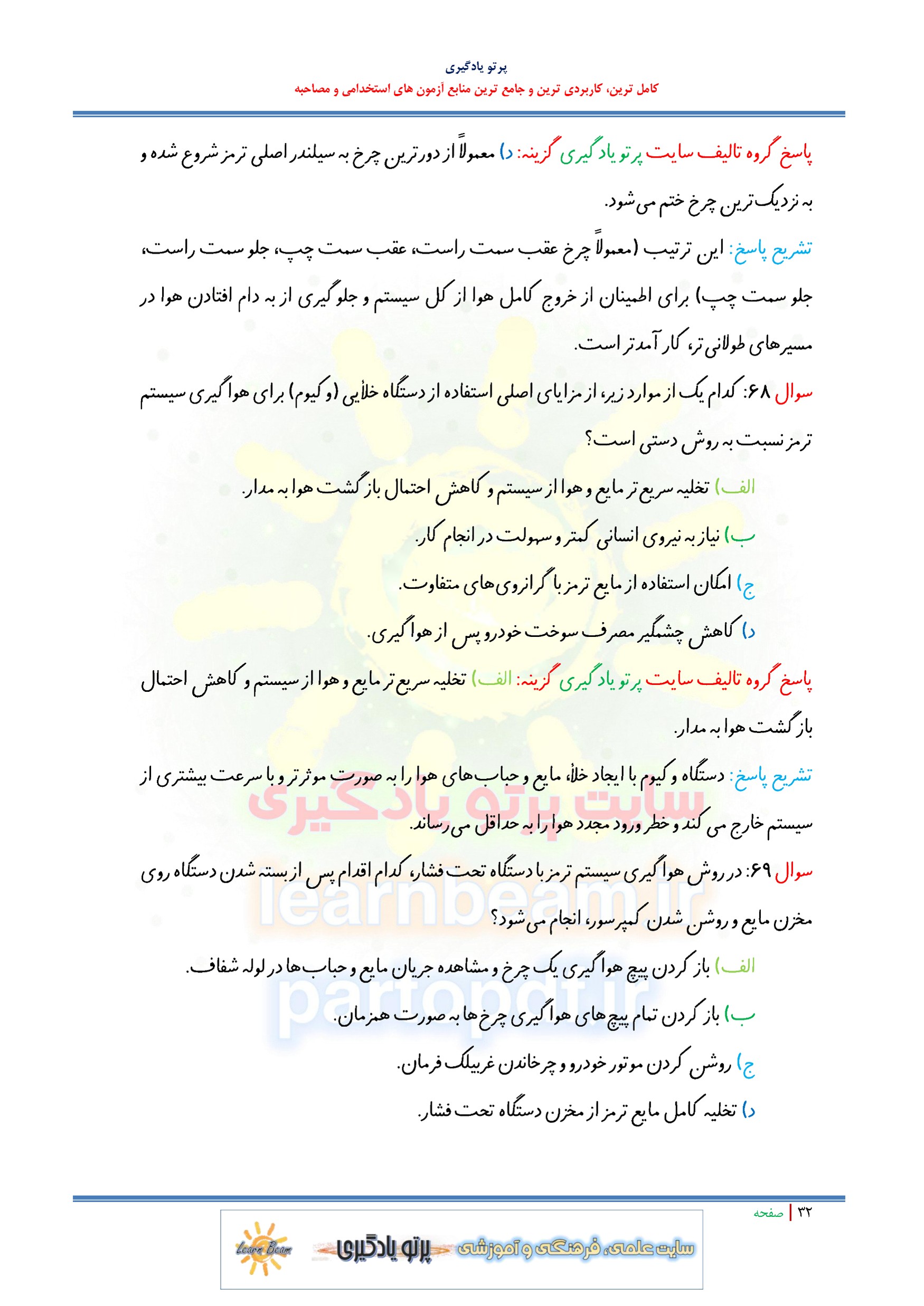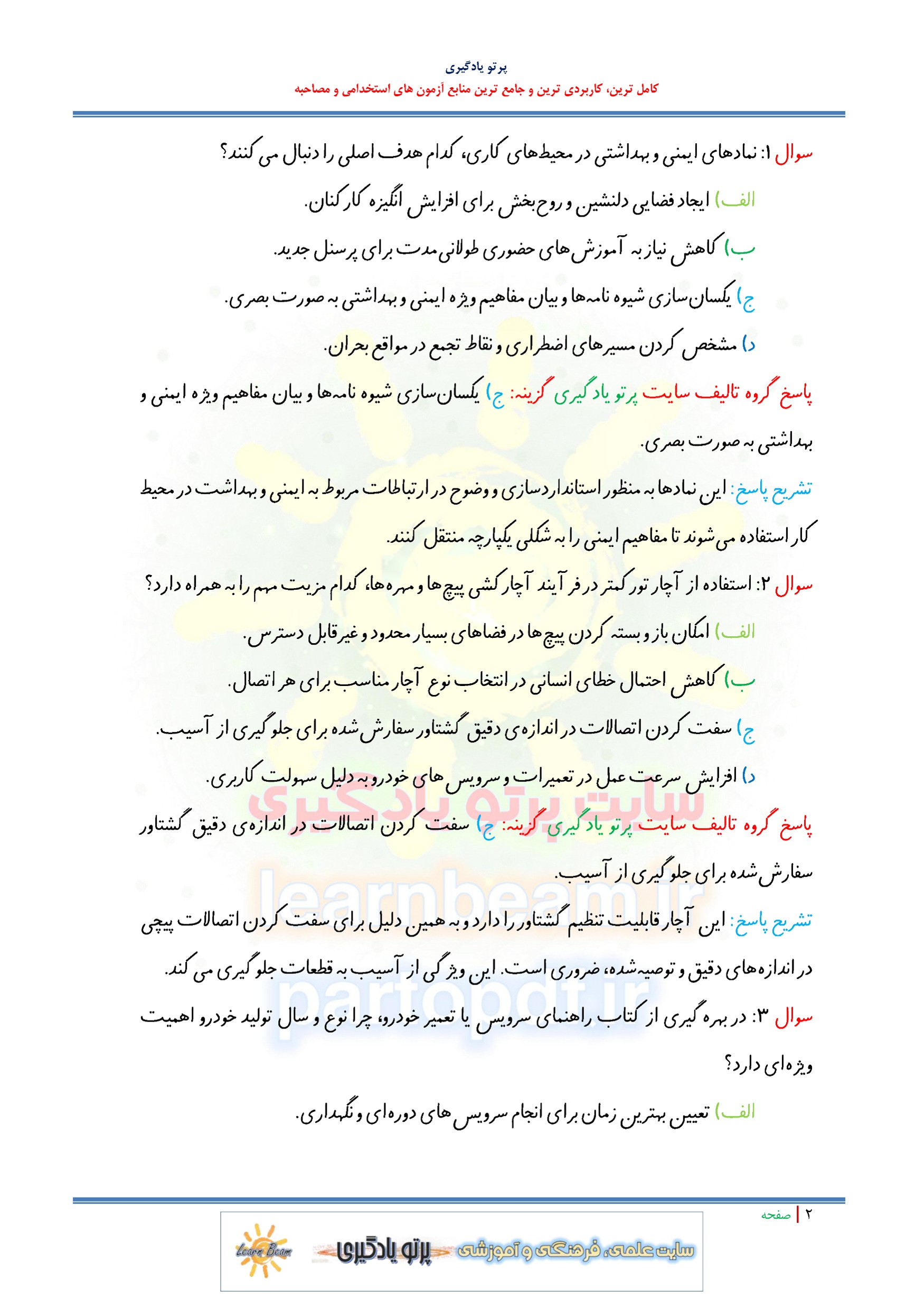 سوالات تستی کتاب سرویس و نگهداری خودروهای سواری