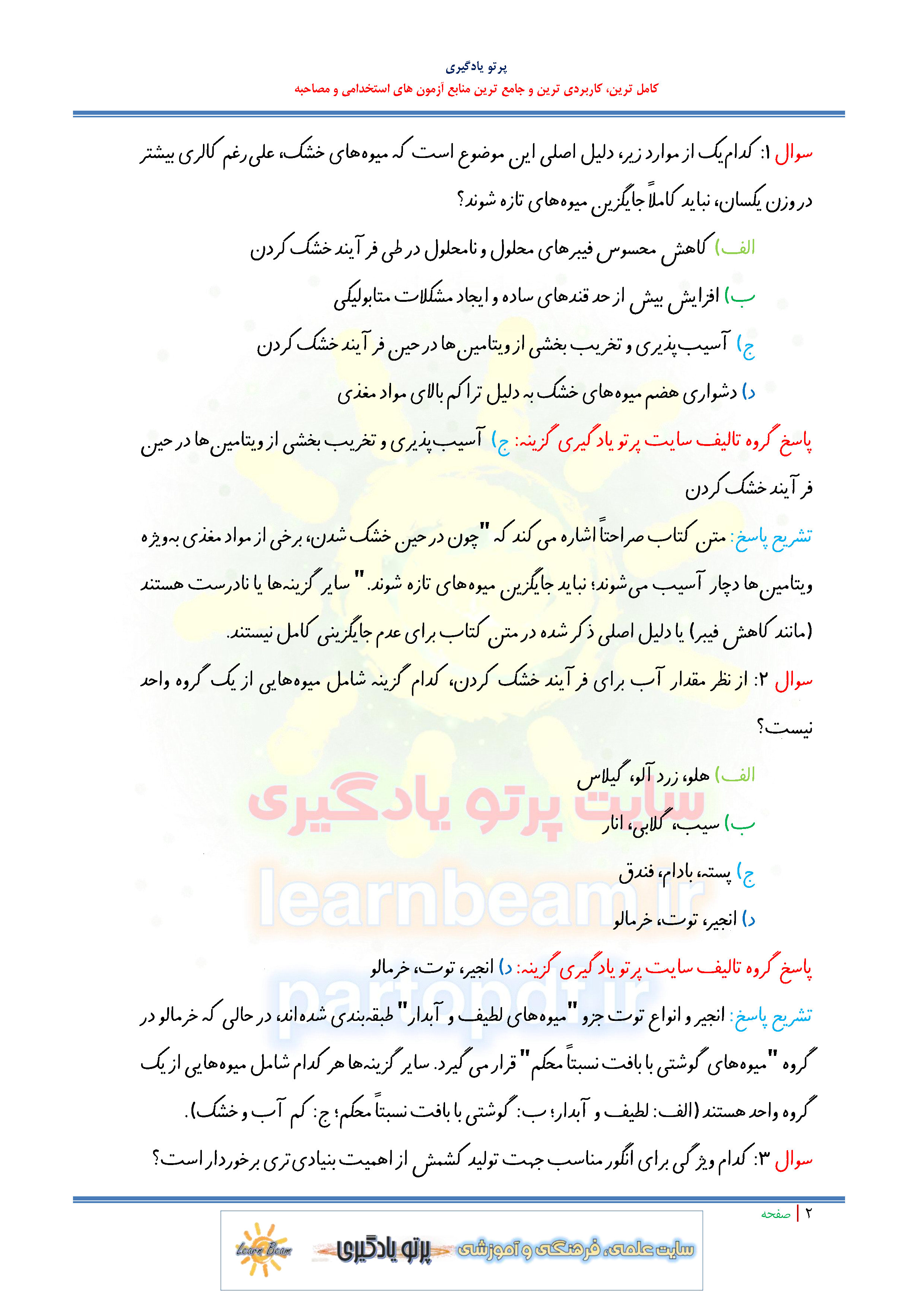 مجموعه سوالات و تست کتاب فراوری گیاهان دارویی و خشکبار با پاسخ تشریحی