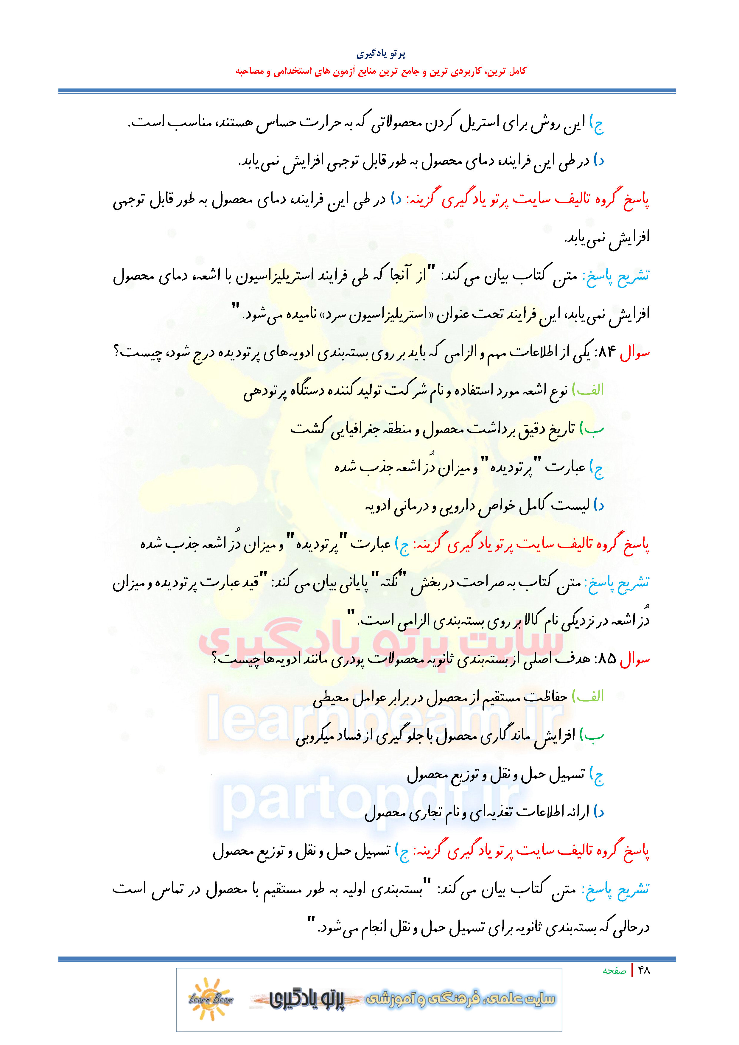 سوالات و تست کتاب فراوری گیاهان دارویی و خشکبار شامل 180 تست در 90 صفحه با پاسخ تشریحی در قالب فایل pdf. بهترین منبع برای آزمون های استخدامی می باشد. جزوه سوالات تستی کتاب فراوری گیاهان دارویی و خشکبار مطالب خوانده شده داوطلبین آزمون استخدامی را نظم بخشیده و منسجم می سازد. این مجموعه مرور سریع داوطلب را سبب می شود و آگاهی های وی را نظم بخشیده و یک آمادگی و شبیه سازی را برای جلسه آزمون به همراه دارد. مطالعه این منبع برای همه داوطلبین عزیز پیشنهاد می شود.