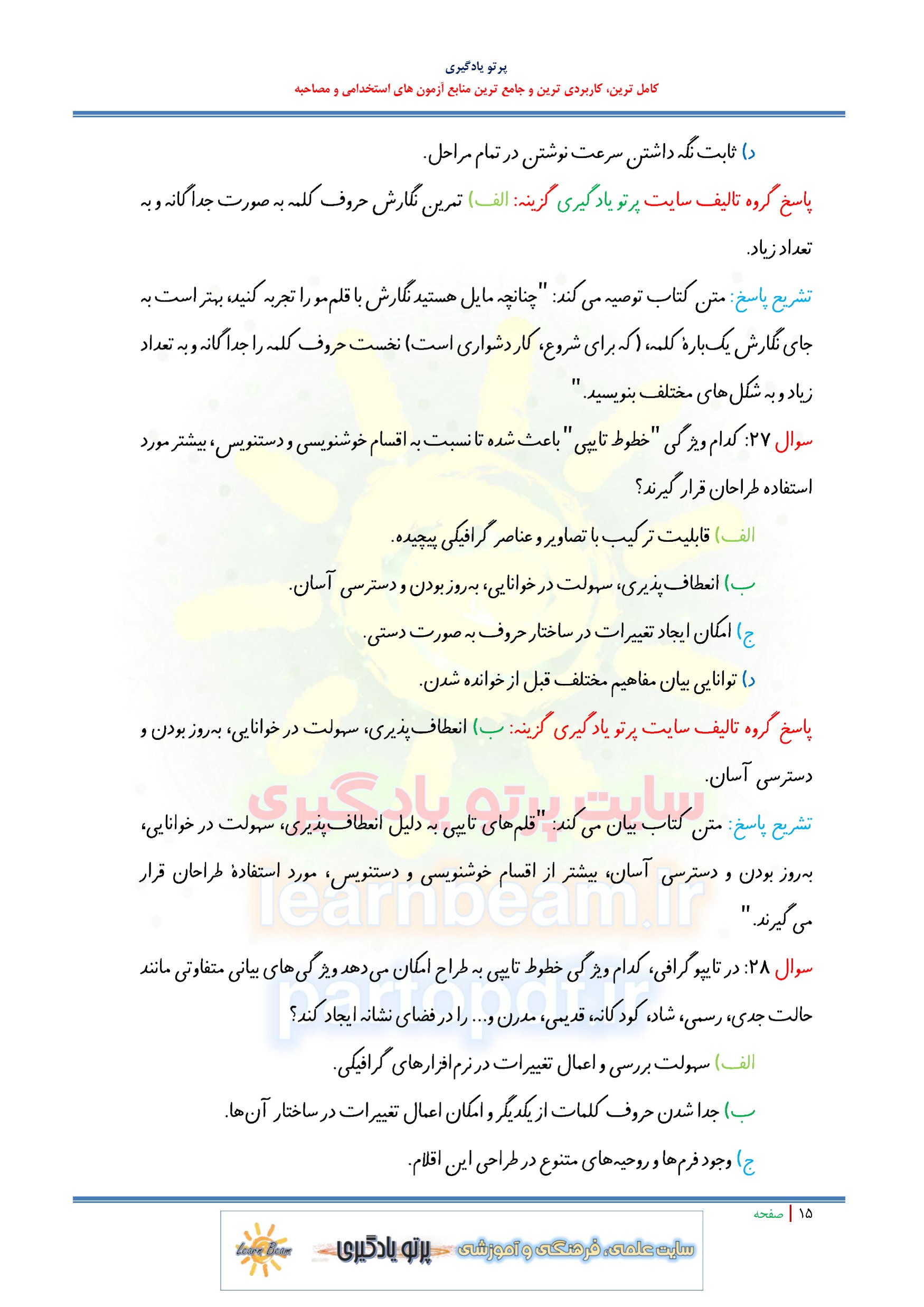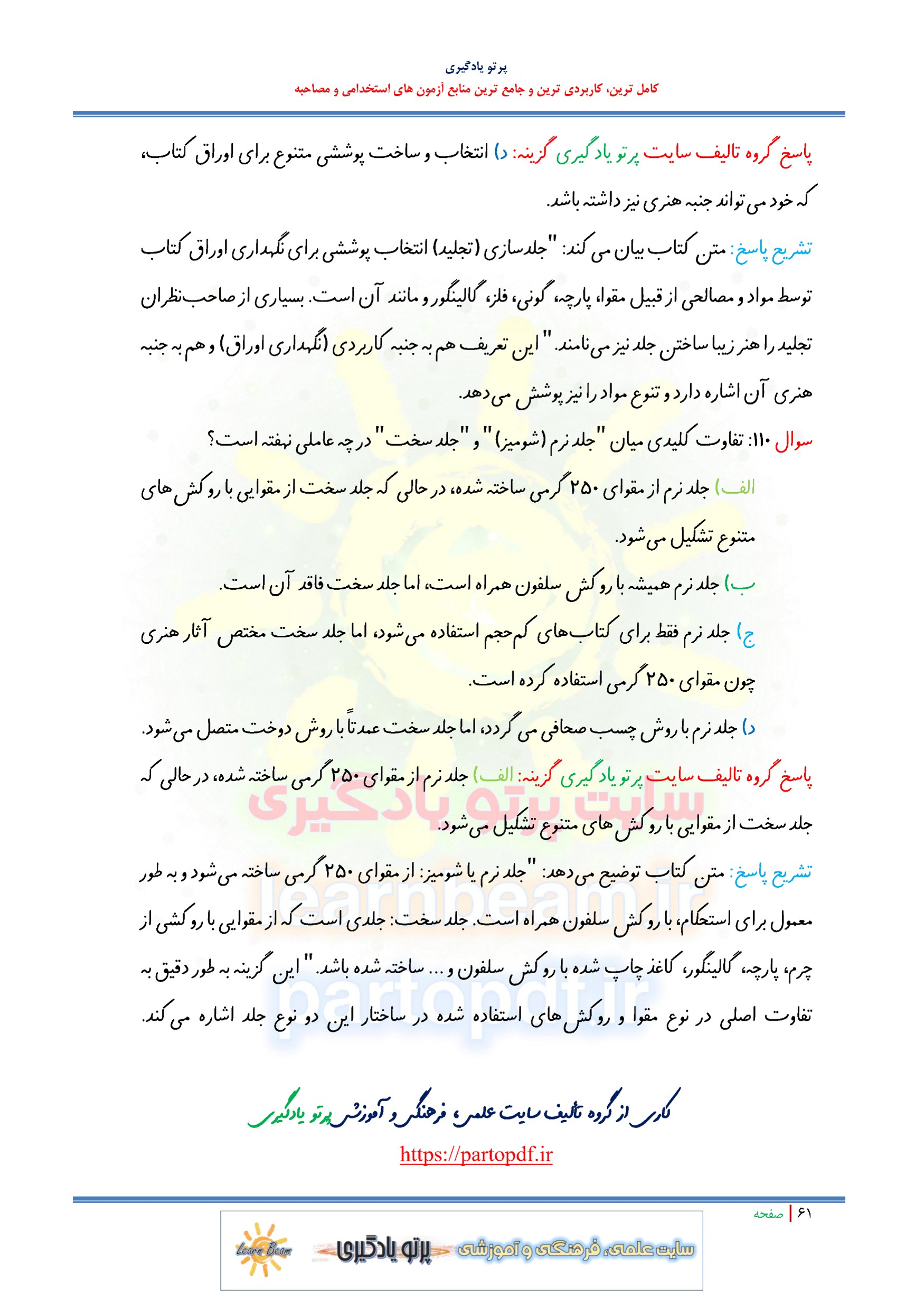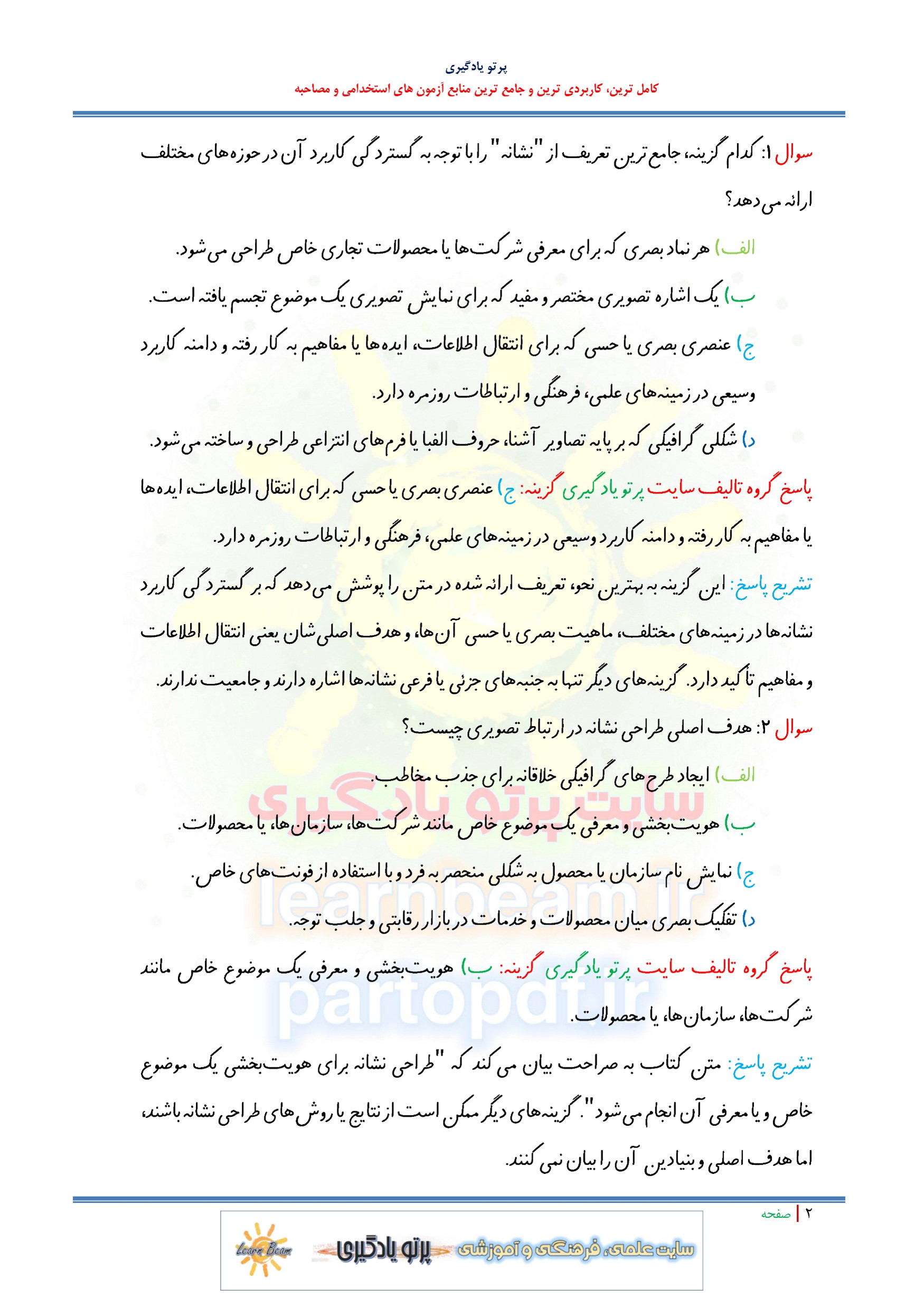 سوالات تستی کتاب طراحی نشانه، تصویرگری کتاب کودک و نظارت چاپ