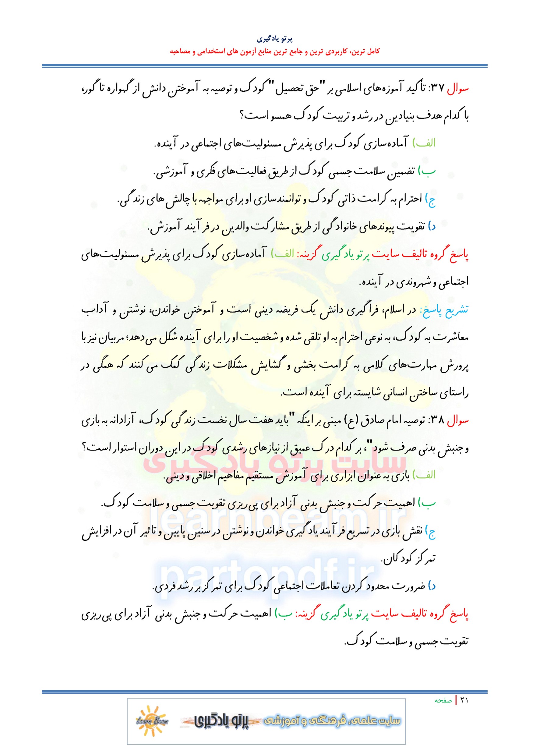 سوالات تستی کتاب پرورش مهارت های عاطفی و اجتماعی کودک