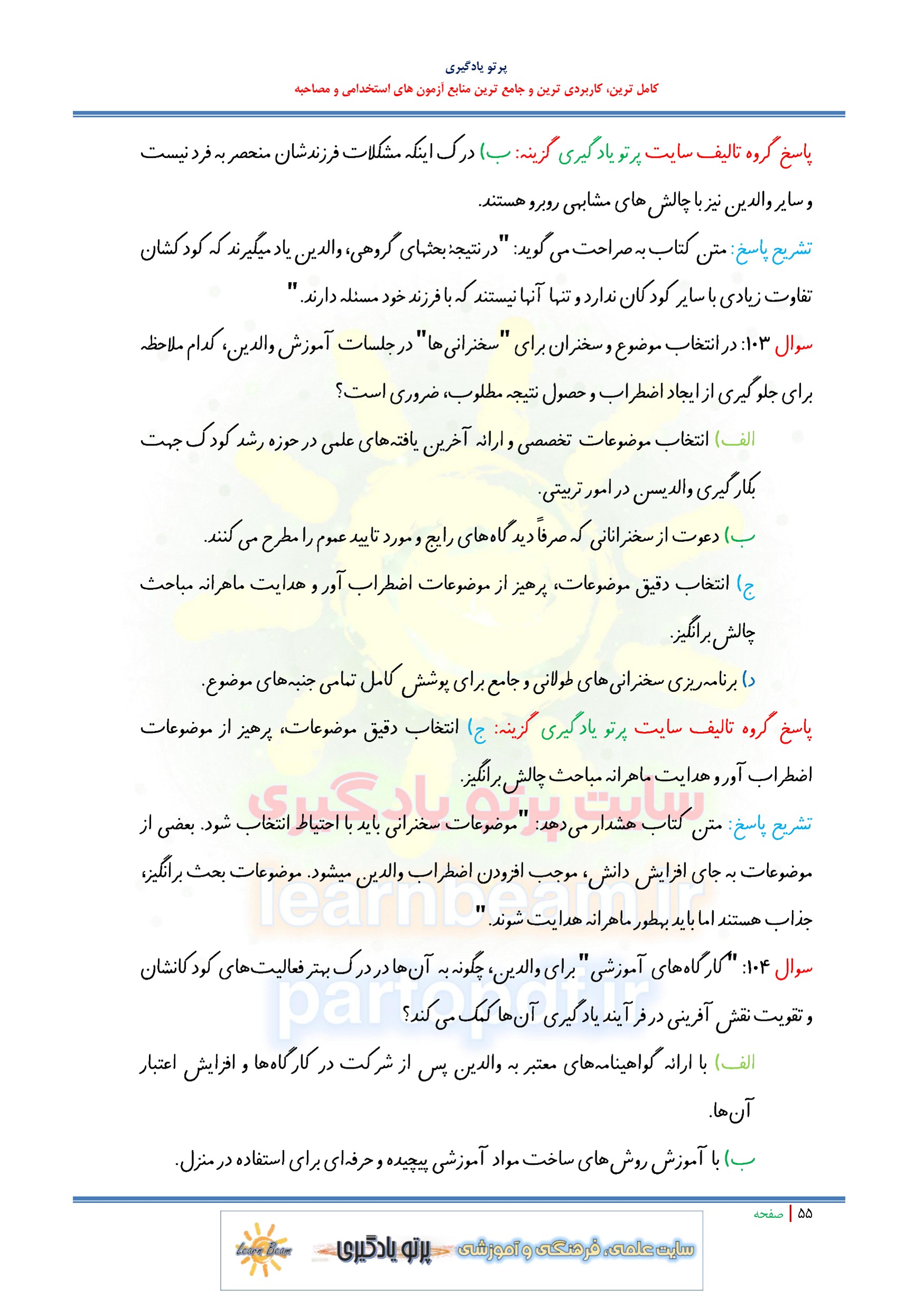 مجموعه سوالات و تست کتاب پرورش مهارت های ارتباطی و مشارکتی با پاسخ تشریحی