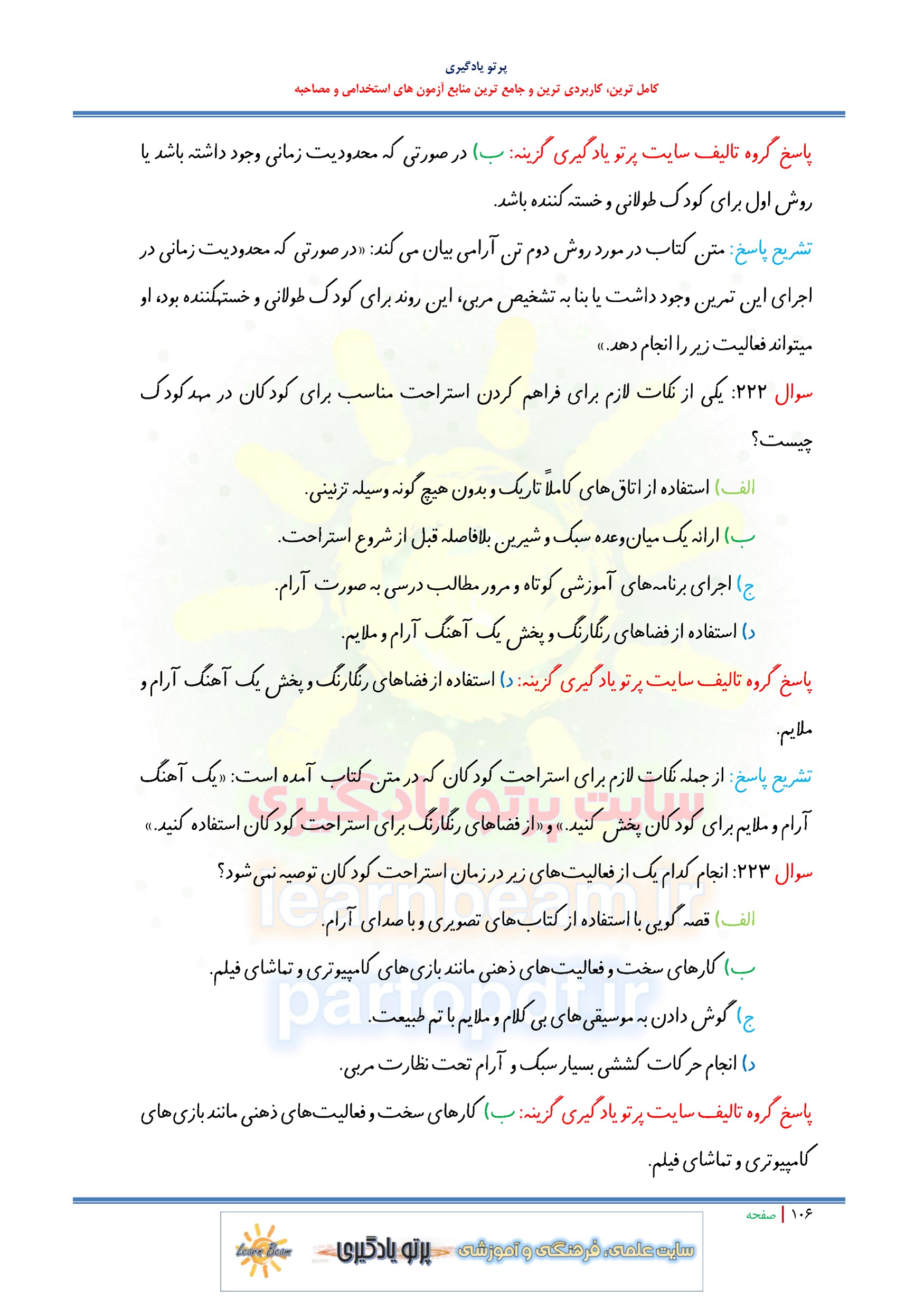 سوالات تستی کتاب پرورش مهارت های عاطفی و اجتماعی کودک